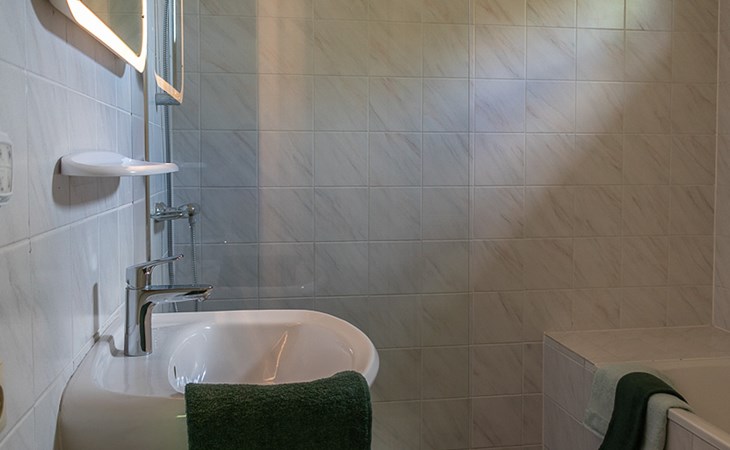 Op de begane grond bevindt zich 1 badkamer voorzien van een ligbad en een wastafel. Daarnaast beschikt de bungalow over 3 aparte toiletten.