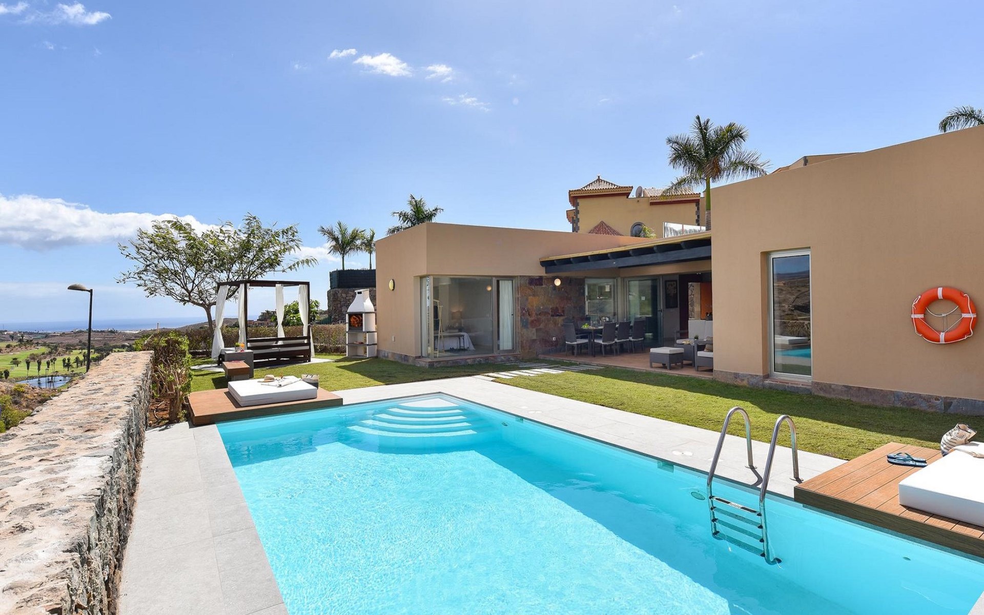 Zeer mooi, comfortabele villa "Par4 Villa 24". Perfecte locatie: in het centrum en toch rustig gelegen. Voor alleengebruik: openluchtzwembad hoekig (8 x 4 m, 160 cm diepte, seizoensgebonden beschikbaarheid: 01.Jan. - 31.Dec.). In het huis: internetaansluiting, Internet (WiFi), air-conditioning, wasmachine, droger. Openbare parkeerplaatsen in de straat. Bushalte "Las Crucitas" 19 km. Baby uitrusting op aanvraag. Het objekt is geschikt voor 6 volwassenen. De eigenaar accepteert geen jeugdgroepen. De omgeving is gevoelig voor geluidsoverlast. Gelieve geen lawaai te maken en de rust te bewaren. Bij late aankomst zijn de volgende bedragen in contant te betalen: 20:30-22:00: 30€, 22:00-00:00: 50€, 00:00-01:30: 80€.