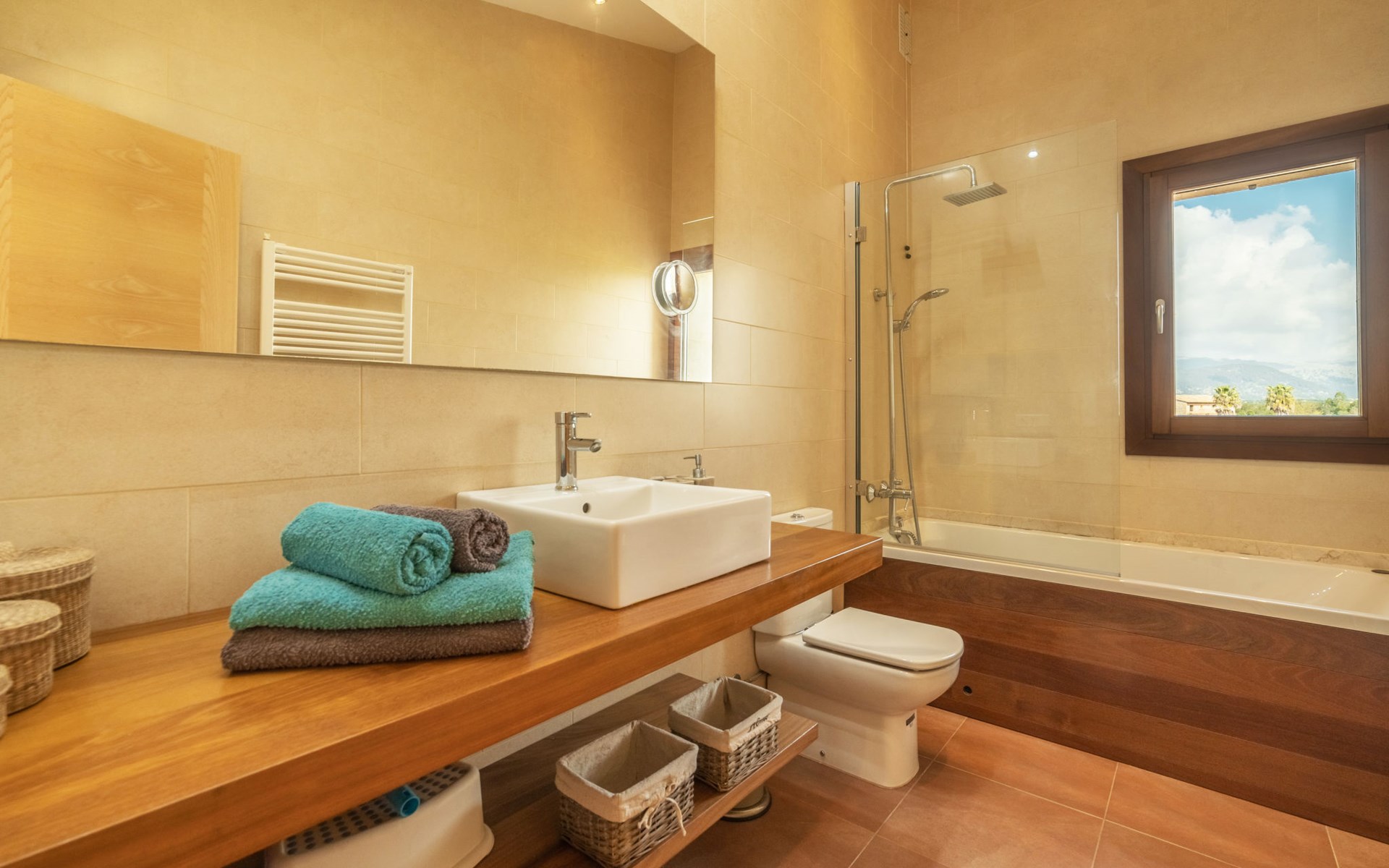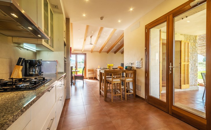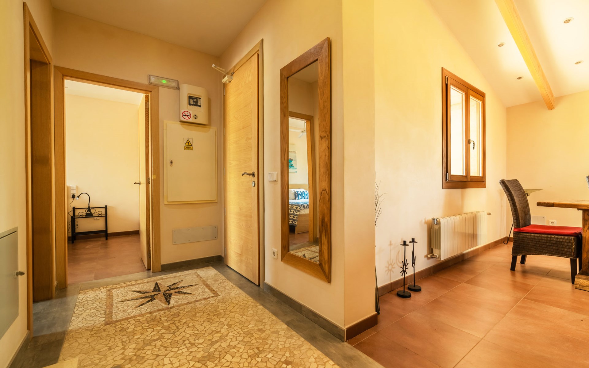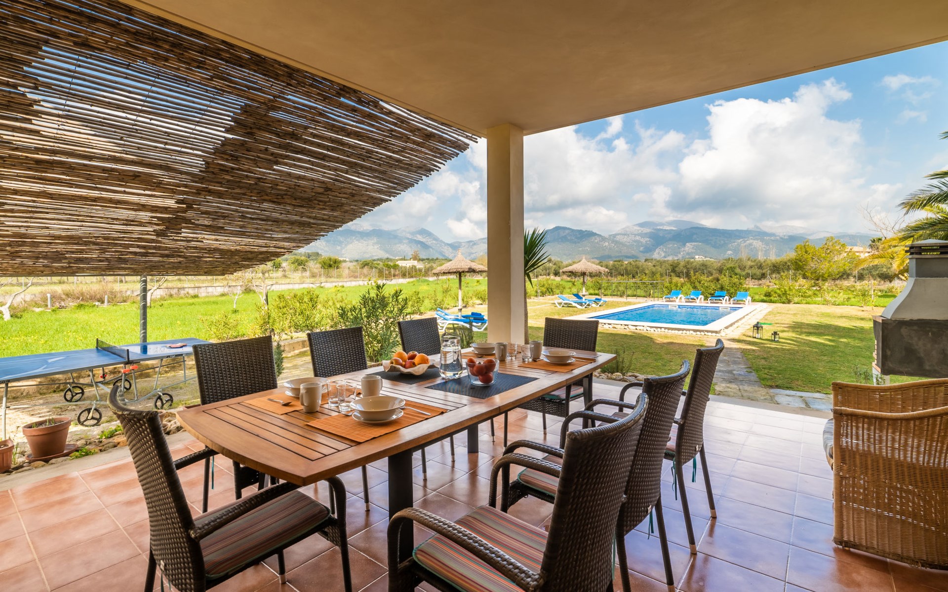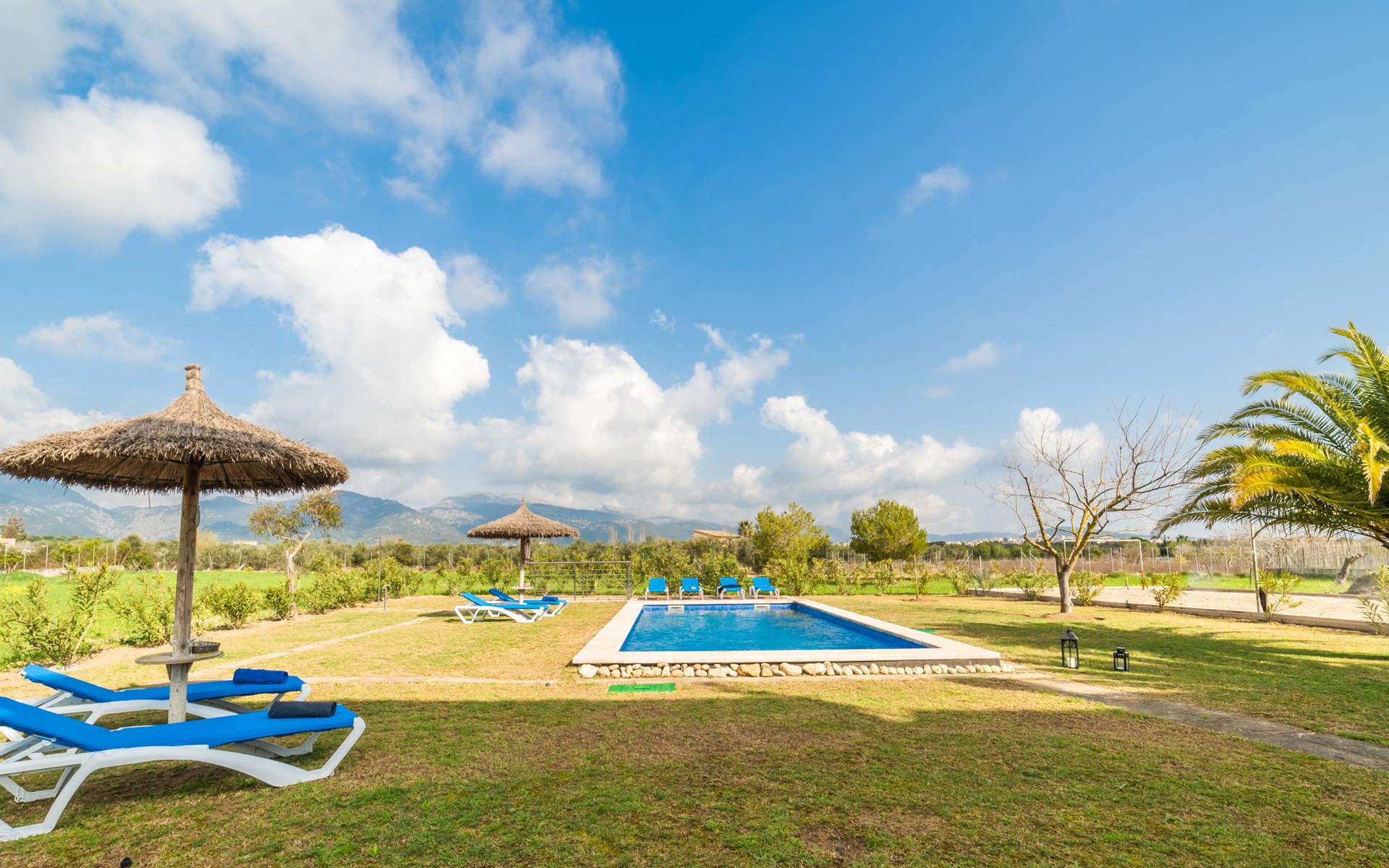 Moscari: Zeer groot, mooi landgoed "Son Bordoi", omgeven door bomen, weiden en velden. Buiten de plaats Moscari, rustige, zonnige ligging, 20 m van zee, te midden van groen. Voor alleengebruik: wild terrein met gazon, ligweide, mooie tuin ter ontspanning, openluchtzwembad hoekig (4 x 10 m, 100 - 200 cm diepte, seizoensgebonden beschikbaarheid: 01.Jan. - 31.Dec.). Buitendouche, tafeltennis, patio, prieel, prieel, tuinmeubelen, barbecue, onderhoud zwembad door de eigenaar/tuinman. In het huis: internetaansluiting, Internet (WiFi), centrale verwarming, wasmachine. Parkeerplaats bij het huis op het terrein. Winkel 4 km, levensmiddelenwinkel 4 km, bar 4 km, bakkerij 4 km, café 4 km, internet cafe 4 km, biertuin 4 km, bushalte 3.5 km, zandstrand "Playa de Alcudia" 20 km, stenenstrand "Playa de Aucanada" 22 km. Wandelgebied Fonts Ufanes 6 km. Auto noodzakelijk. Baby uitrusting op aanvraag (incl.). Het objekt is geschikt voor 8 volwassenen. De eigenaar accepteert geen jeugdgroepen. Op het grondstuk dierhouderij. Laden en lossen van de baggage is mogelijk bij het huis. Vliegveld 48 km van het huis.