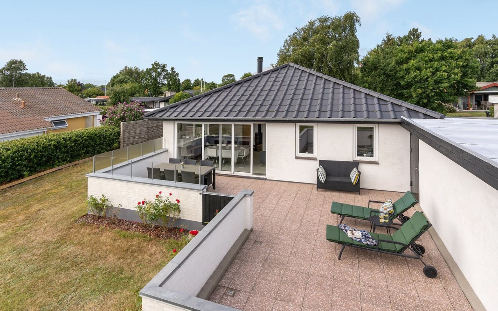 Eengezinswoning, bouwjaar 1970. 50 m van zee. Voor alleengebruik: terrein 739 m2, verzorgde tuin. Terras (50 m2), barbecue. In het huis: wasmachine. Parkeerplaats bij het huis. Levensmiddelenwinkel 6 km. De eigenaar accepteert geen jeugdgroepen.
