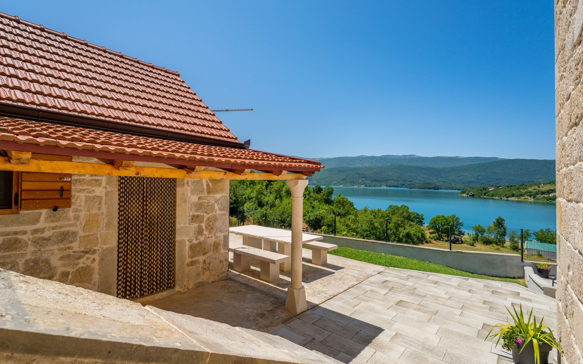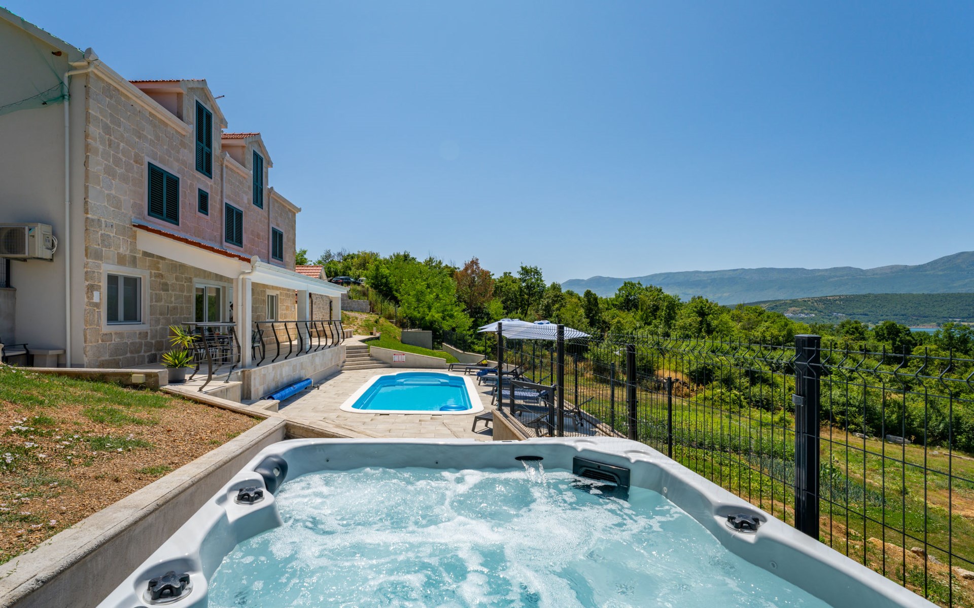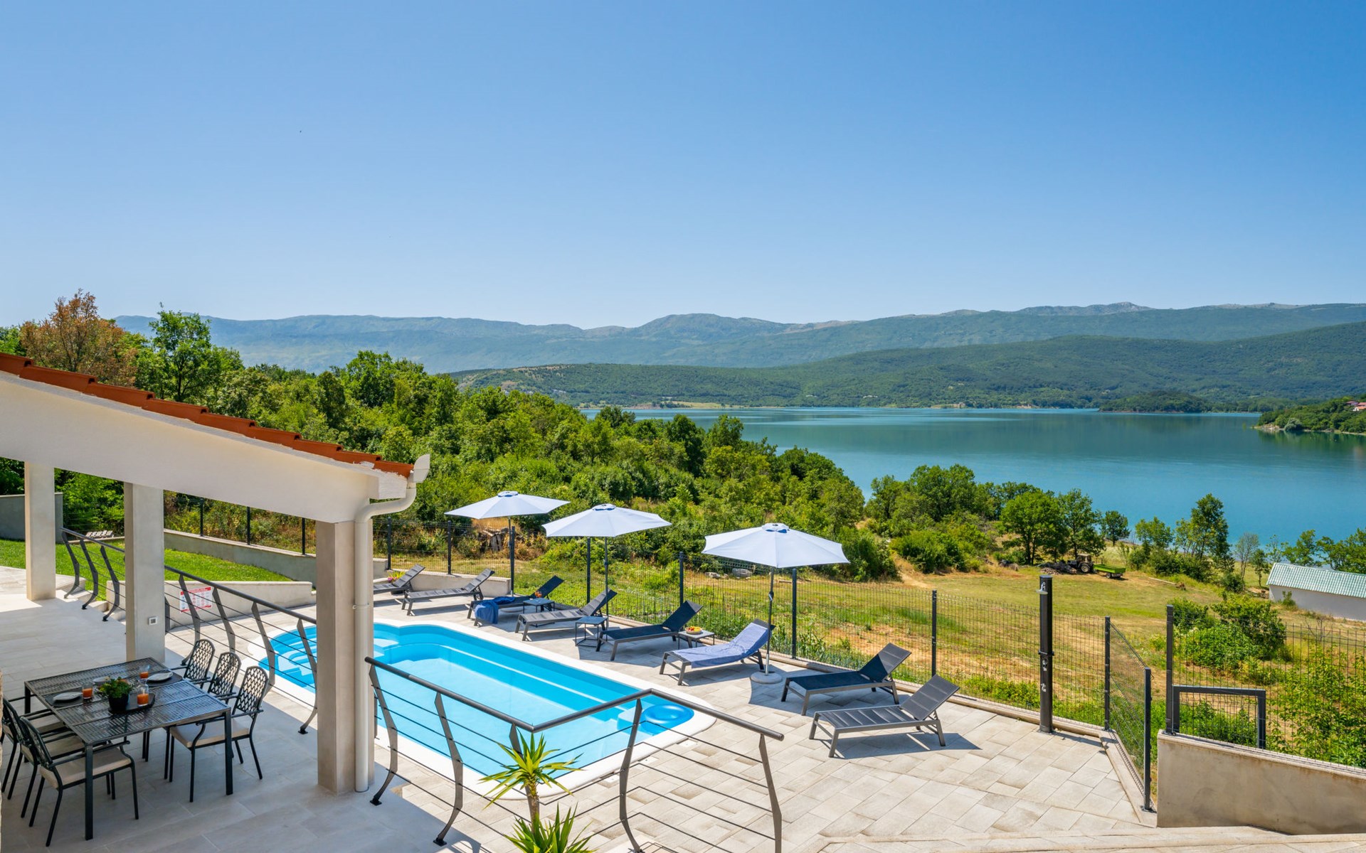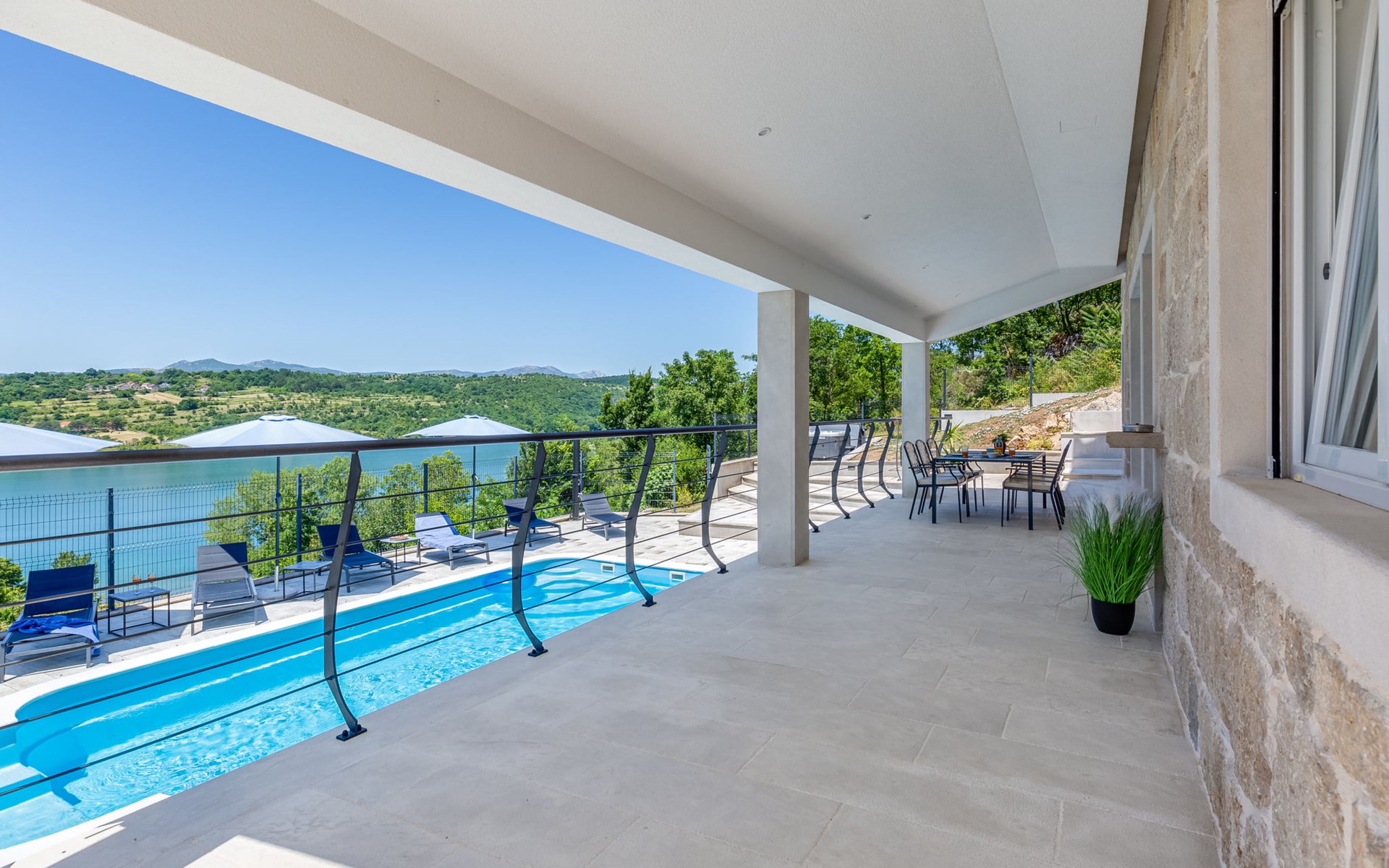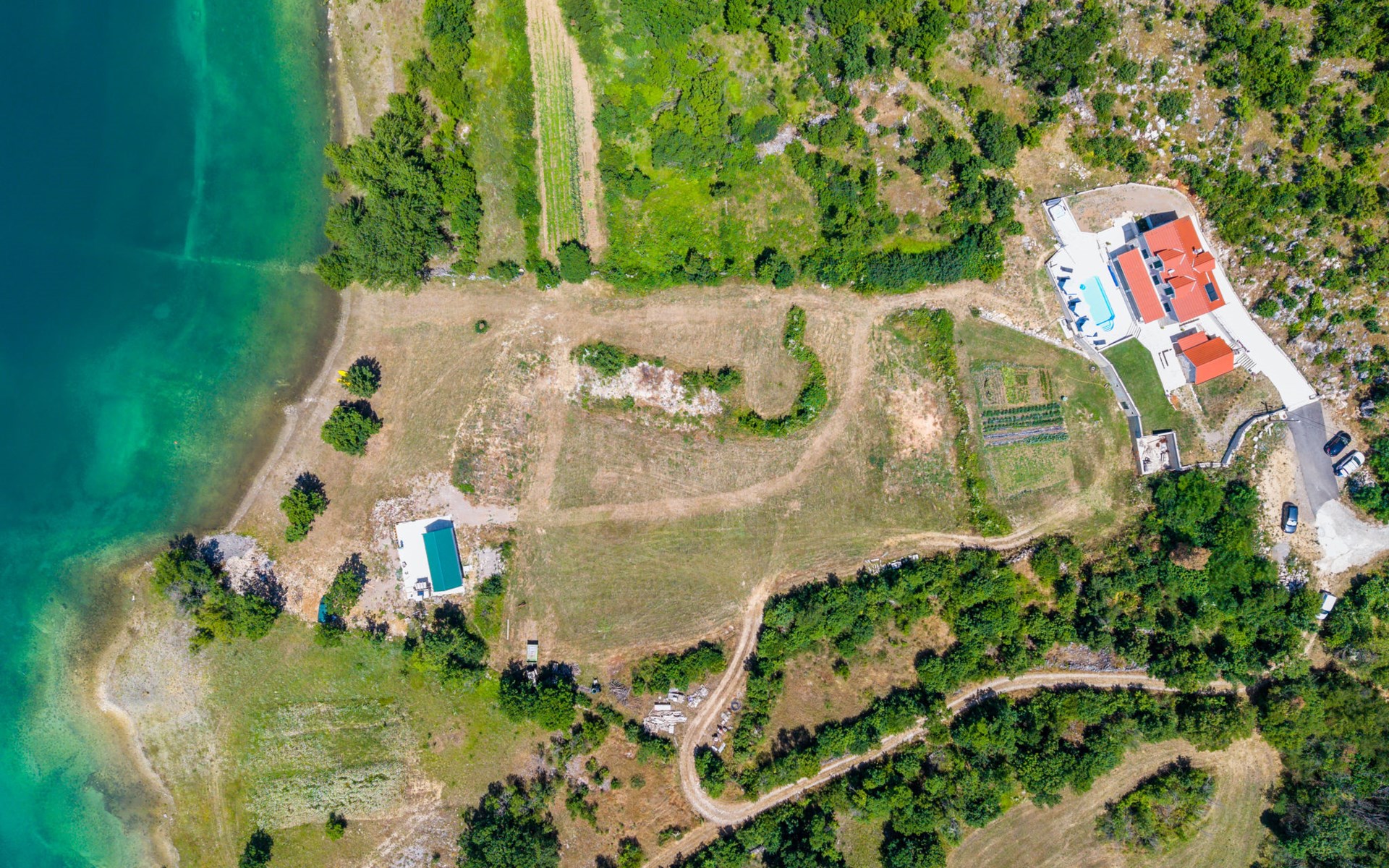 Garjak 11 km van Vrlika: Eengezinswoning "Escape on lake". Rustige, zonnige, verhoogde ligging, 65 km van zee, 20 m van het meer, op het zuidwesten. Voor alleengebruik: terrein 900 m2 (omheind), openluchtzwembad verwarmd (9 x 3 m, 32 m2, 150 cm diepte, seizoensgebonden beschikbaarheid: 01.Mrt. - 01.Nov.) met trap. Buitendouche, privé-strand, hot tub, terras (45 m2), tuinmeubelen, barbecue, grill. In het huis: internetaansluiting, wasmachine, droger. Boodschappenpakket mogelijk bij aankomst. Parkeerplaats (voor 4 auto's) bij het huis op het terrein. Winkel 11 km, restaurant 11 km, café 11 km, bushalte 11 km, kiezelstrand 68 km, meer (zwemmen) "Peručko jezero" 20 m. Fietspad 1 km. Attracties in de buurt: Vrelo Cetine 11 km, NP Krka 54 km. Bekende meren kunnen gemakkelijk worden bereikt: Peručko jezero 20 m. Op aanvraag kan een transfer vanaf de luchthaven naar de vakantiewoning geregeld worden.