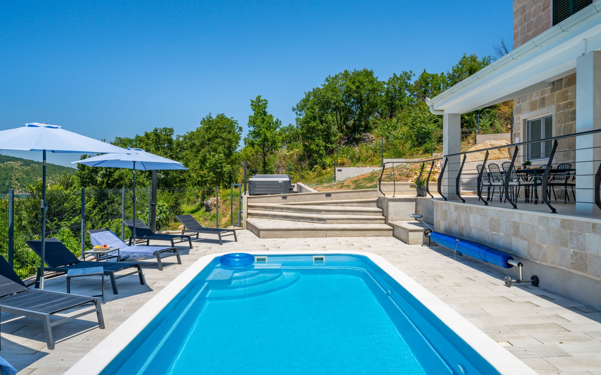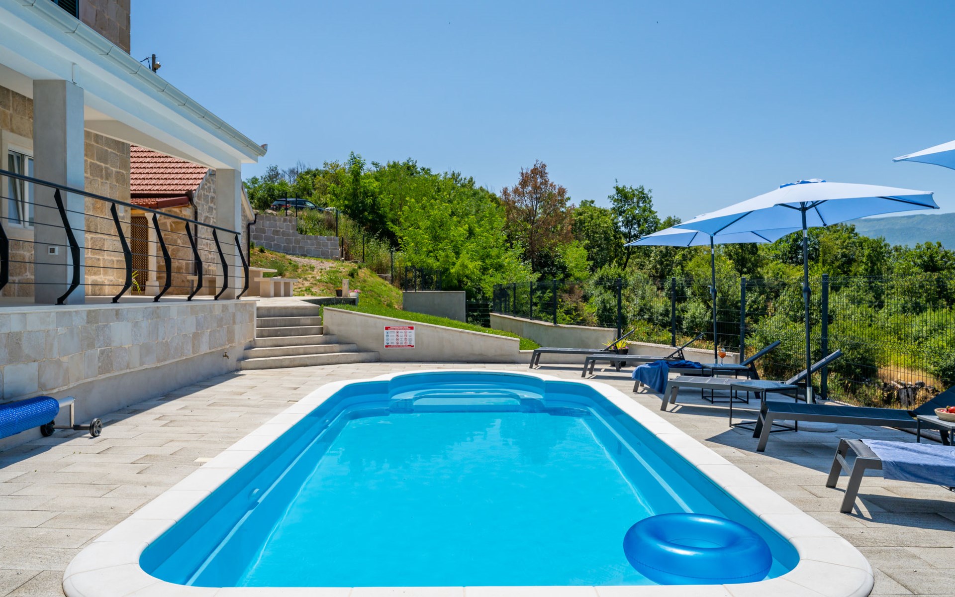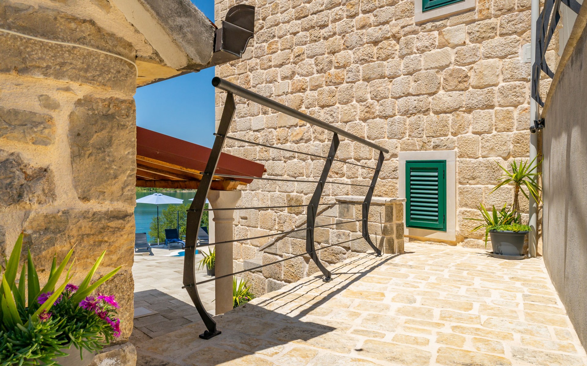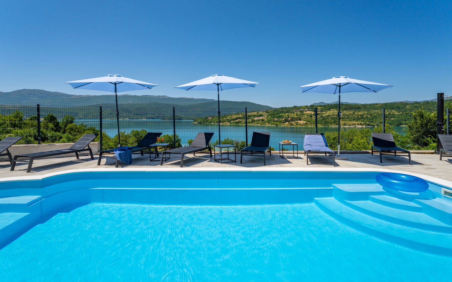 Garjak 11 km van Vrlika: Eengezinswoning "Escape on lake". Rustige, zonnige, verhoogde ligging, 65 km van zee, 20 m van het meer, op het zuidwesten. Voor alleengebruik: terrein 900 m2 (omheind), openluchtzwembad verwarmd (9 x 3 m, 32 m2, 150 cm diepte, seizoensgebonden beschikbaarheid: 01.Mrt. - 01.Nov.) met trap. Buitendouche, privé-strand, hot tub, terras (45 m2), tuinmeubelen, barbecue, grill. In het huis: internetaansluiting, wasmachine, droger. Boodschappenpakket mogelijk bij aankomst. Parkeerplaats (voor 4 auto's) bij het huis op het terrein. Winkel 11 km, restaurant 11 km, café 11 km, bushalte 11 km, kiezelstrand 68 km, meer (zwemmen) "Peručko jezero" 20 m. Fietspad 1 km. Attracties in de buurt: Vrelo Cetine 11 km, NP Krka 54 km. Bekende meren kunnen gemakkelijk worden bereikt: Peručko jezero 20 m. Op aanvraag kan een transfer vanaf de luchthaven naar de vakantiewoning geregeld worden.