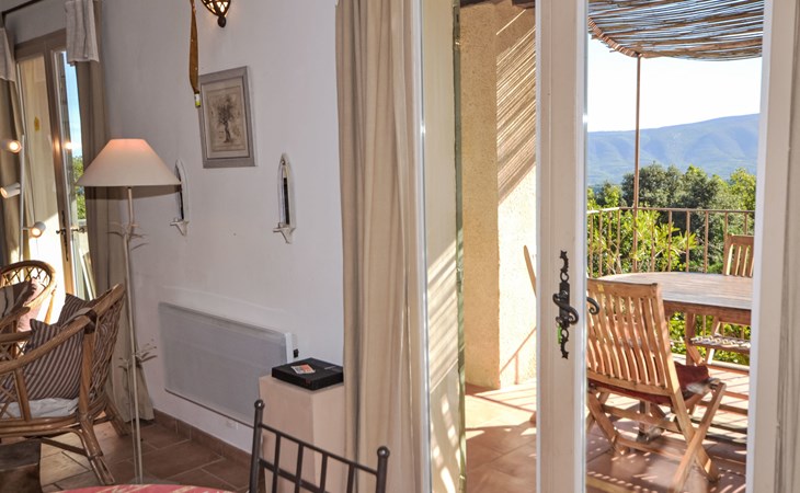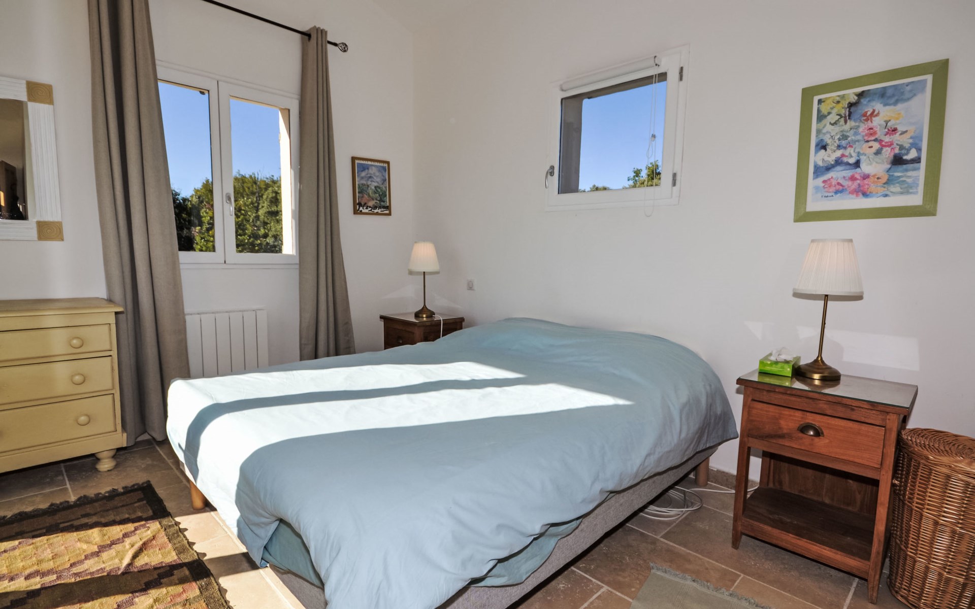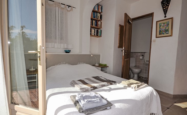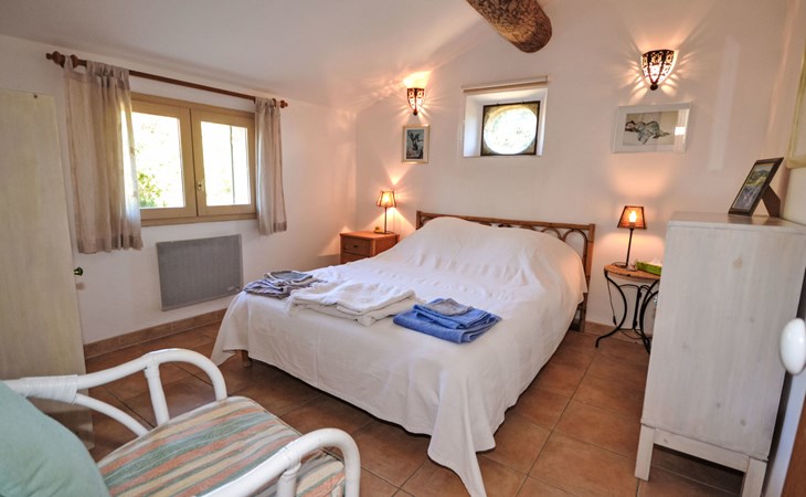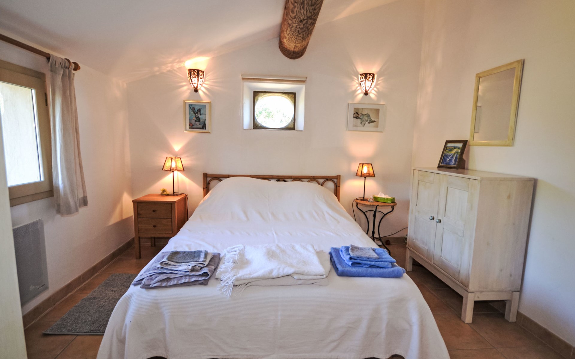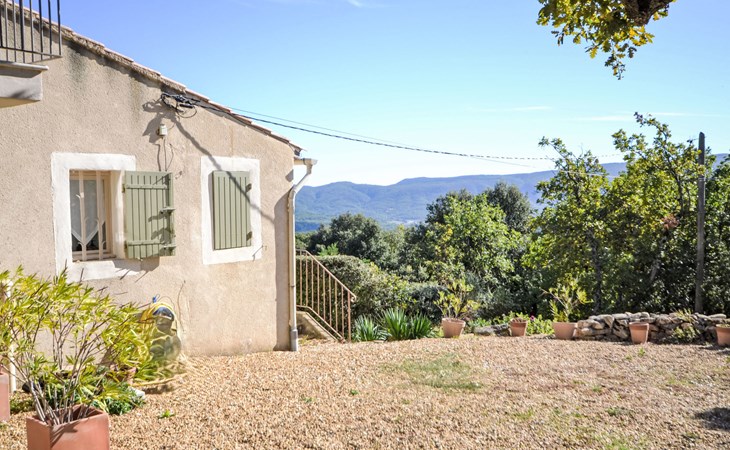 Viens 18 km van Apt: Eengezinswoning "Les Cairnes". Buiten de plaats, geïsoleerde ligging. Voor alleengebruik: terrein 2.500 m2 (omheind), openluchtzwembad omheind (8 x 4 m, 150 cm diepte, seizoensgebonden beschikbaarheid: 01.Mei. - 30.Sep.). Steile toegangsweg (onverharde weg). Parkeerplaats op het terrein. Winkel 12 km, levensmiddelenwinkel 300 m, supermarkt 11 km, restaurant 400 m, bushalte "Centre" 600 m. Auto noodzakelijk. De eigenaar accepteert geen jeugdgroepen.