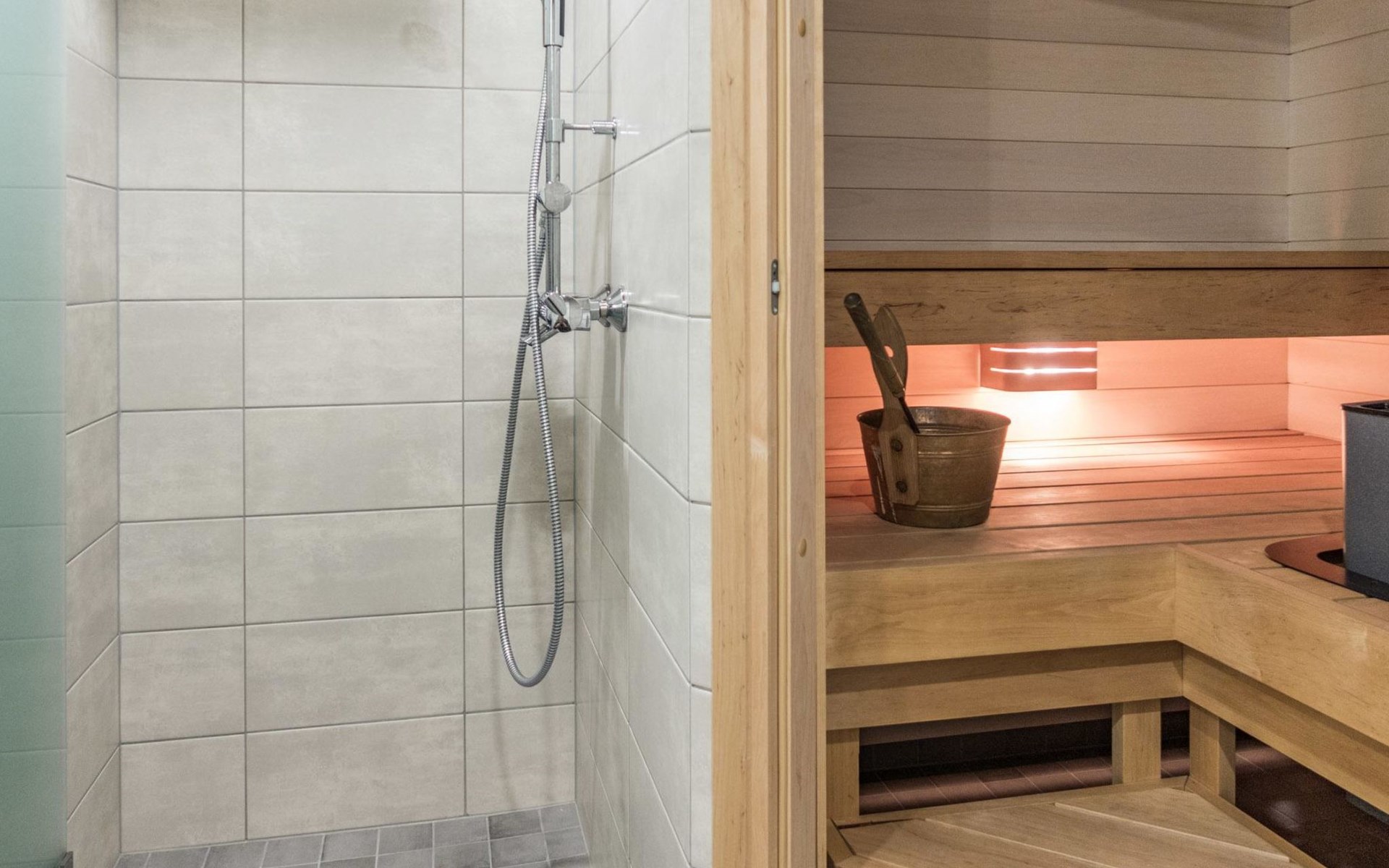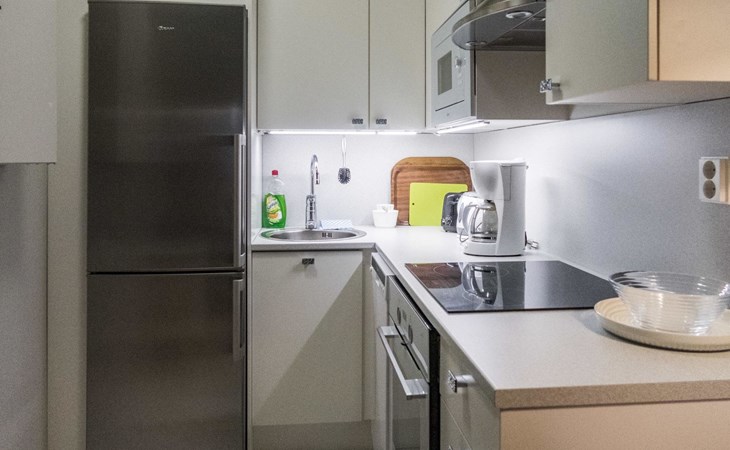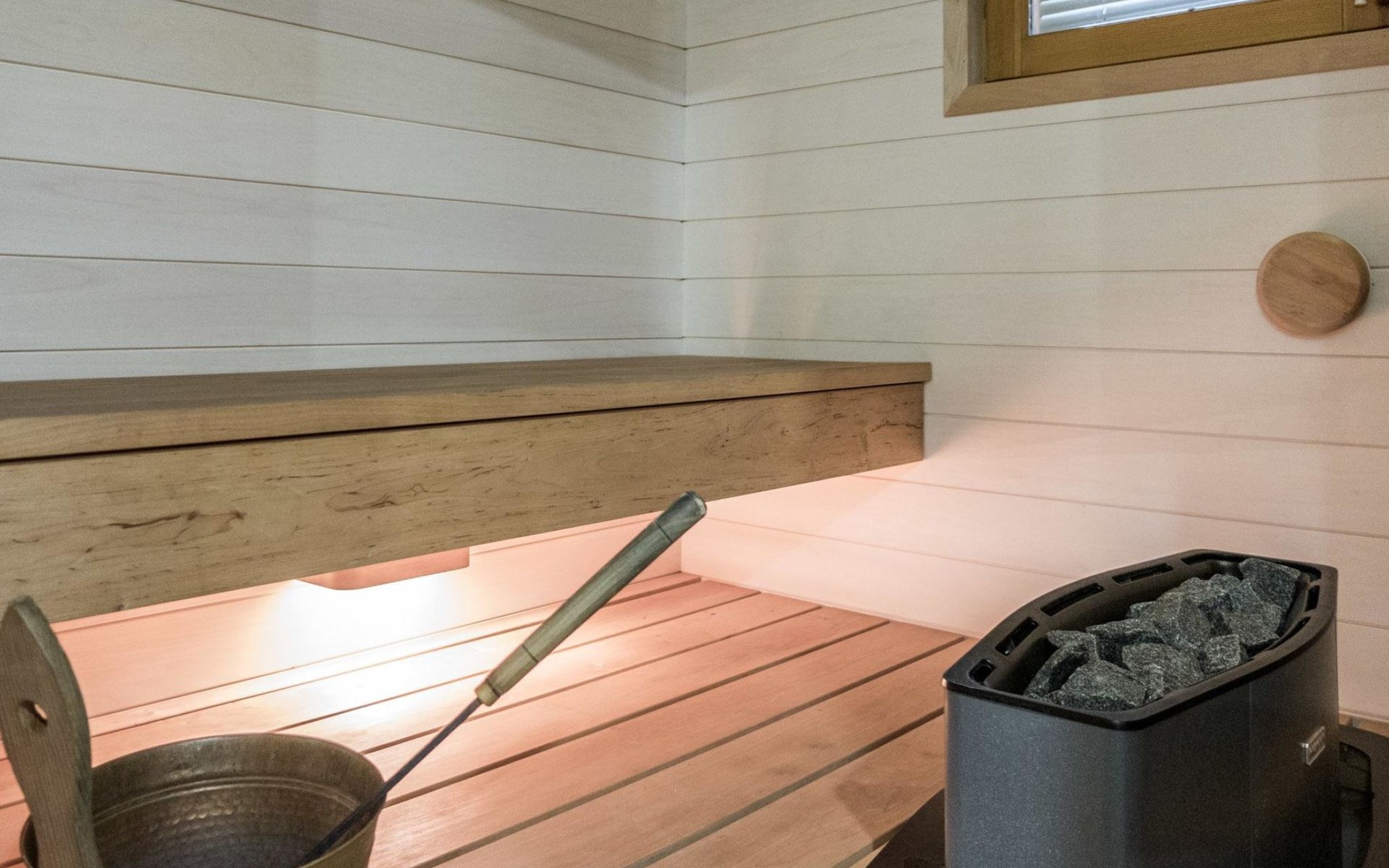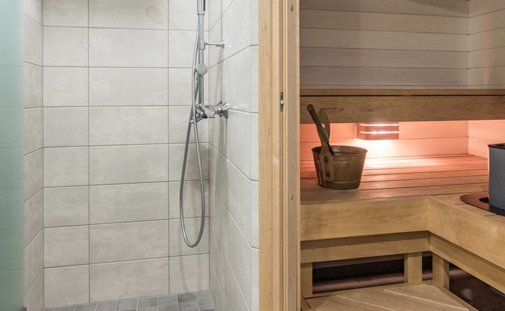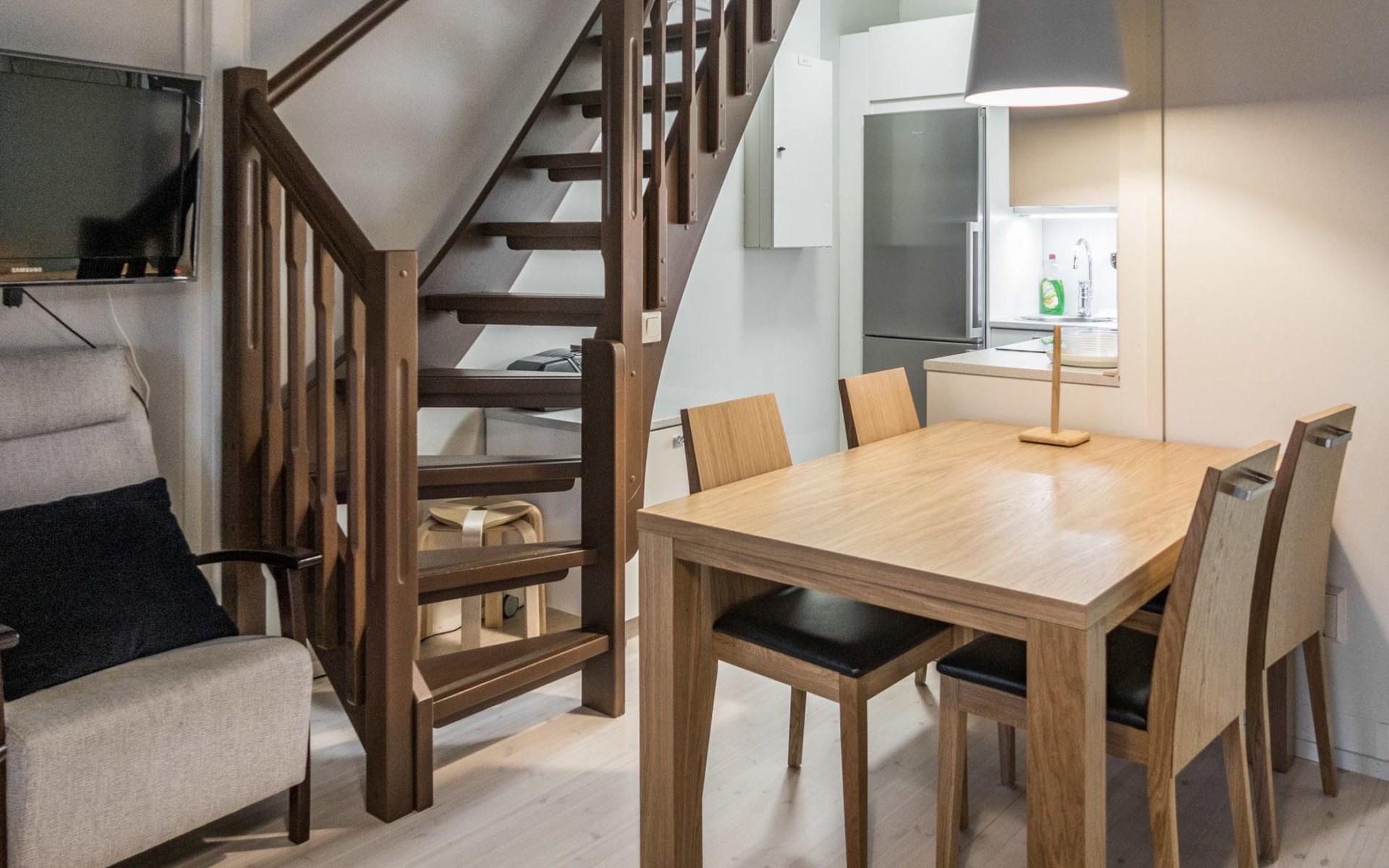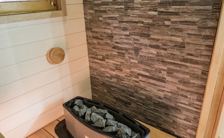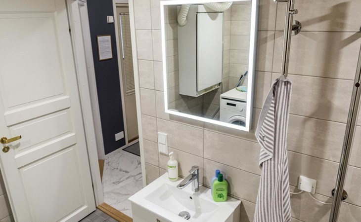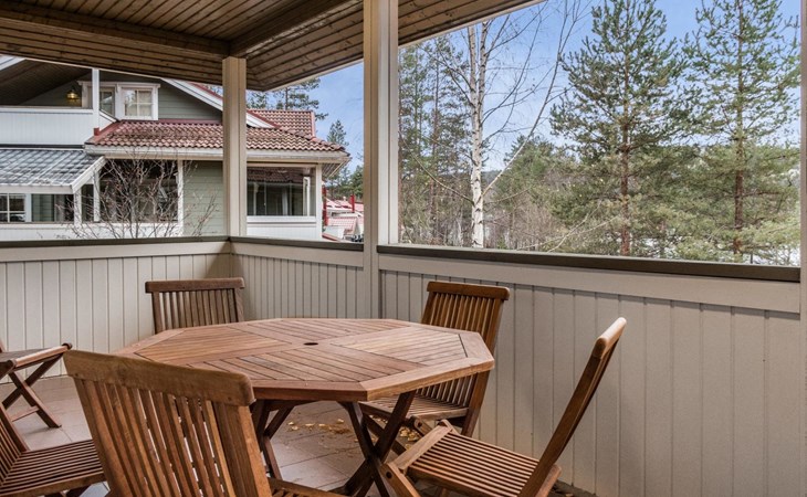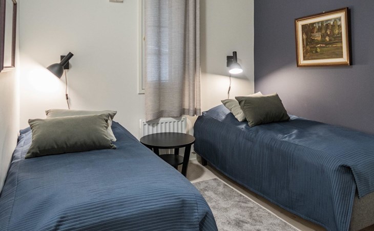 Mustikka - apartment is 40 m² + 15 m² balcony. There is a combination of livingroom/kitchen, with sofabed for 1-2 persons. One bedroom with separate beds for 2 persons. 2. floor is separate beds for two. Shower / toilet, sauna (electric heating), terrace. Shared swimming place, distance about 50 m.