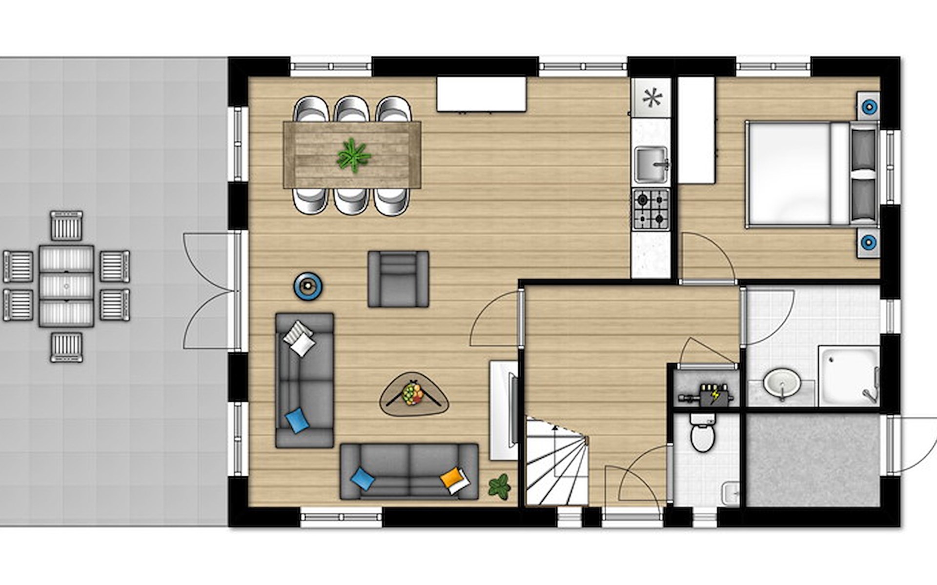 De vrijstaande Esdorp Bungalow | 6 personen op Summio Landgoed Het Grote Zand is geschikt voor maximaal 6 personen. Deze bungalow bestaat uit 2 verdiepingen en heeft 3 slaapkamers en 1 badkamer.