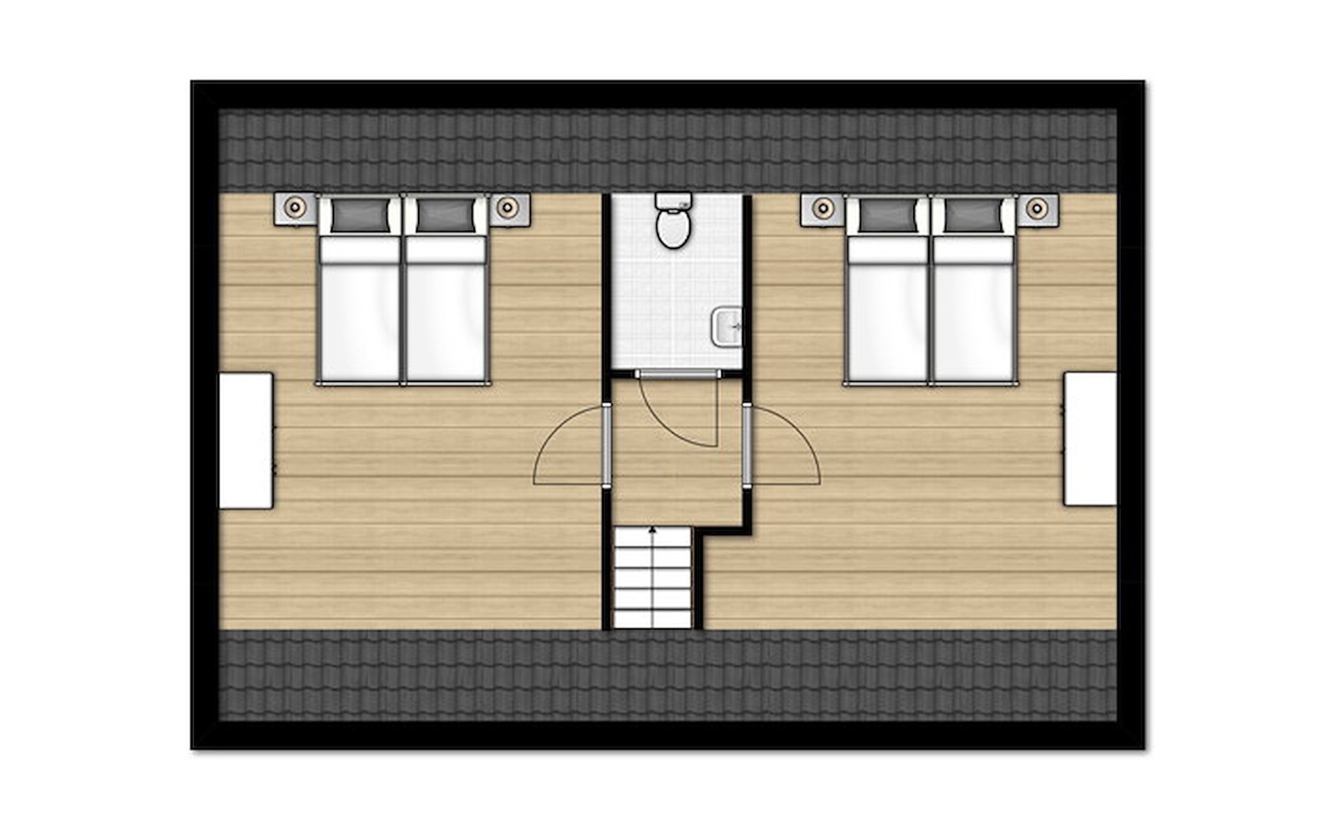 Op de eerste verdieping bevinden zich 2 slaapkamers met elk 2 éénpersoonsbedden.