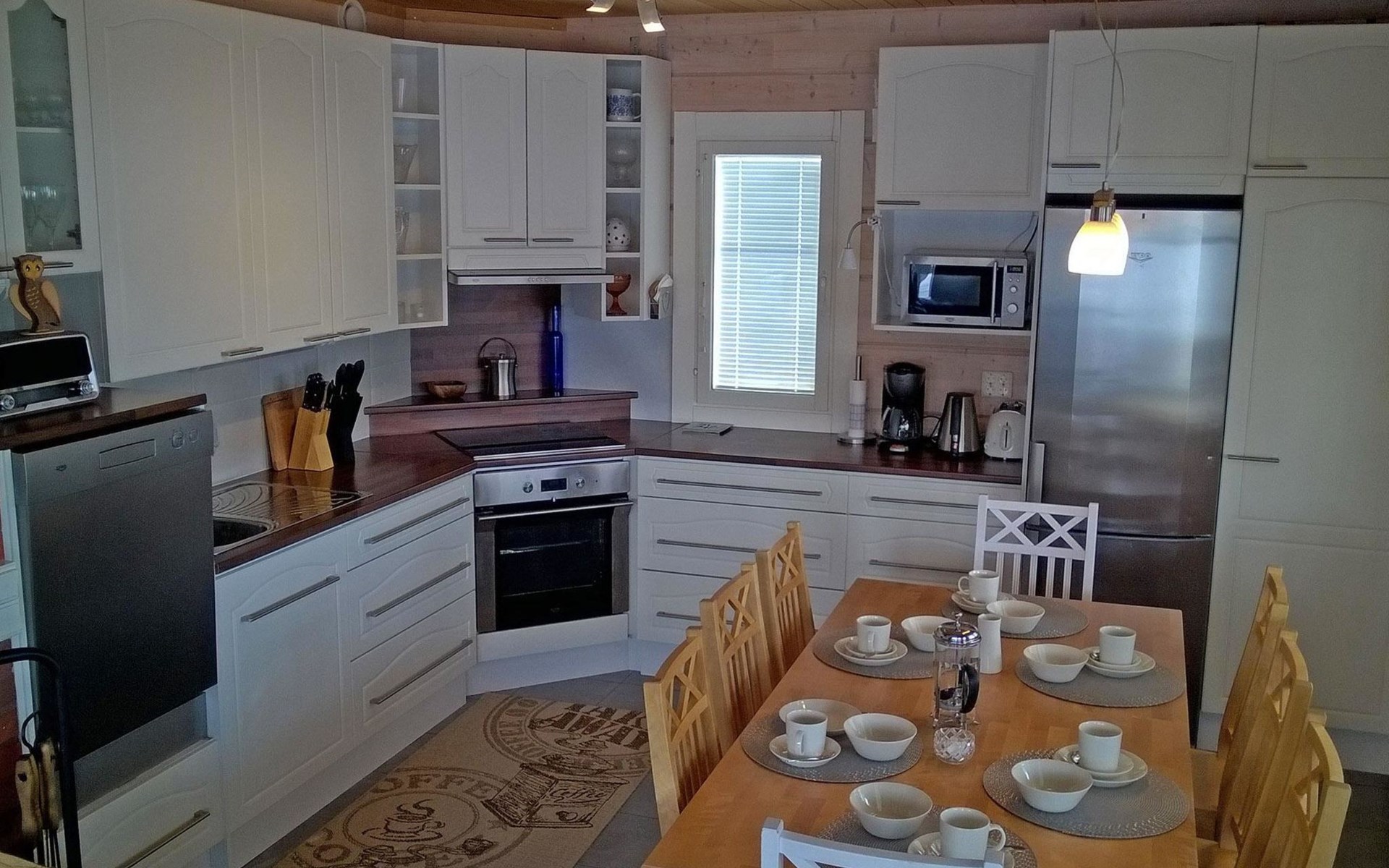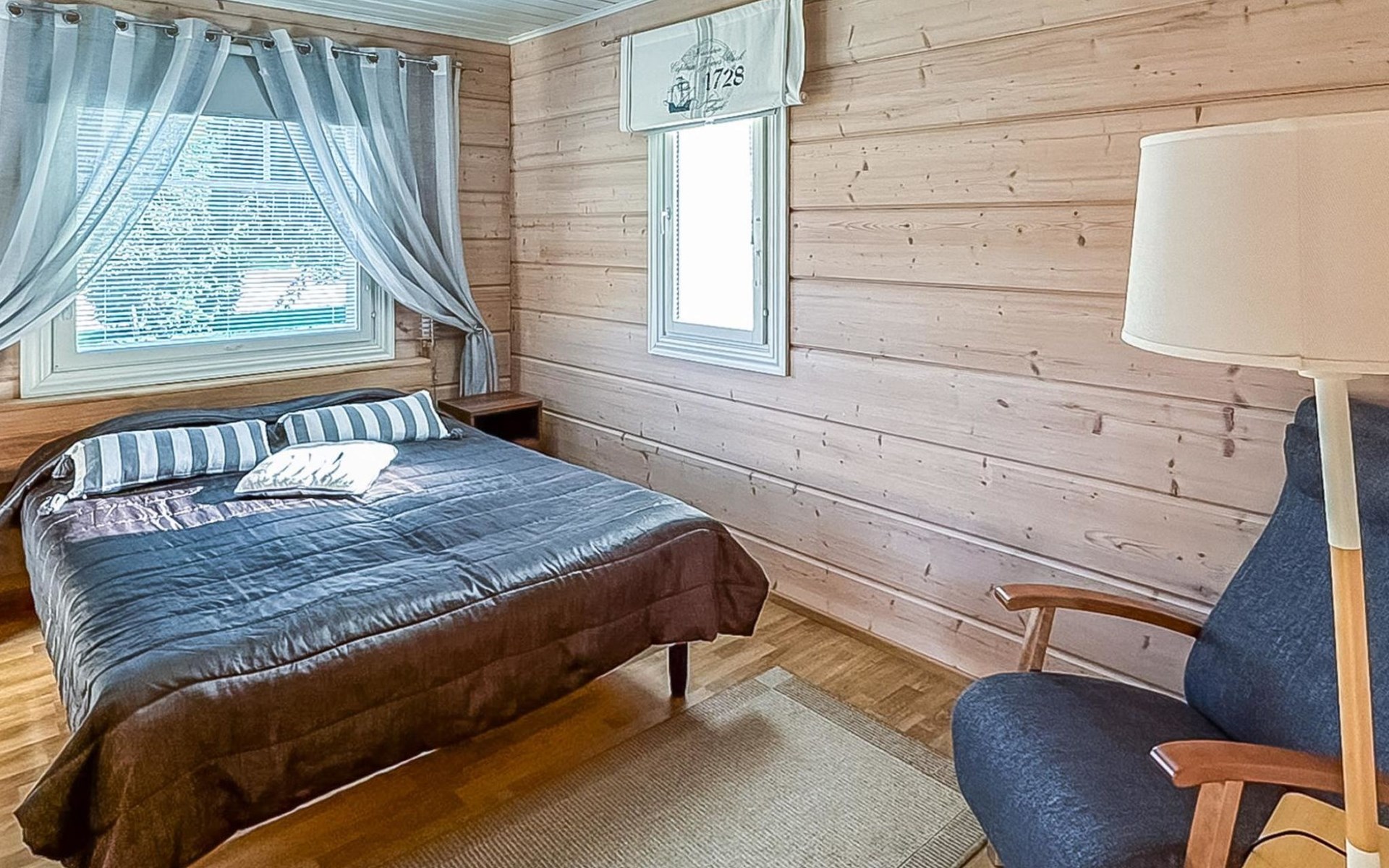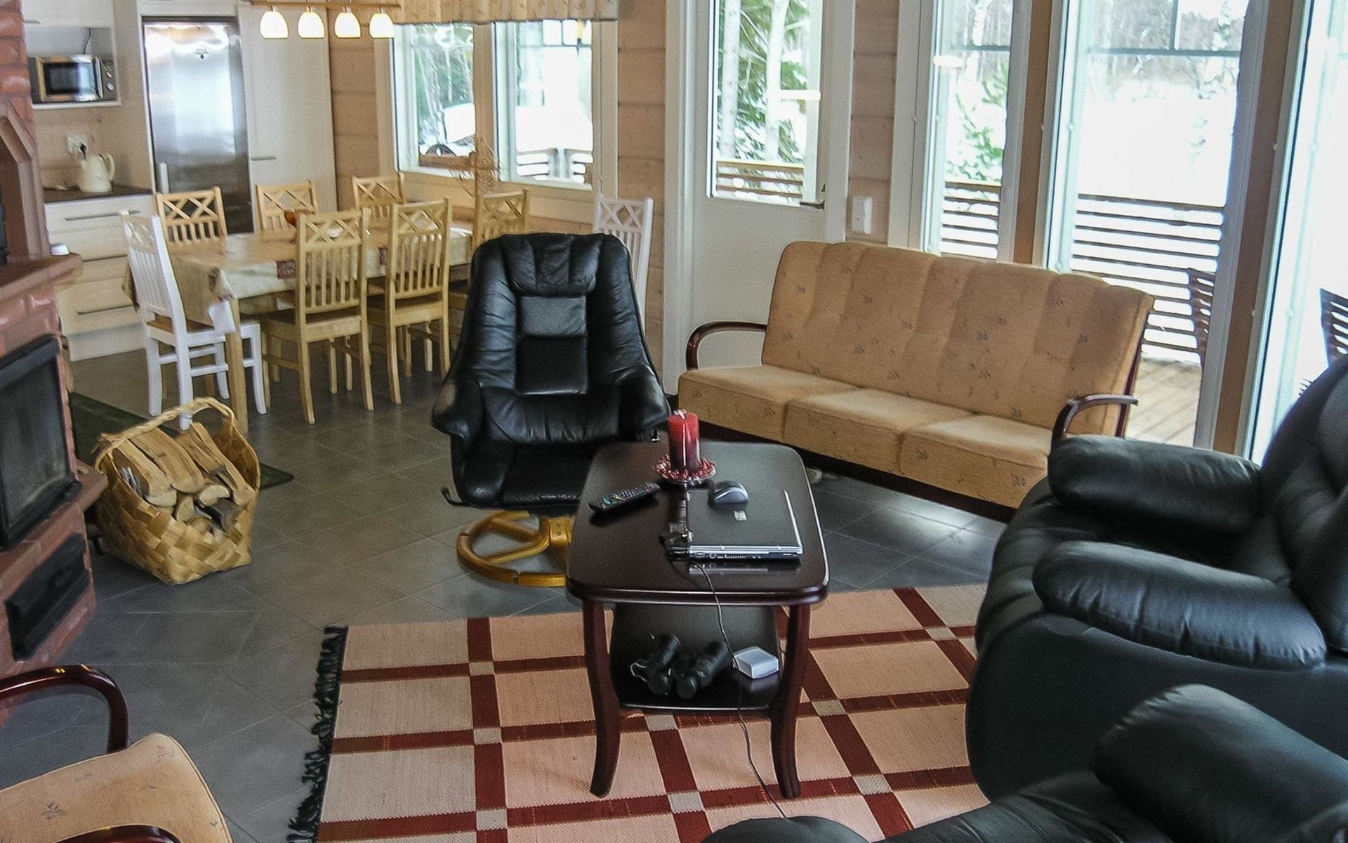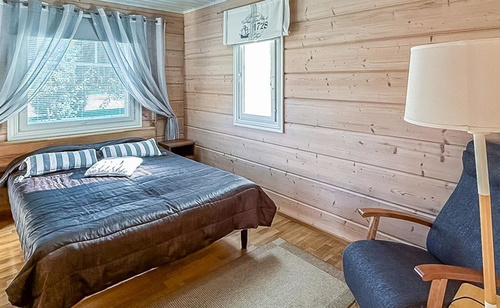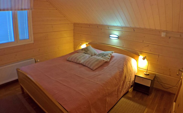 Log cottage 2012, kitchen-living room, bedroom with double bed (140 cm wide), sauna (electric), shower room, 2 showers and toilet, terrace.