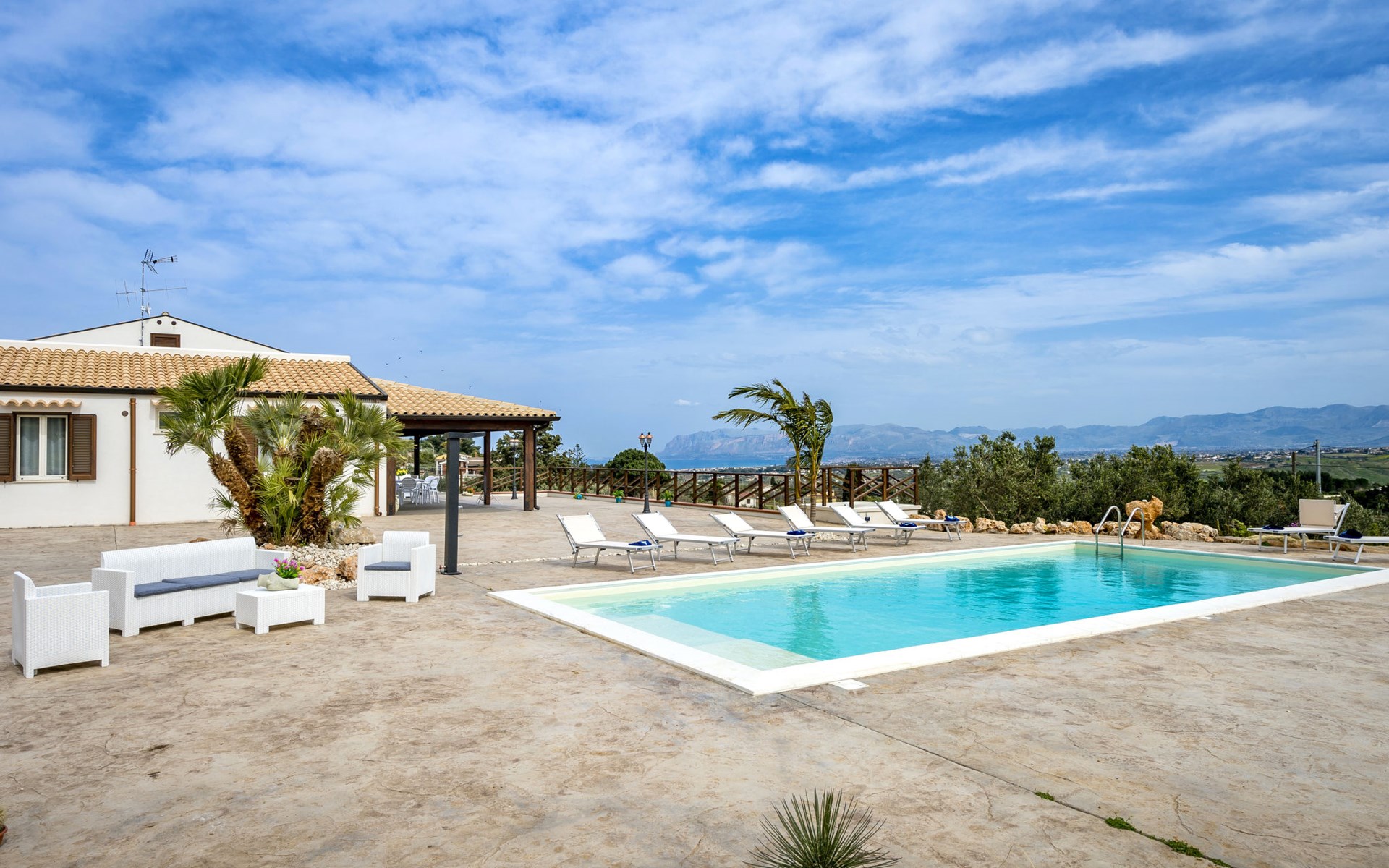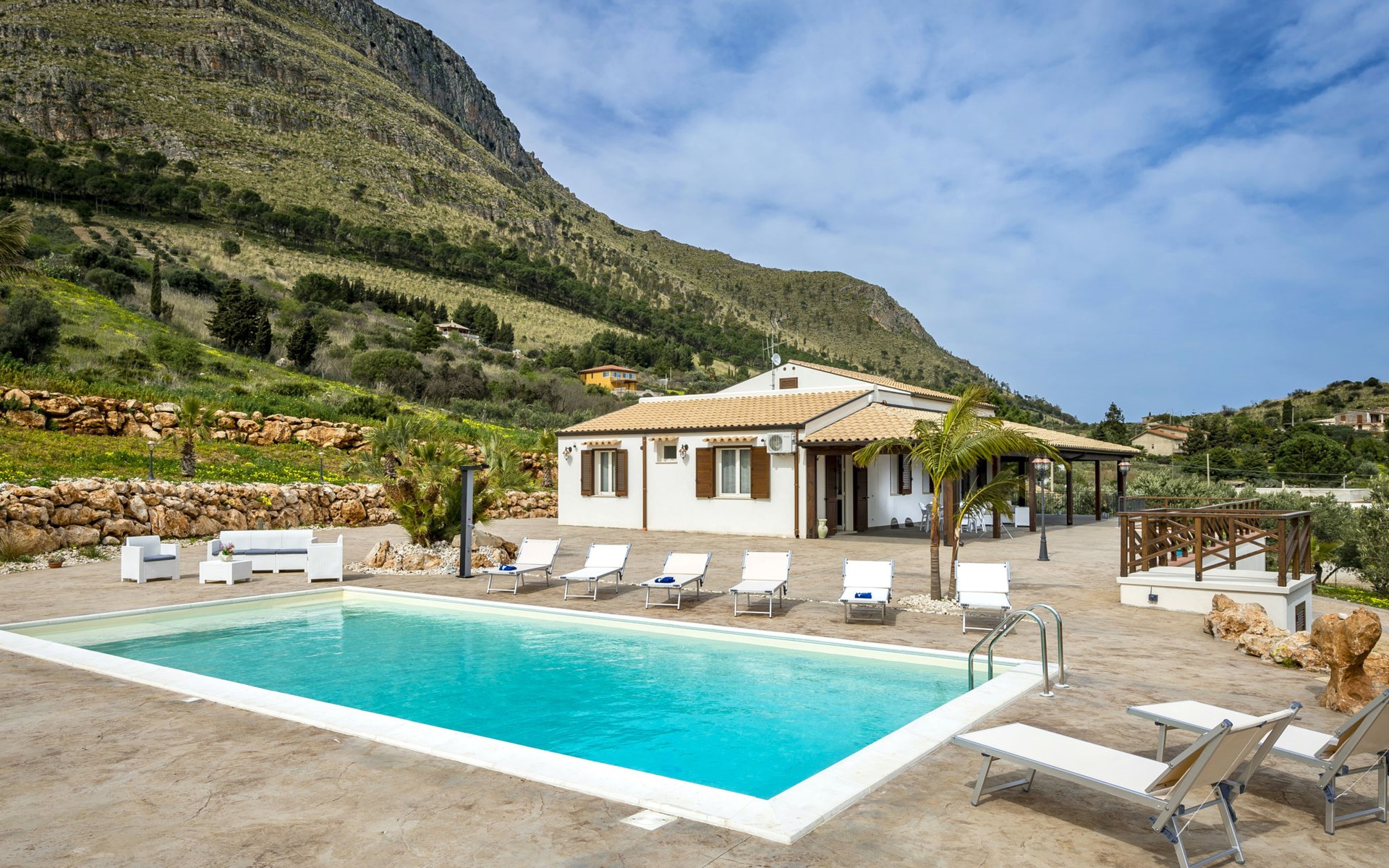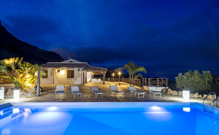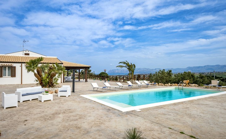Villa "Mari e Monti". 3 km van het centrum van Castellammare del Golfo, rustige, zonnige ligging, 4 km van zee. Voor alleengebruik: terrein 800 m2 (omheind), openluchtzwembad (10 x 6 m, 120 - 240 cm diepte, seizoensgebonden beschikbaarheid: 01.Apr. - 31.Okt.). Tuinmeubelen, barbecue, onderhoud zwembad door de eigenaar/tuinman. Parkeerplaats (voor 2 auto's) op het terrein. Levensmiddelenwinkel 3 km, supermarkt 3 km, restaurant 3 km, bar 3 km, bushalte 12 km, zandstrand "Castellammare del Golfo" 3 km. Attracties in de buurt: Segesta Parco Archeologico 10 km, Trapani/Porto Aliscafi per Isole Egadi 40 km, Erice 41 km, San Vito lo Capo 48 km, Marsala-Salina 51 km, Palermo 65 km. Auto noodzakelijk.