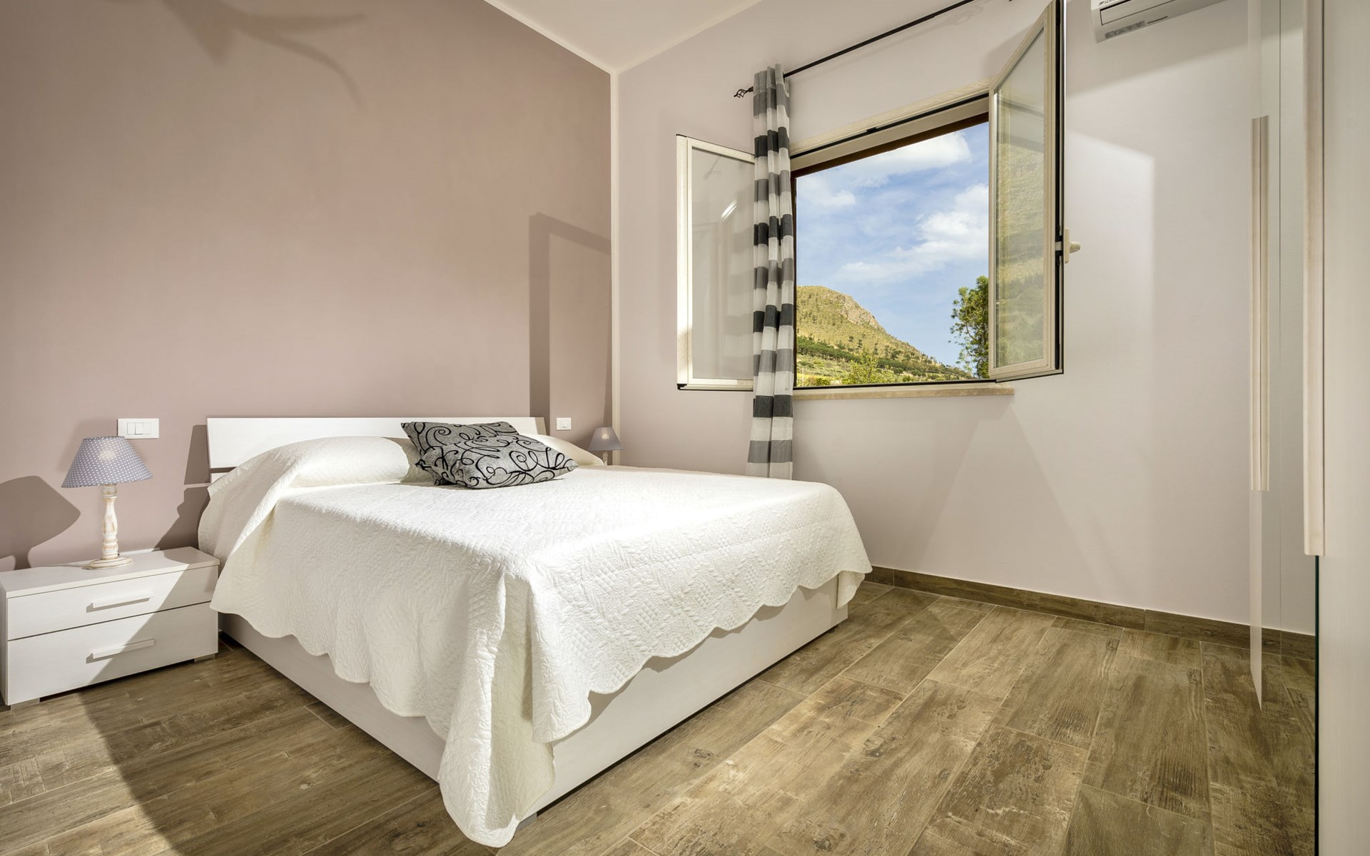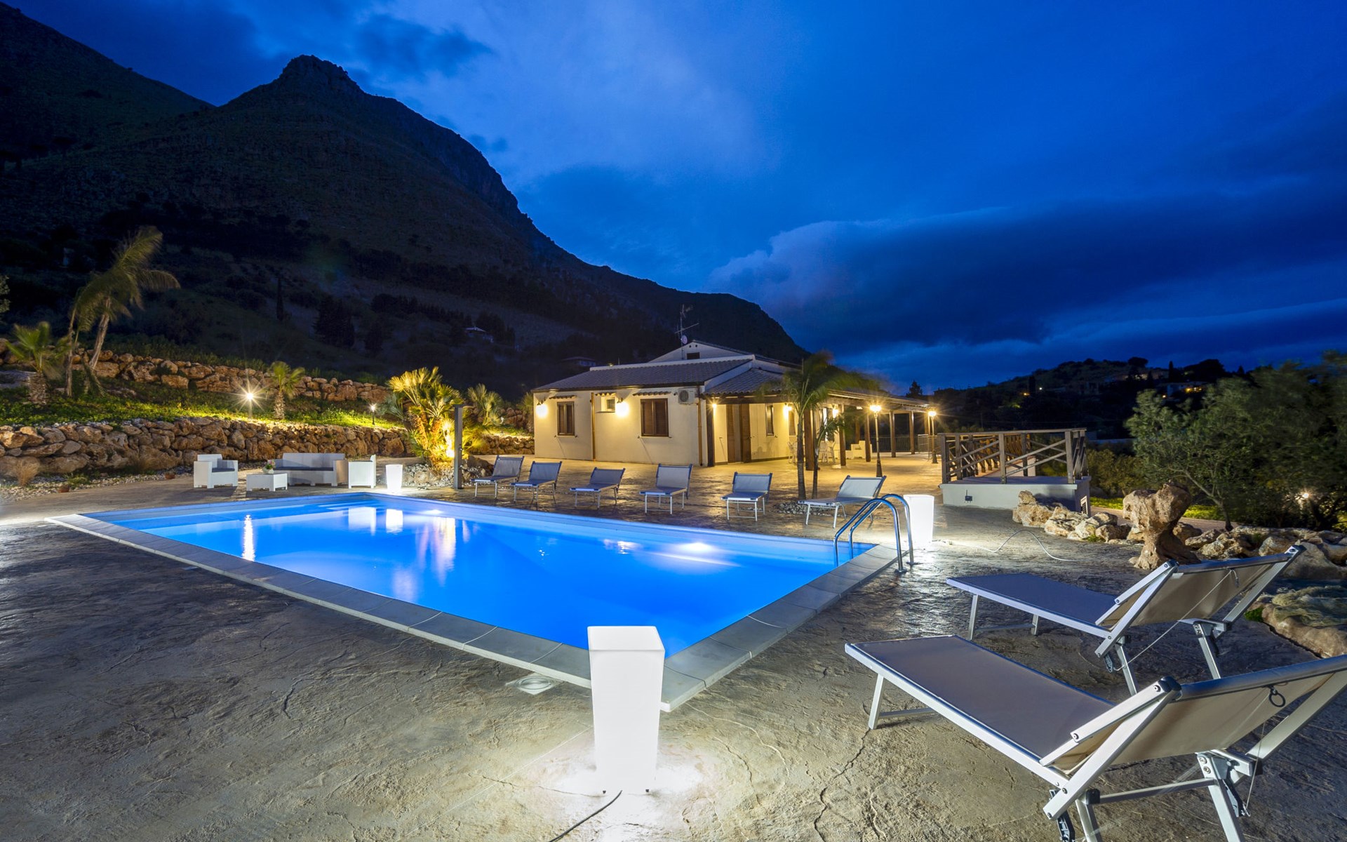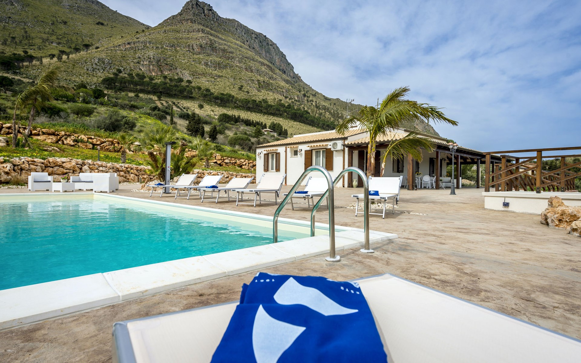 Villa "Mari e Monti". 3 km van het centrum van Castellammare del Golfo, rustige, zonnige ligging, 4 km van zee. Voor alleengebruik: terrein 800 m2 (omheind), openluchtzwembad (10 x 6 m, 120 - 240 cm diepte, seizoensgebonden beschikbaarheid: 01.Apr. - 31.Okt.). Tuinmeubelen, barbecue, onderhoud zwembad door de eigenaar/tuinman. Parkeerplaats (voor 2 auto's) op het terrein. Levensmiddelenwinkel 3 km, supermarkt 3 km, restaurant 3 km, bar 3 km, bushalte 12 km, zandstrand "Castellammare del Golfo" 3 km. Attracties in de buurt: Segesta Parco Archeologico 10 km, Trapani/Porto Aliscafi per Isole Egadi 40 km, Erice 41 km, San Vito lo Capo 48 km, Marsala-Salina 51 km, Palermo 65 km. Auto noodzakelijk.