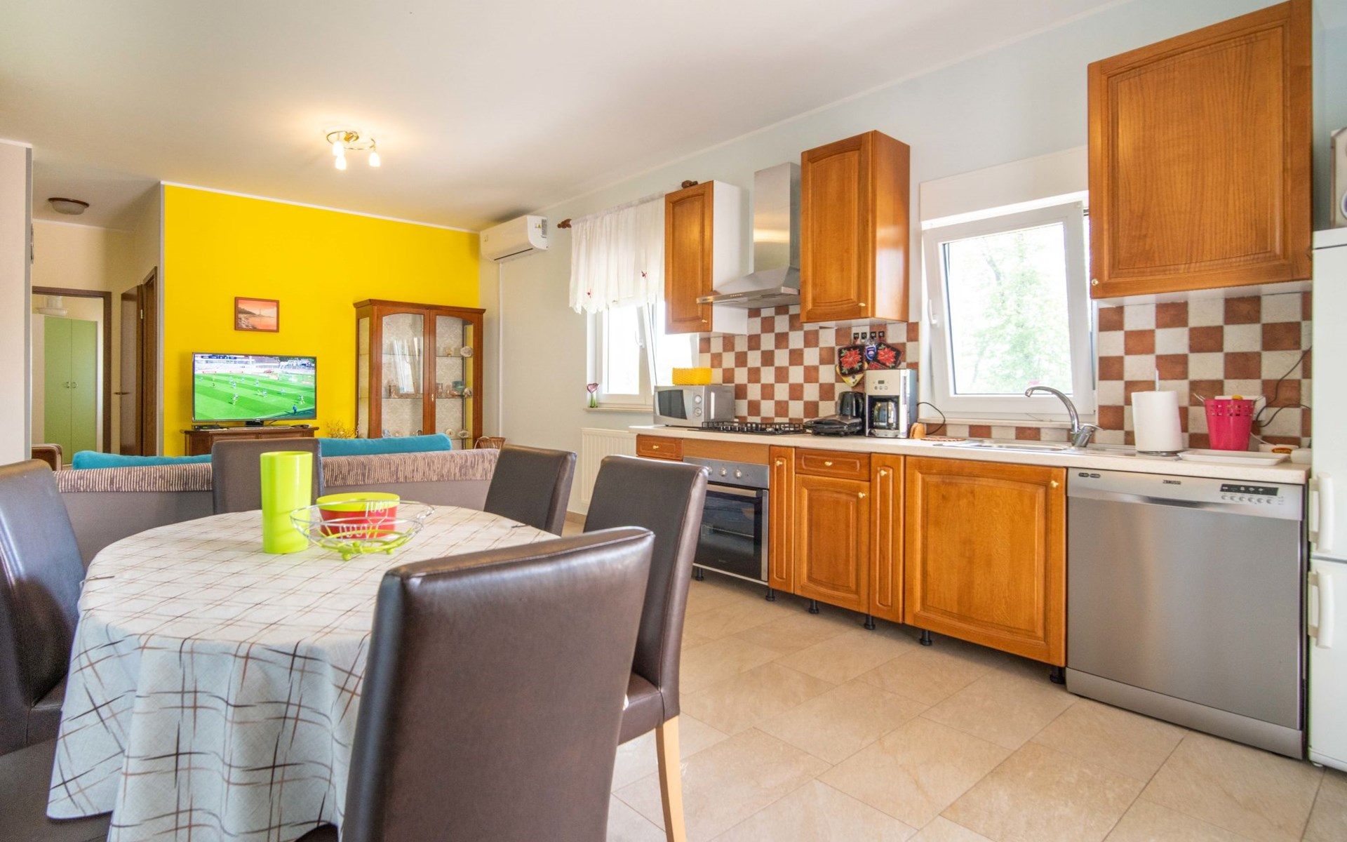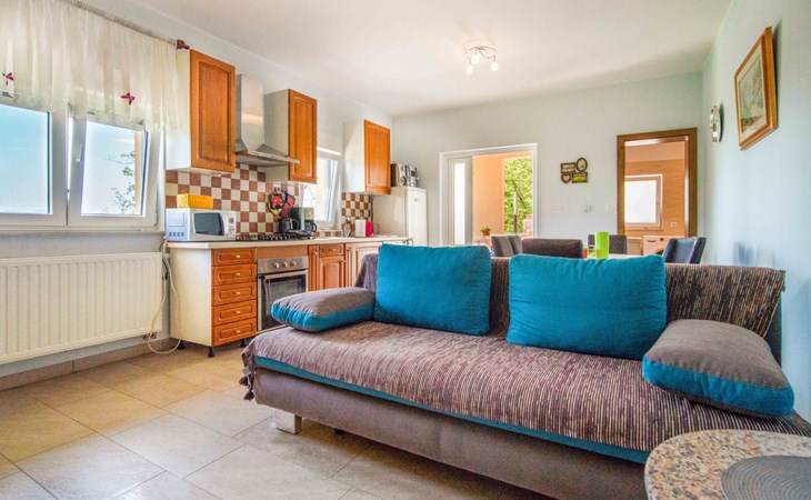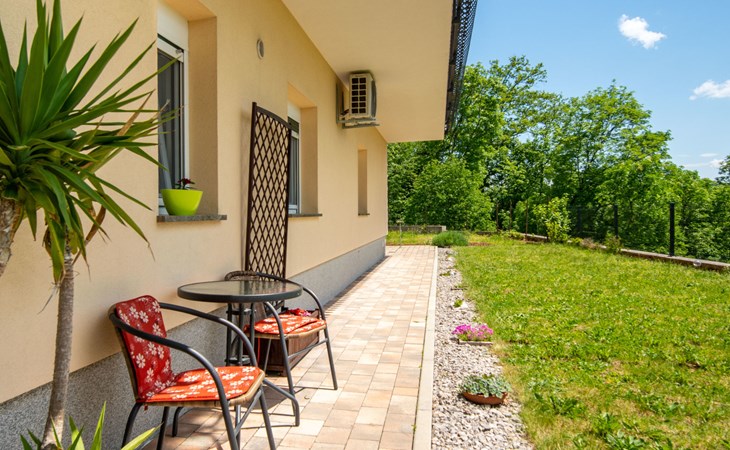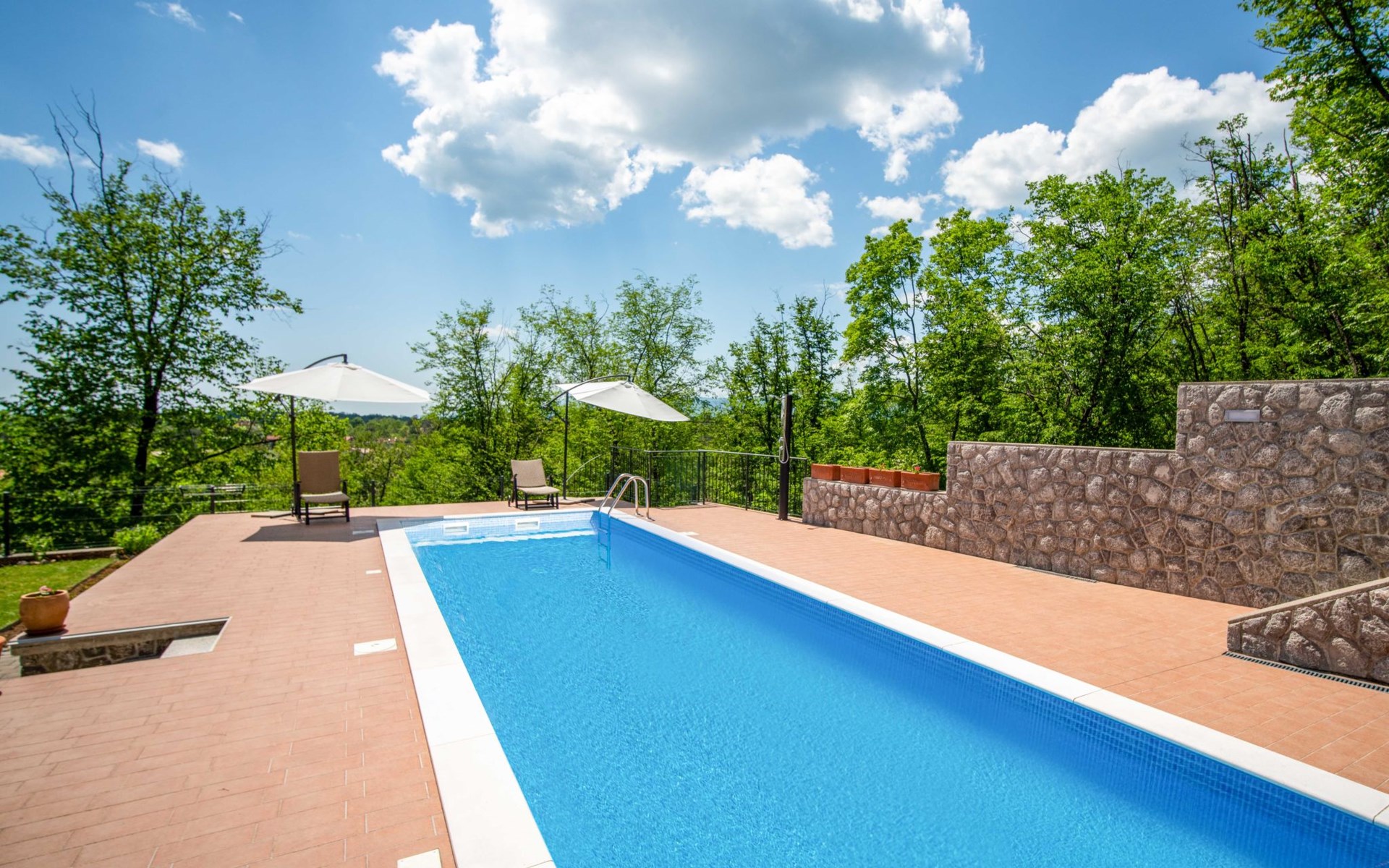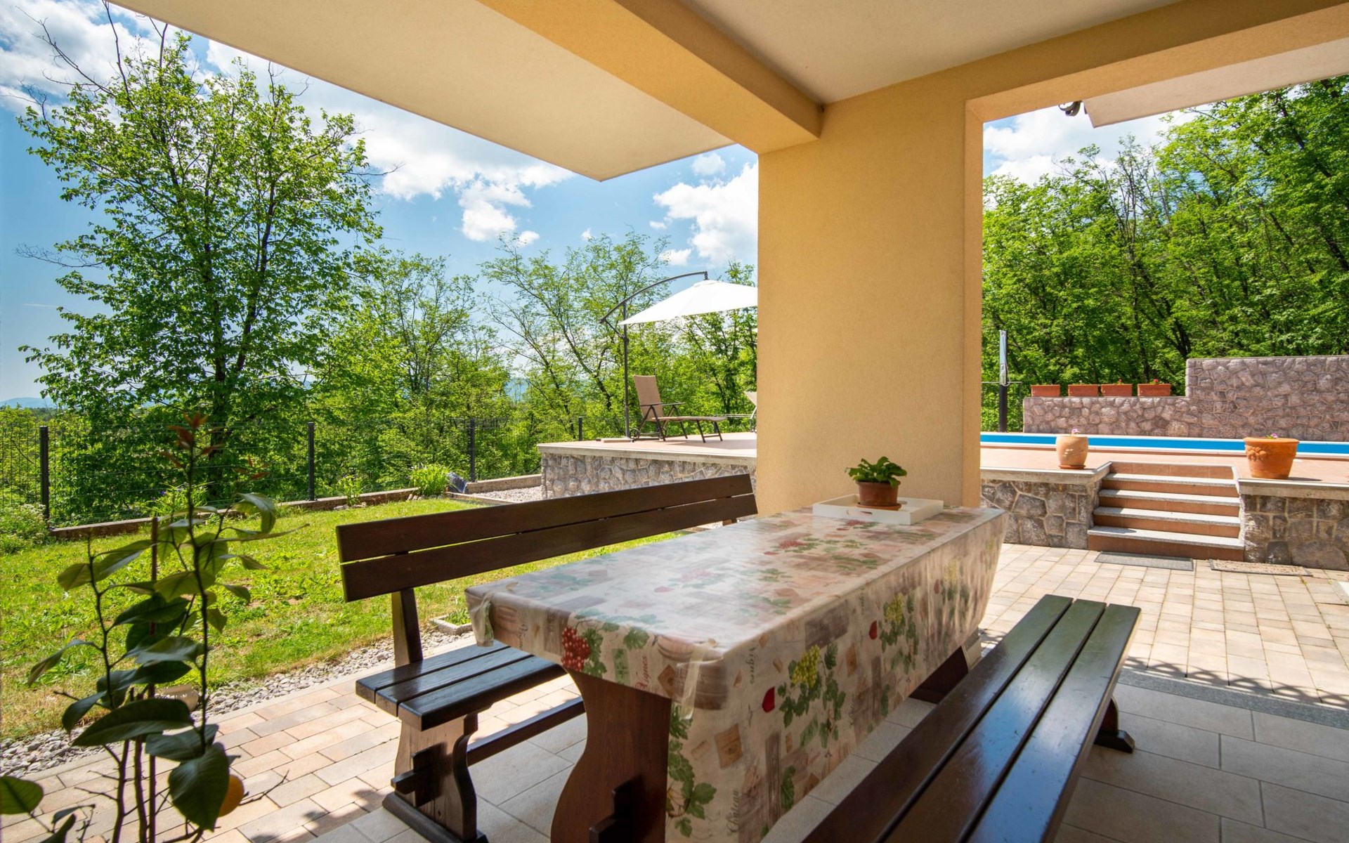 Eengezinswoning "Korina", van 2 verdiepingen. 1.3 km van het centrum van Klana, 19 km van het centrum van Opatija, 15 km van het centrum van Matulji, rustige, zonnige, verhoogde ligging, direct aan de bosrand, 17 km van zee, 17 km van het strand, aan een doodlopende weg. Voor alleengebruik: terrein 1.200 m2 (omheind) met gazon 130 m2, openluchtzwembad hoekig (12 x 3 m, 145 cm diepte, seizoensgebonden beschikbaarheid: 01.Mei. - 30.Sep.). Buitendouche, barbecue, onderhoud zwembad door de eigenaar/tuinman. In het huis: internetaansluiting. Parkeerplaats bij het huis op het terrein. Winkel 1.3 km, restaurant 10 km, bushalte 500 m, kiezelstrand "Volosko" 17 km, betonnen strand 17 km. Eerste verdieping is afgesloten en niet bewoond.