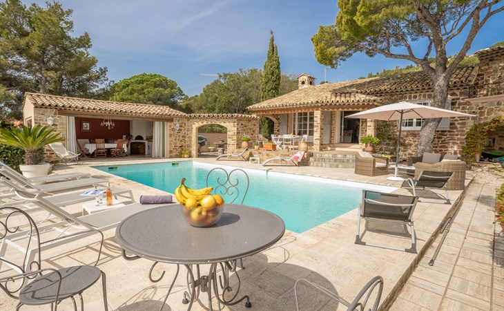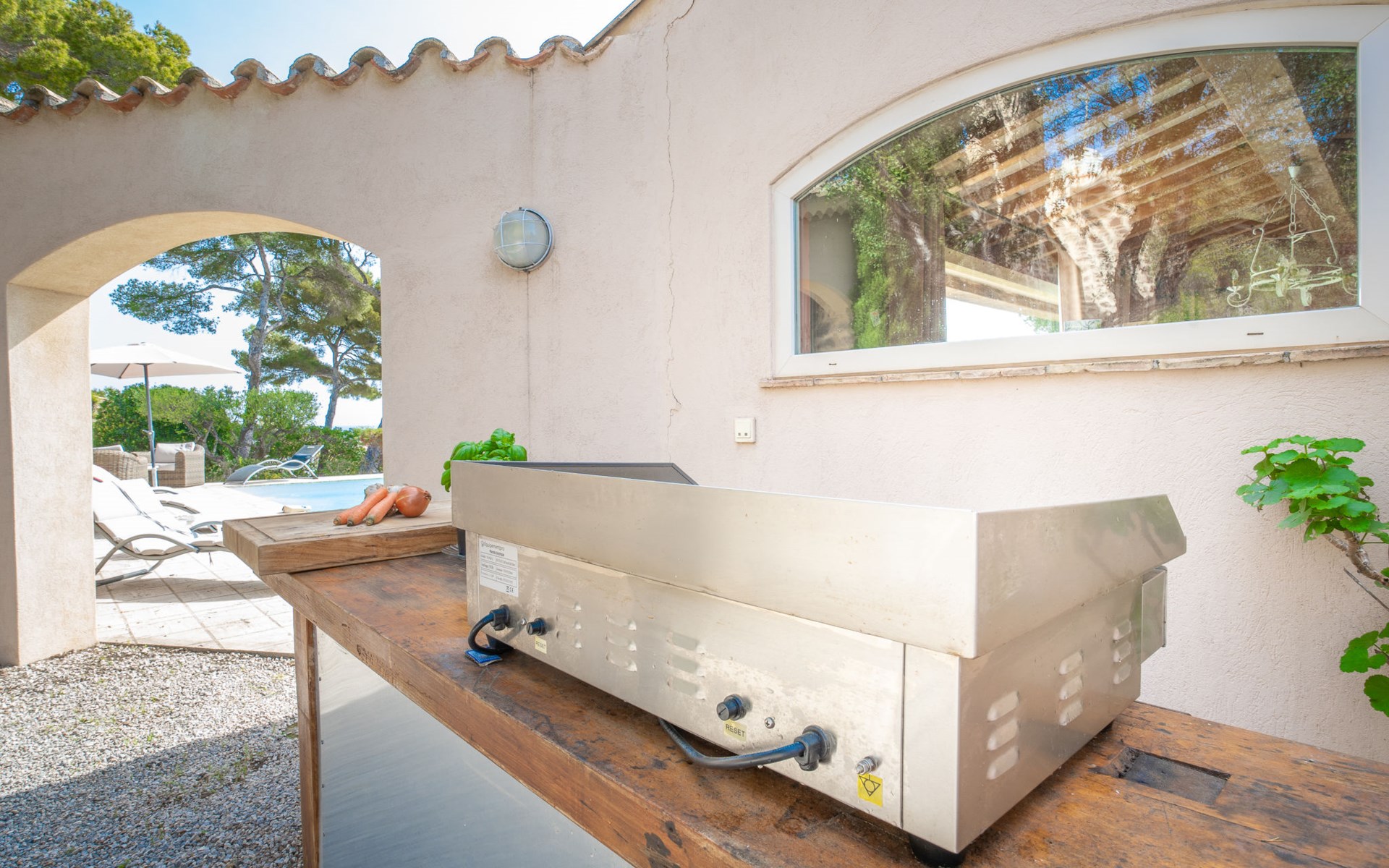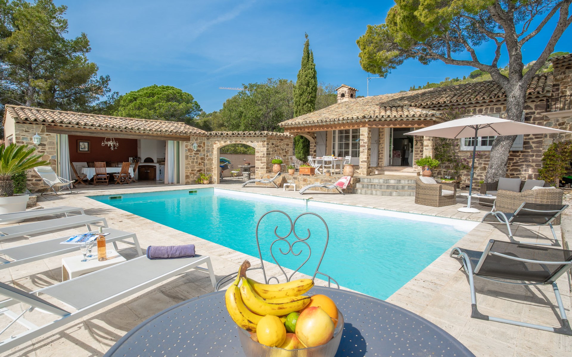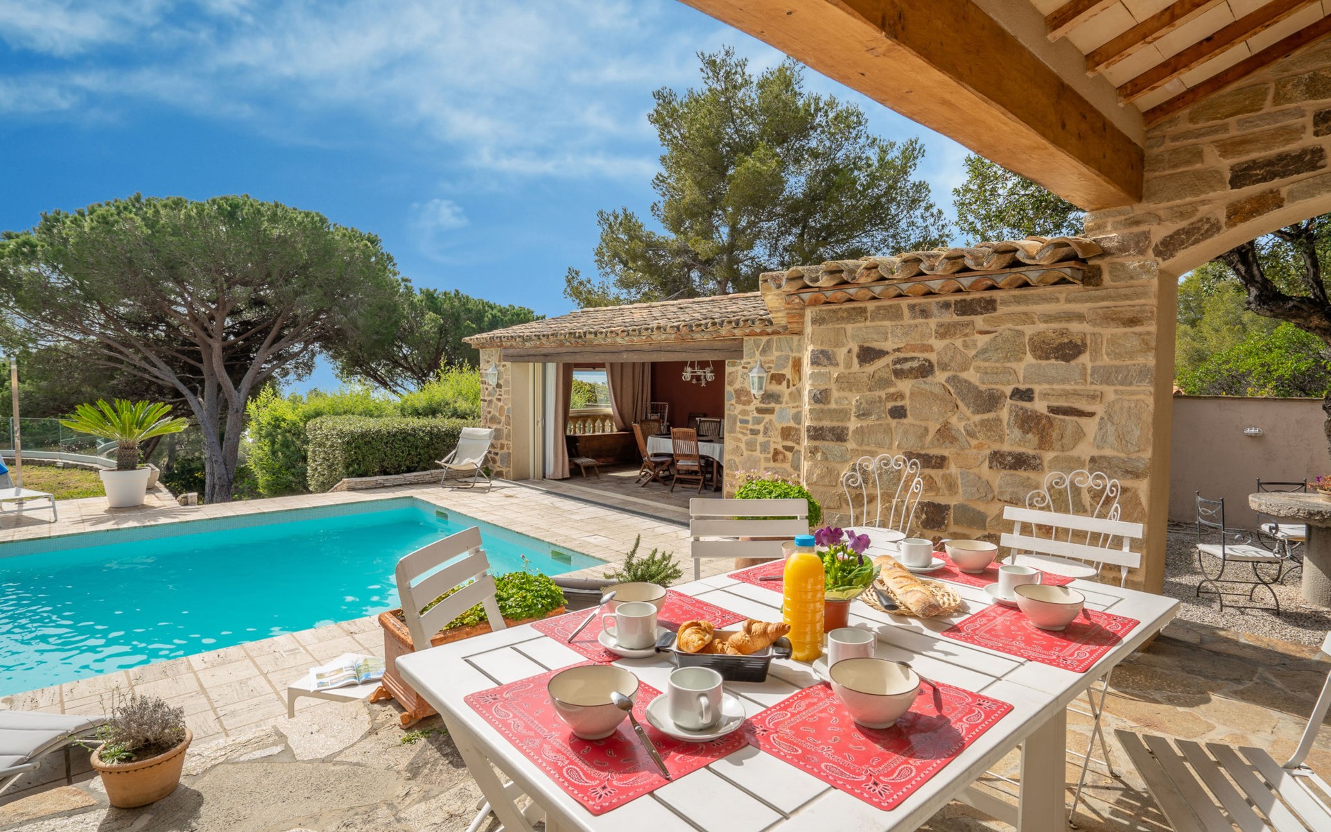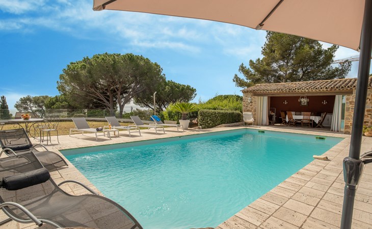 Zeer mooi eengezinswoning "La Crischona". 2 km van het centrum van Les Issambres, 10 km van het centrum van Sainte Maxime, 45 km van het centrum van Cannes, in een woonwijk, 300 m van zee, 300 m van het strand. Voor alleengebruik: terrein 2.400 m2 (omheind), verzorgde tuin, openluchtzwembad (10 x 5 m, 50 - 270 cm diepte, seizoensgebonden beschikbaarheid: 01.Jan. - 31.Dec.) met alarminstallatie en zout-elektrolyse. WC bij het zwembad, buitendouche, poolhouse met koelkast, parkeerplaats op het terrein. Carport. Winkel 2 km, bushalte, zandstrand, rotsstrand 300 m.