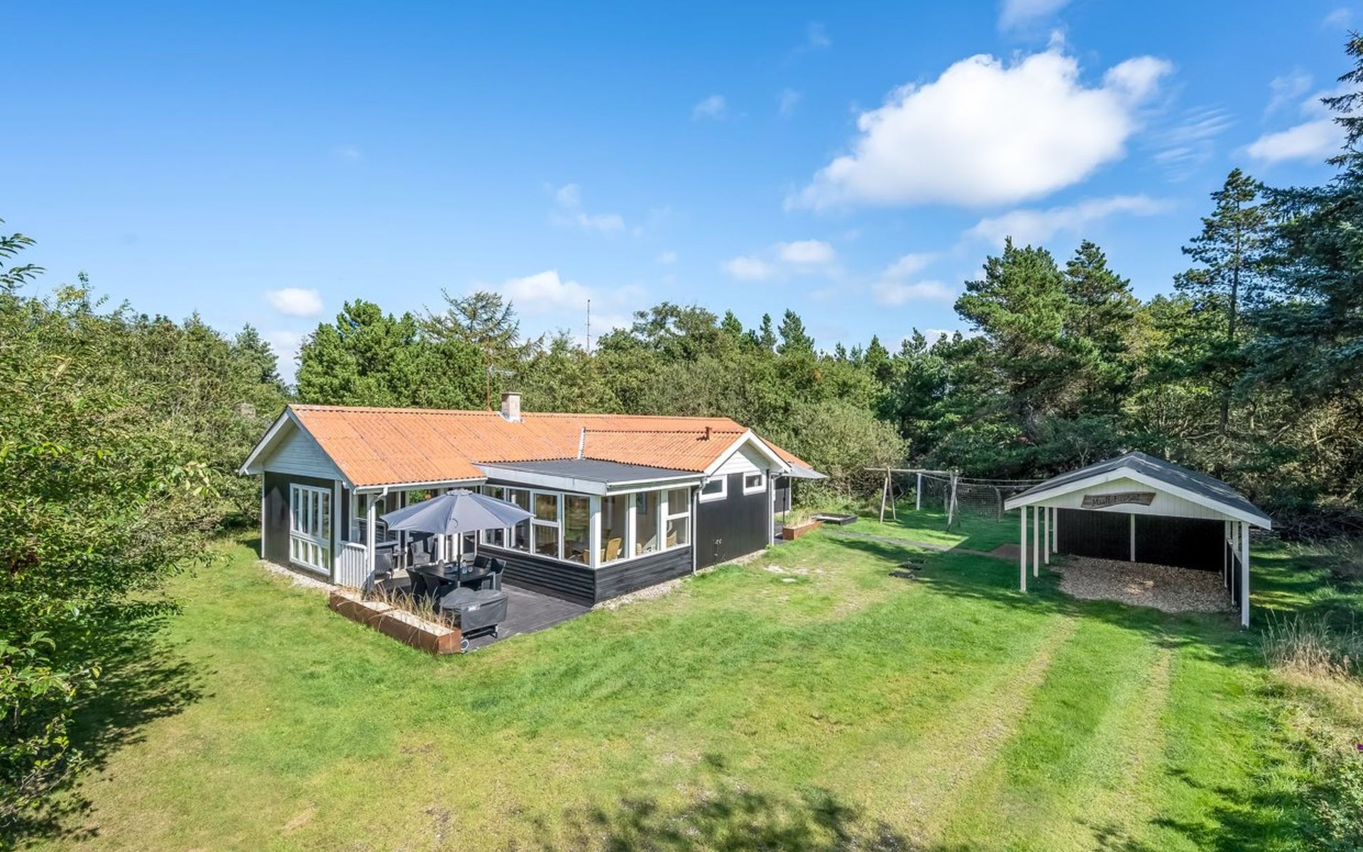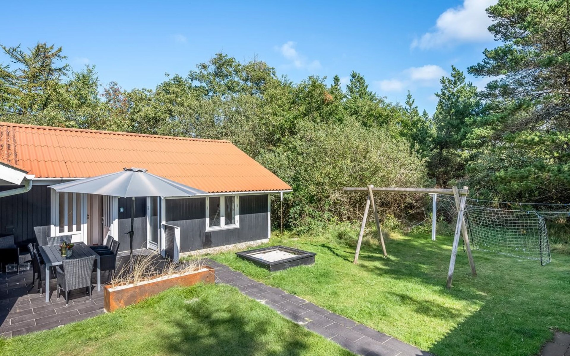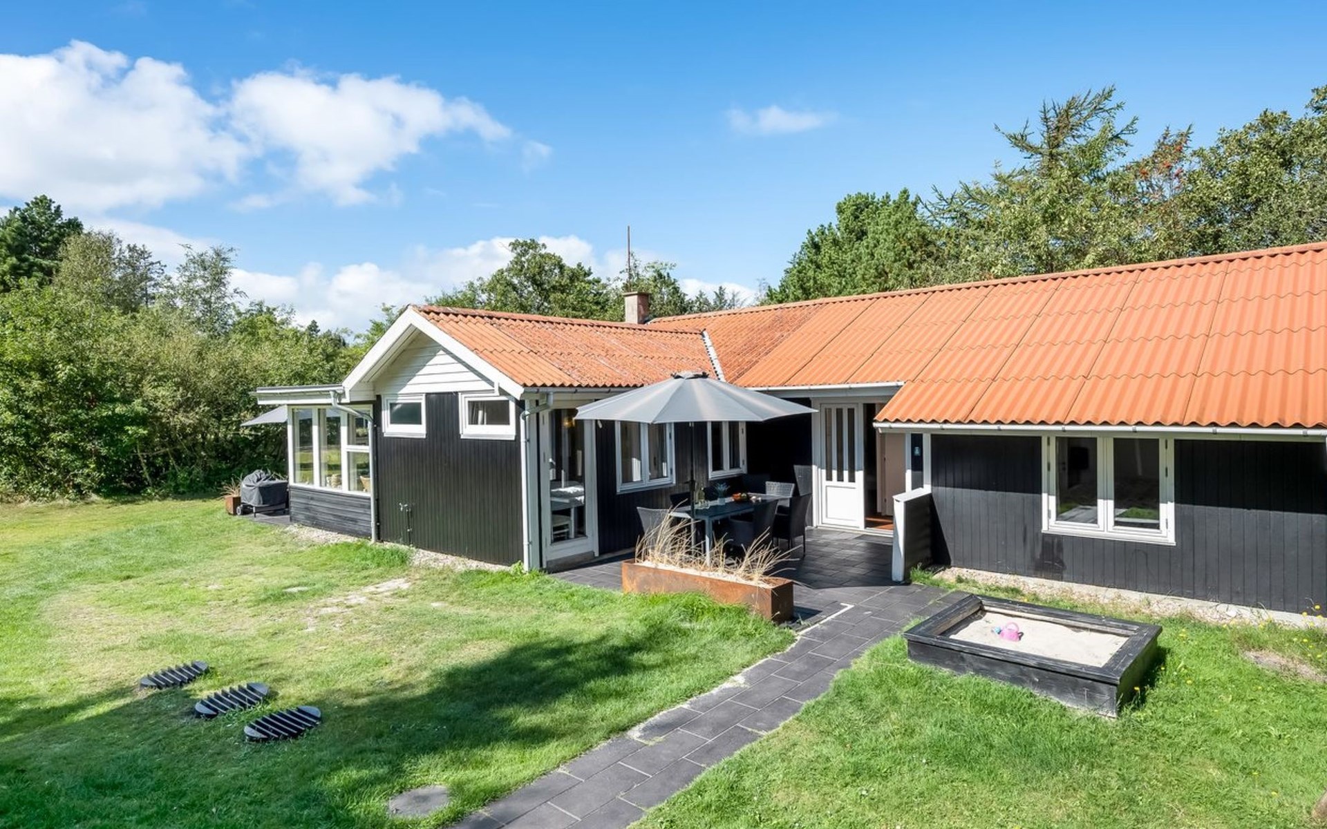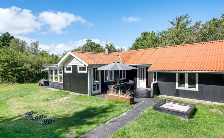 Eengezinswoning, bouwjaar 1972. 1 km van zee. Voor alleengebruik: wild terrein 2.000 m2. Terras (38 m2), kinderspeelplaats (schommel). In het huis: sauna, wasmachine, droger. Parkeerplaats bij het huis. Levensmiddelenwinkel 600 m.