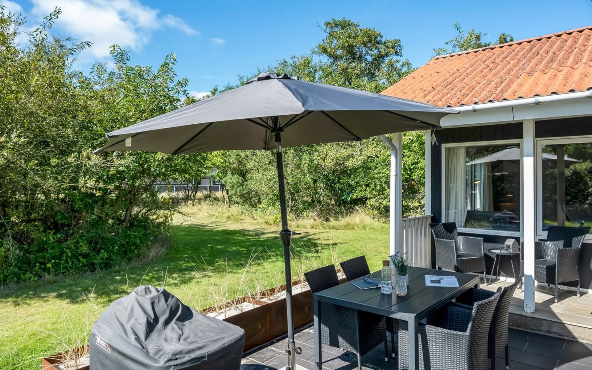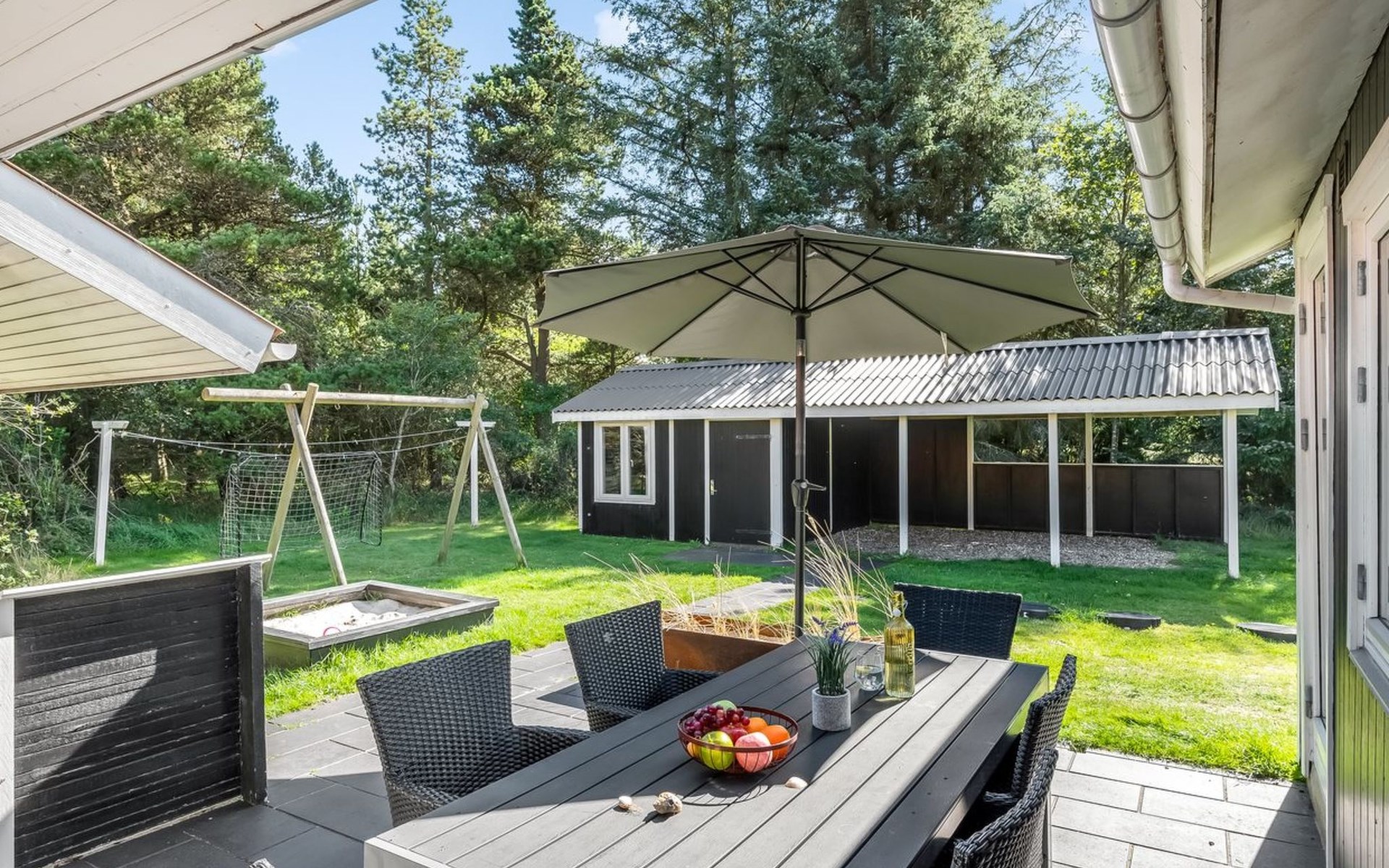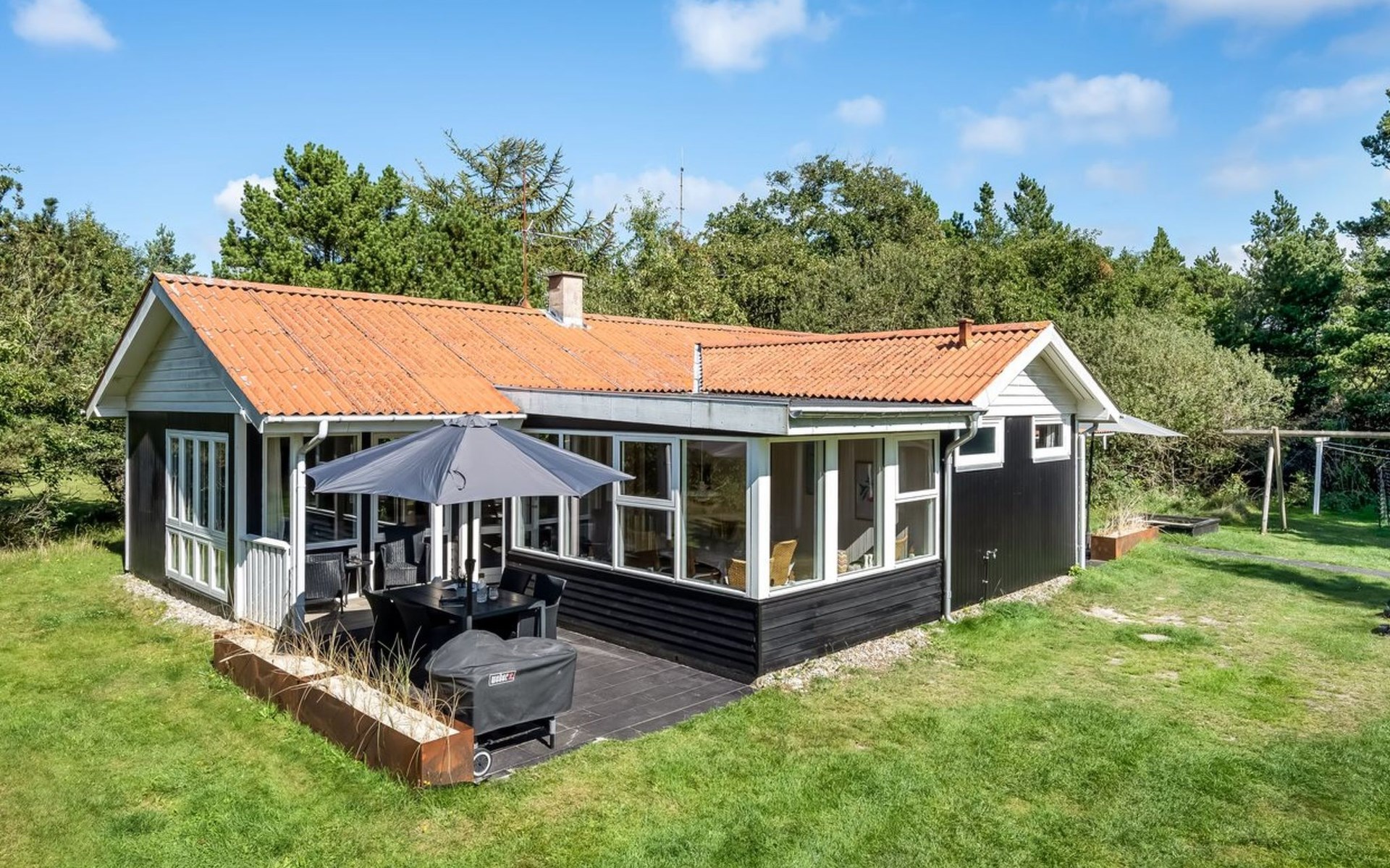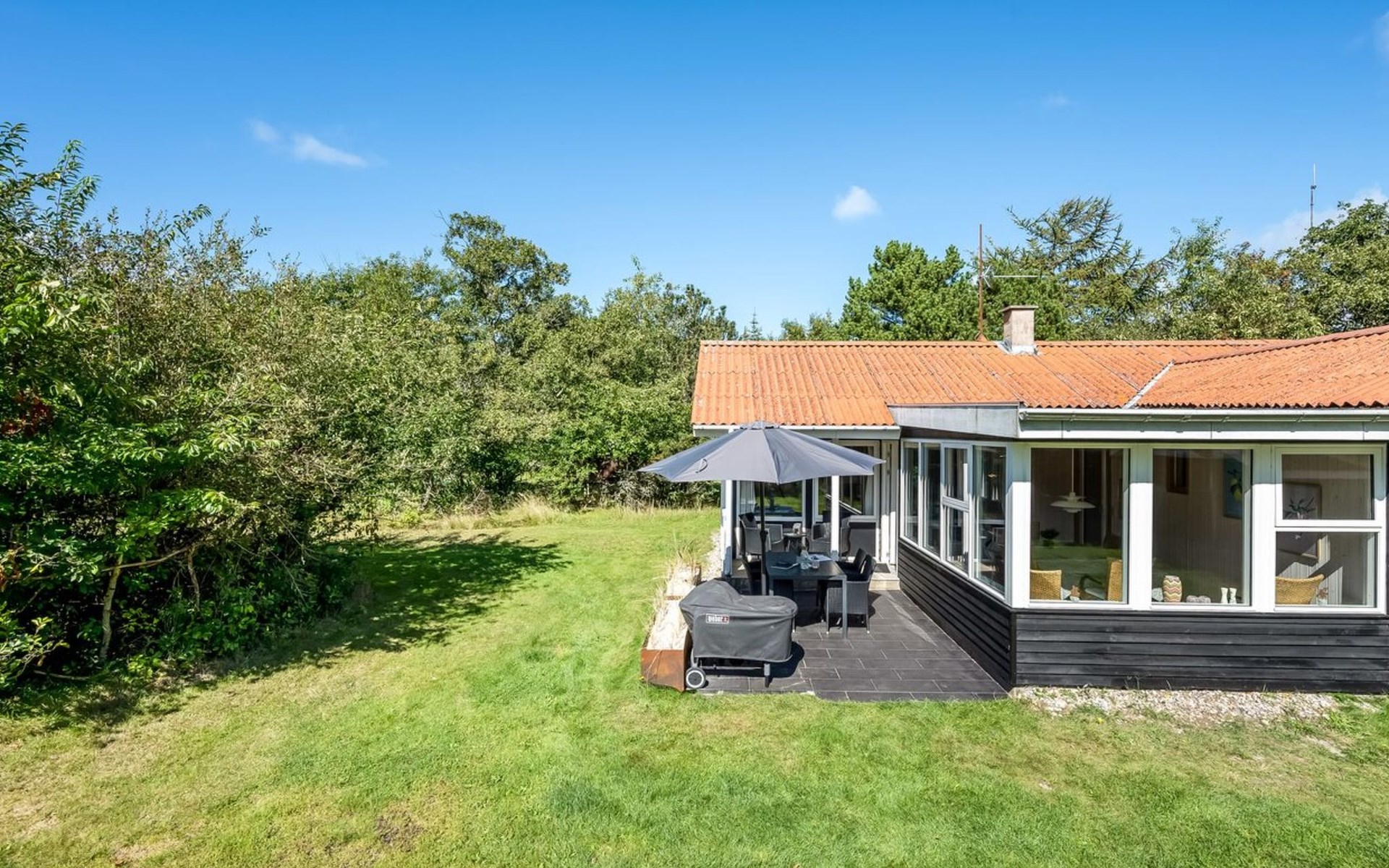 Eengezinswoning, bouwjaar 1972. 1 km van zee. Voor alleengebruik: wild terrein 2.000 m2. Terras (38 m2), kinderspeelplaats (schommel). In het huis: sauna, wasmachine, droger. Parkeerplaats bij het huis. Levensmiddelenwinkel 600 m.