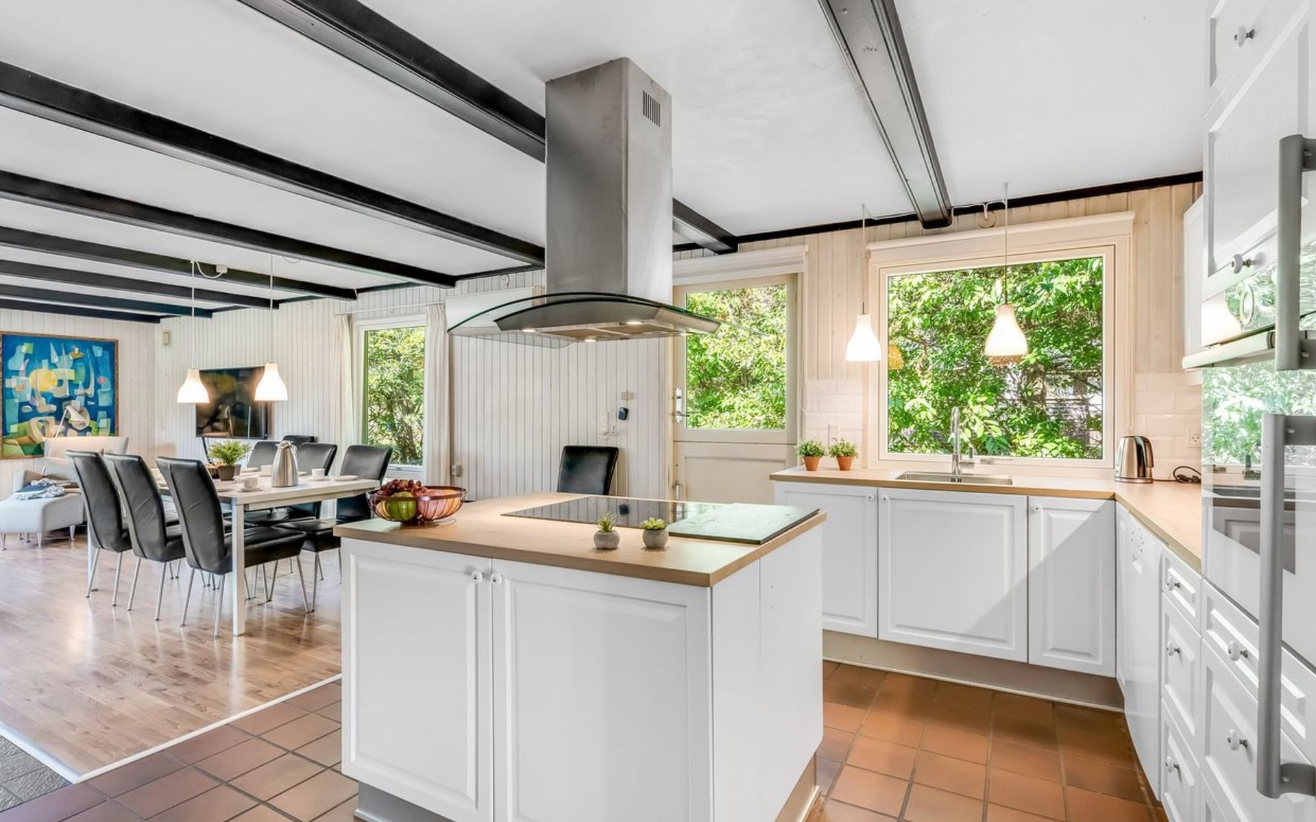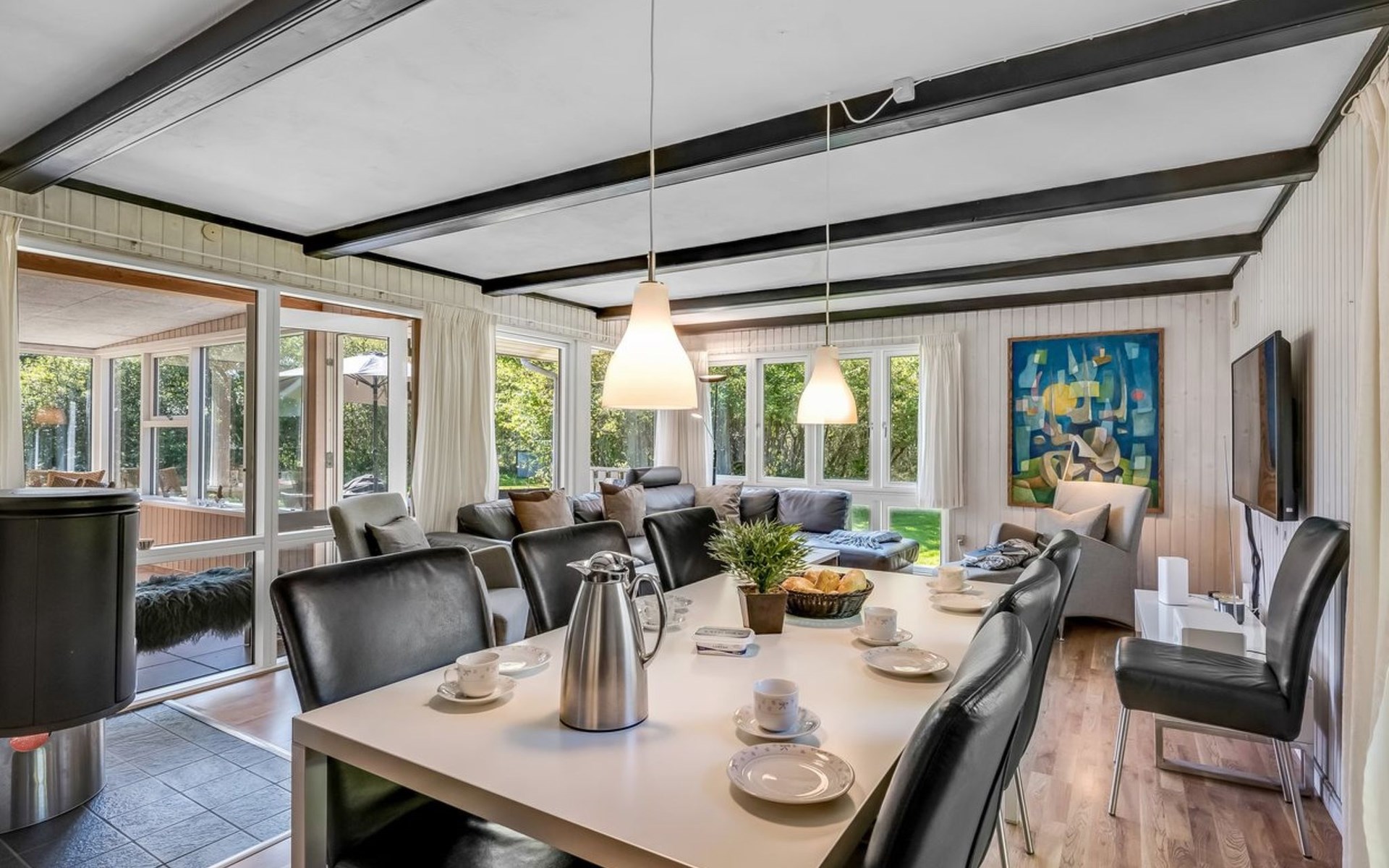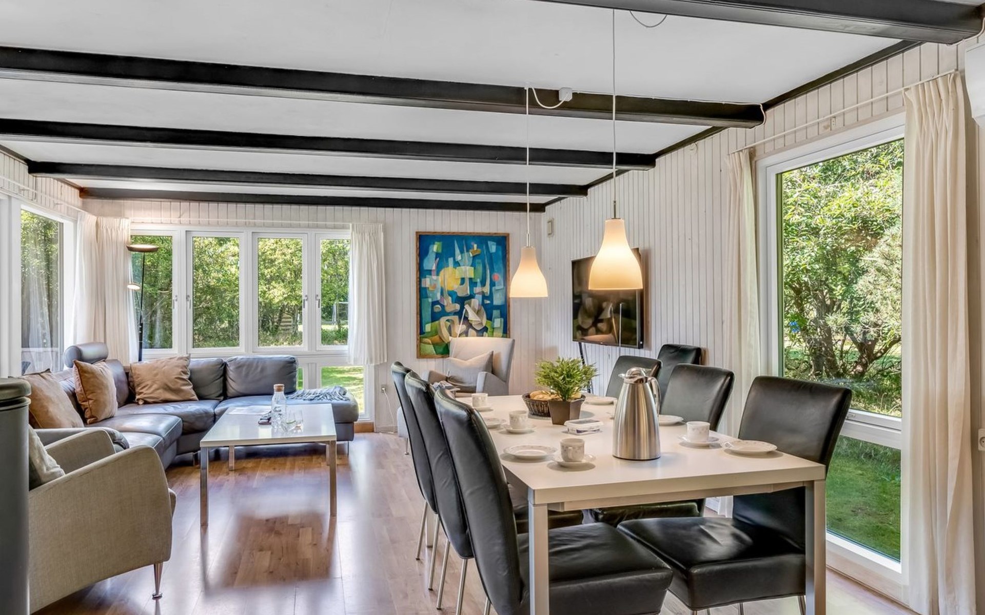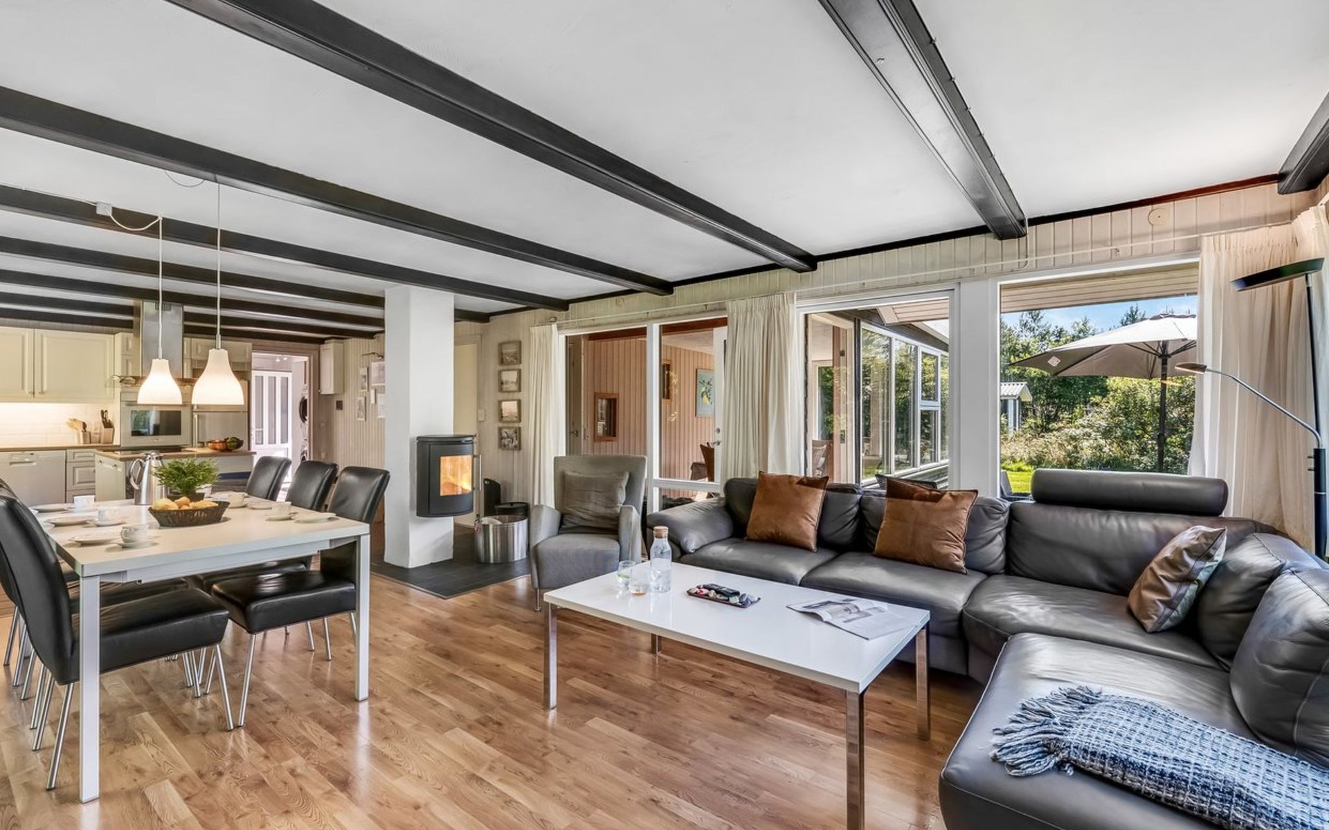 Eengezinswoning, bouwjaar 1972. 1 km van zee. Voor alleengebruik: wild terrein 2.000 m2. Terras (38 m2), kinderspeelplaats (schommel). In het huis: sauna, wasmachine, droger. Parkeerplaats bij het huis. Levensmiddelenwinkel 600 m.