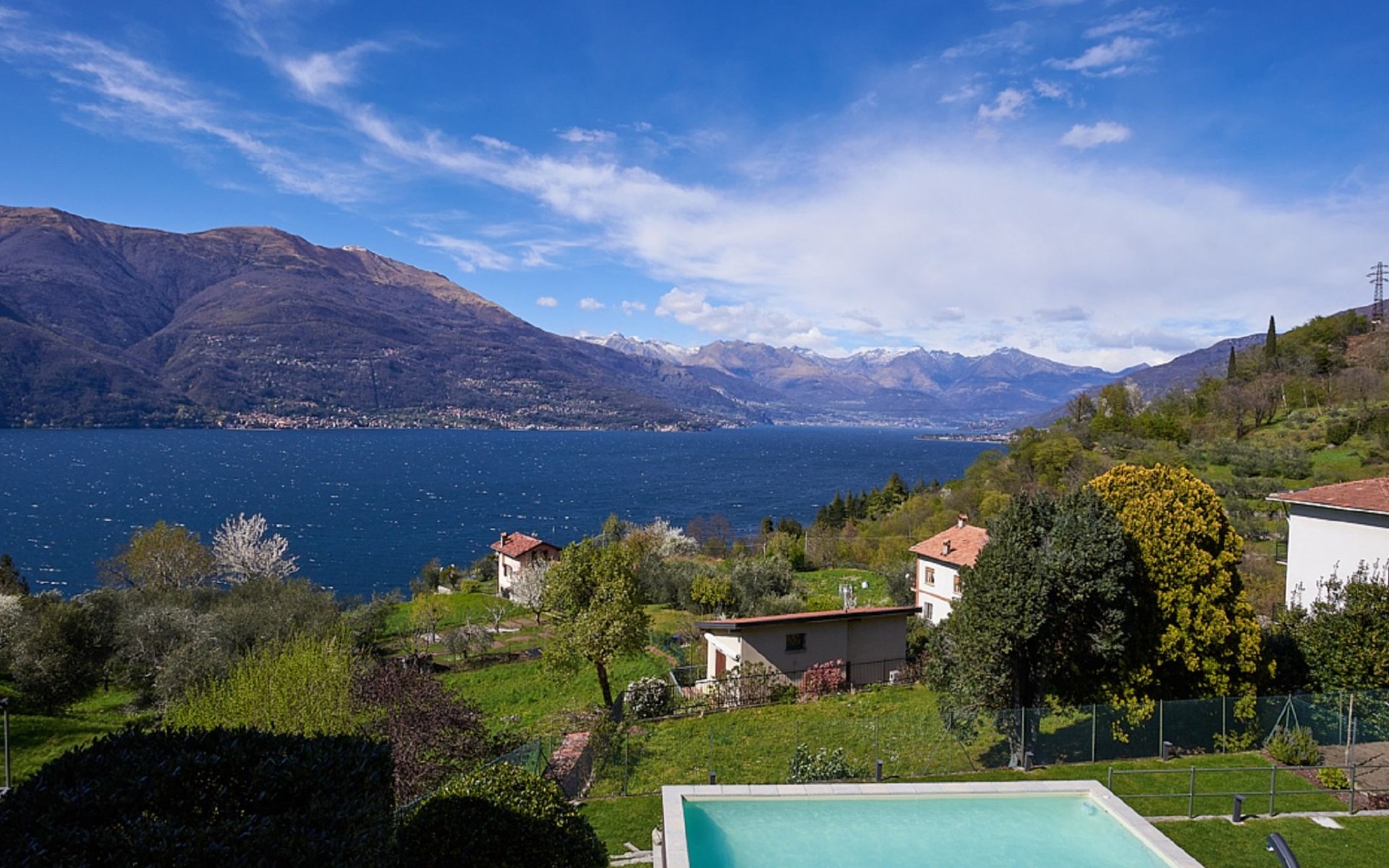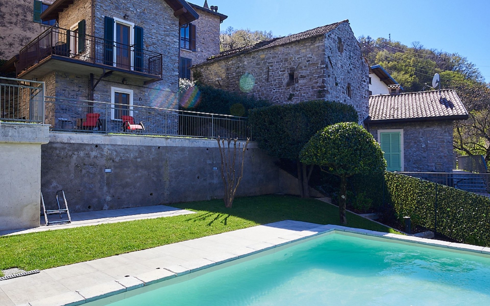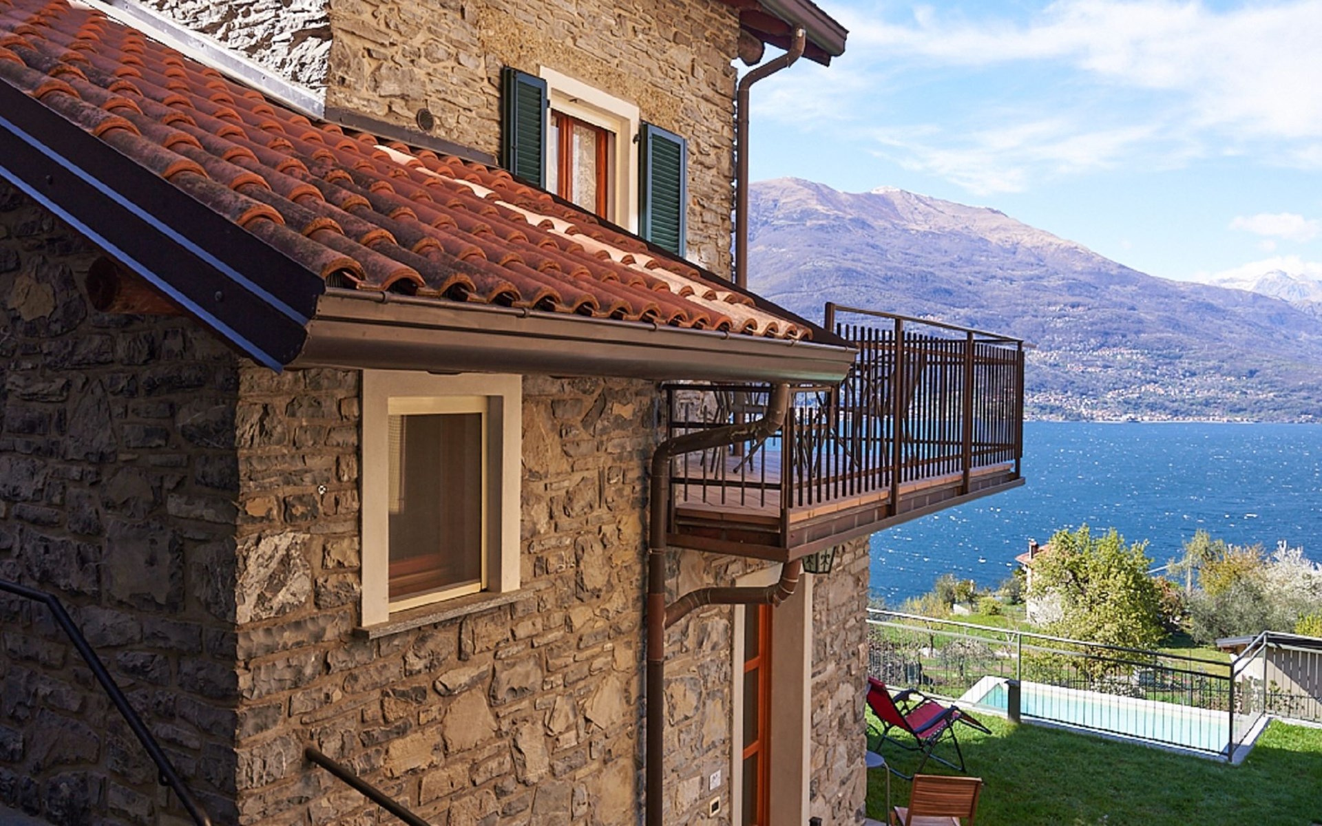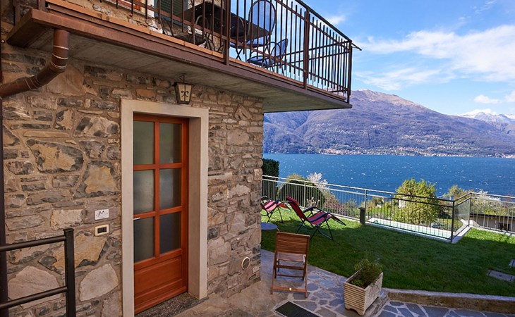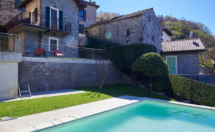 Perledo 3 km van Varenna: Residentie. 2 huizen in de woning. 3 appartementen in de woning. In het gehucht Gittana, 3.5 km van het centrum van Varenna, 2.5 km van het centrum van Perledo, 25 km van het centrum van Lecco, 1.3 km van het meer. Voor medegebruik: tuin 100 m2 met gazon, openluchtzwembad hoekig (4 x 7 m, 100 cm diepte, seizoensgebonden beschikbaarheid: 30.Apr. - 31.Okt.) met zout-elektrolyse. Terras, tuinmeubelen, barbecue. Onderhoud zwembad door de eigenaar/tuinman. In het huis: bergruimte voor fietsen, wasmachine, droger (voor medegebruik). 2.5 km lange smalle toegangsweg (bergweg). 20 m voetpad (15 treden) naar het huis. Openbare parkeerplaatsen 20 m. Winkel 2.5 km, supermarkt 3.5 km, bushalte "Perledo" 2.8 km, treinstation "Varenna" 3.5 km, kiezelstrand "Lido di Gittana" 1.3 km (klein), grasstrand "Bellano" 3.5 km. Golfterrein (18 holes) 12 km, wandelroutes 100 m vanaf het huis. Wandelgebied Sentiero del Viandante.