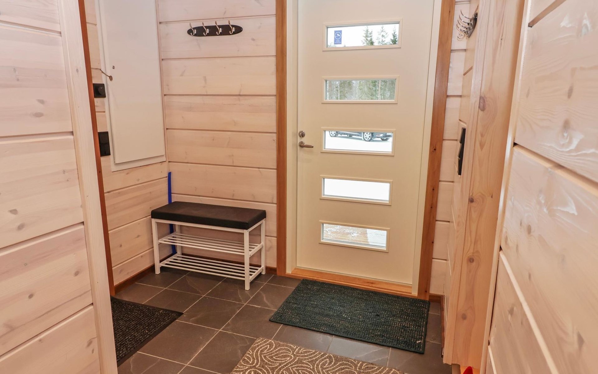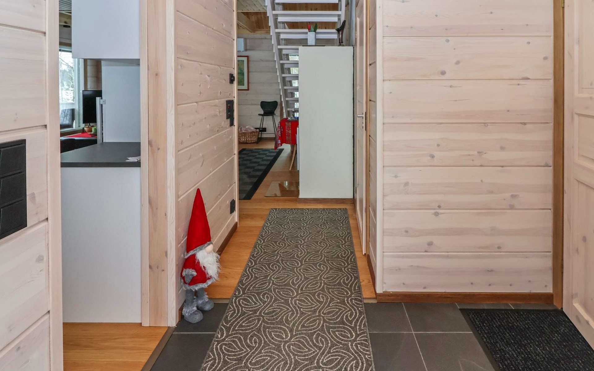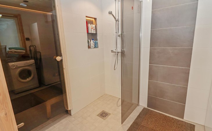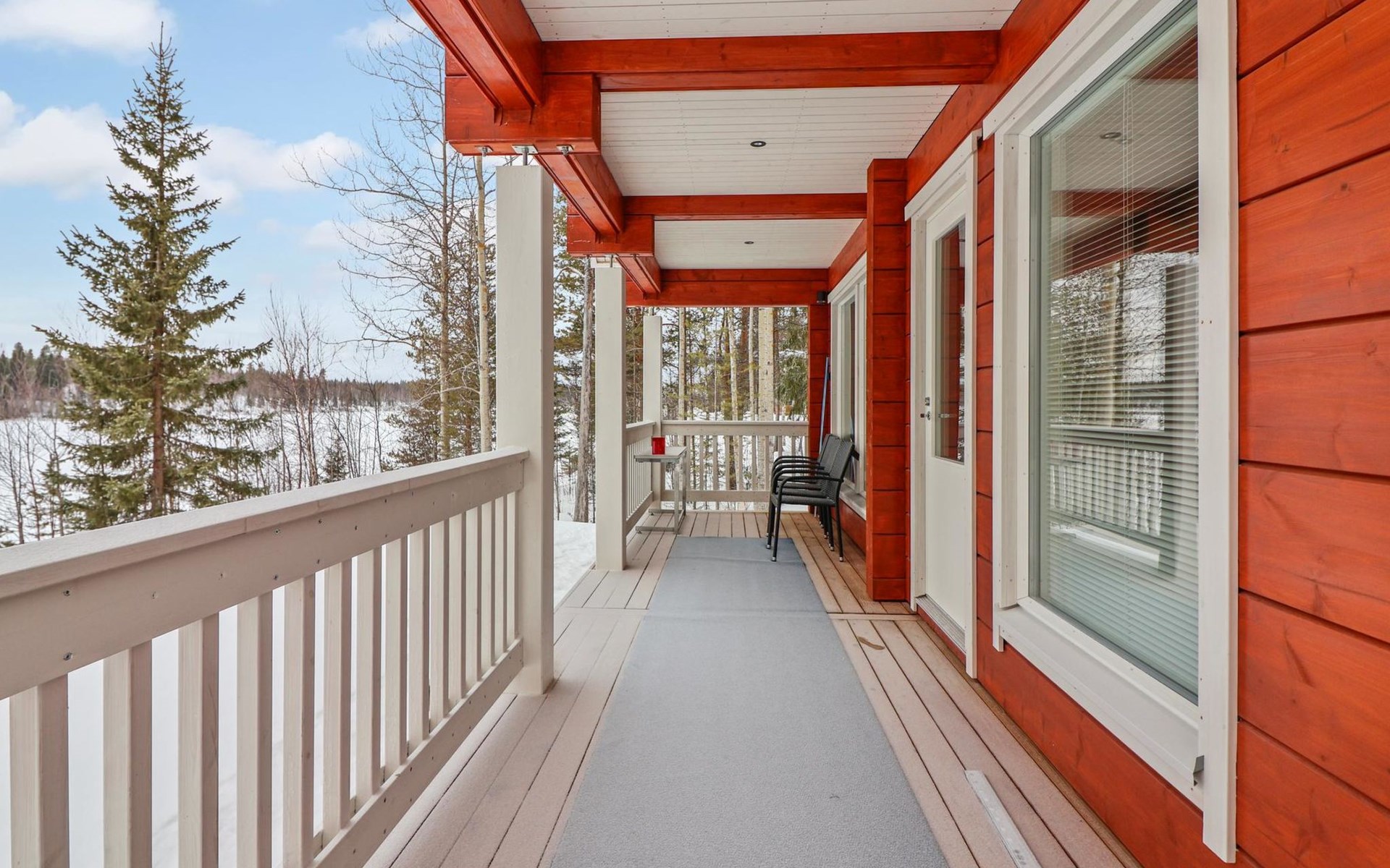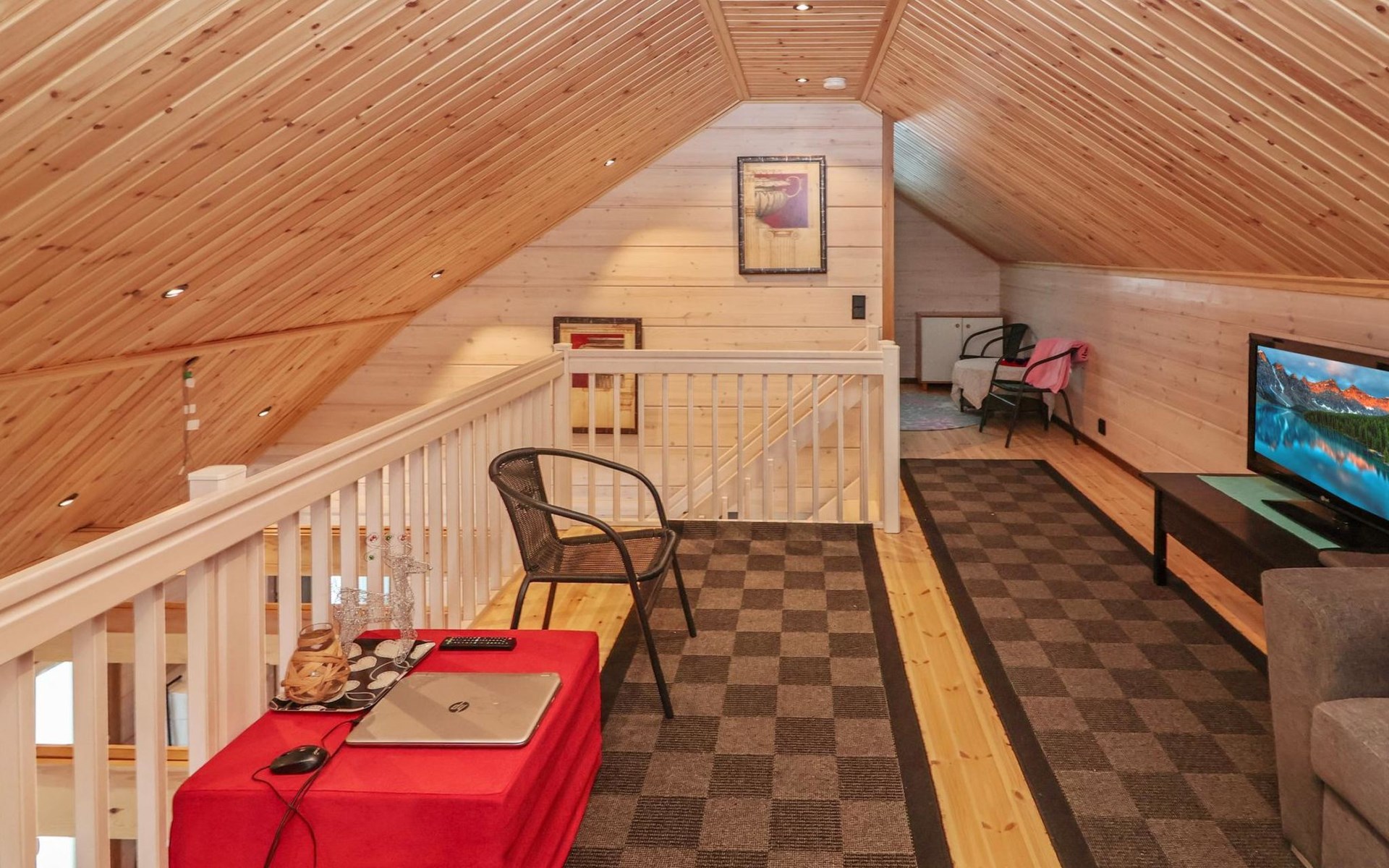 The villa features spacious and cozy accommodations, including two large bedrooms — one downstairs and one upstairs — both furnished with 160 cm wide double beds. Additionally, the loft has a comfortable sofa bed for two. A fully equipped kitchen, spacious living area with a fireplace, a bathroom, and an electric sauna complete the amenities. Large windows and the terrace provide stunning views of the River Tornionjoki.