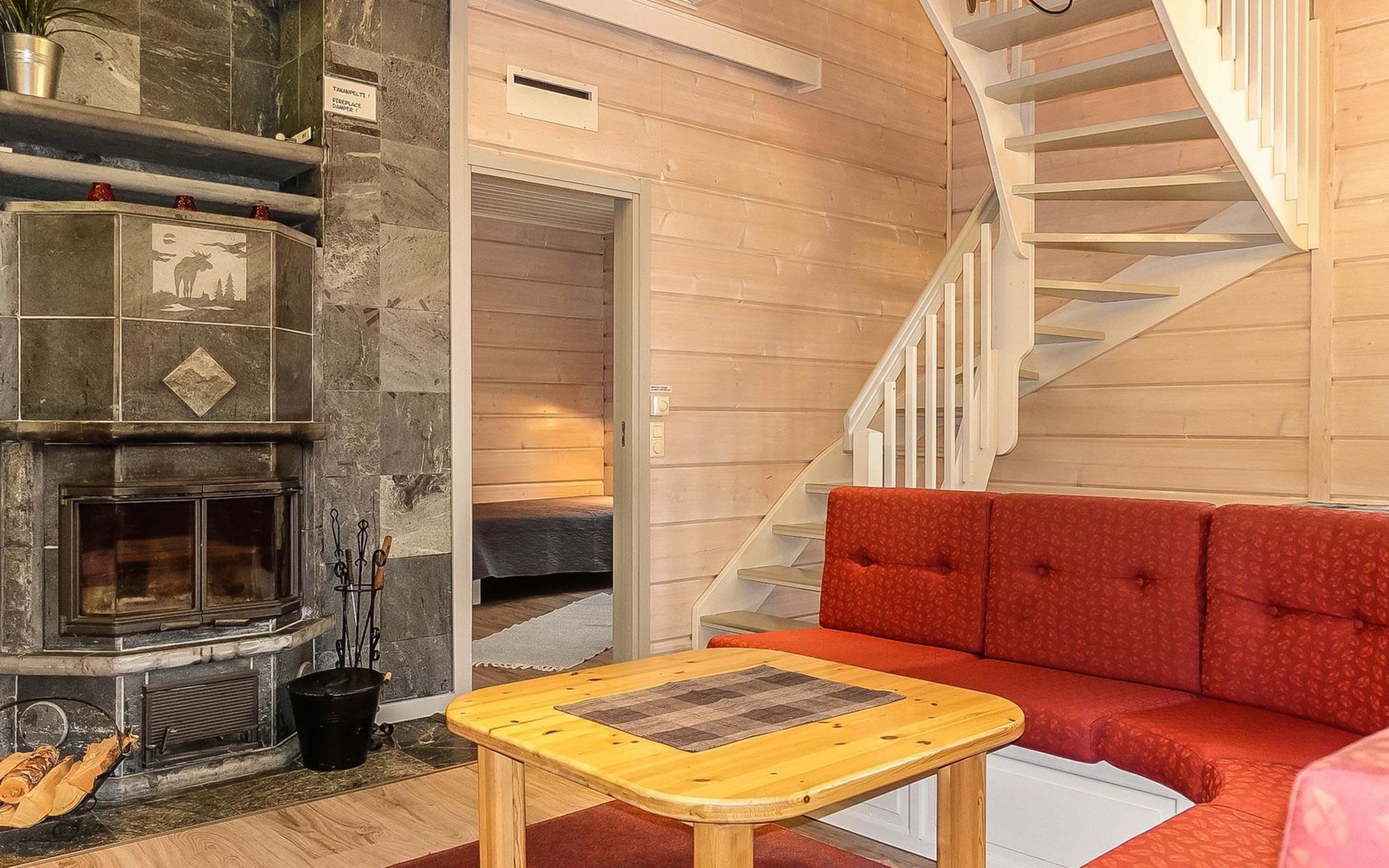 Ski storage in the yard. Downstairs of 15072 Porukka 2 -cottage there is a ski maintenance room which is in shared use with both two cottages. 14 extra beds of the cottage are available when needed (max 28 persons).