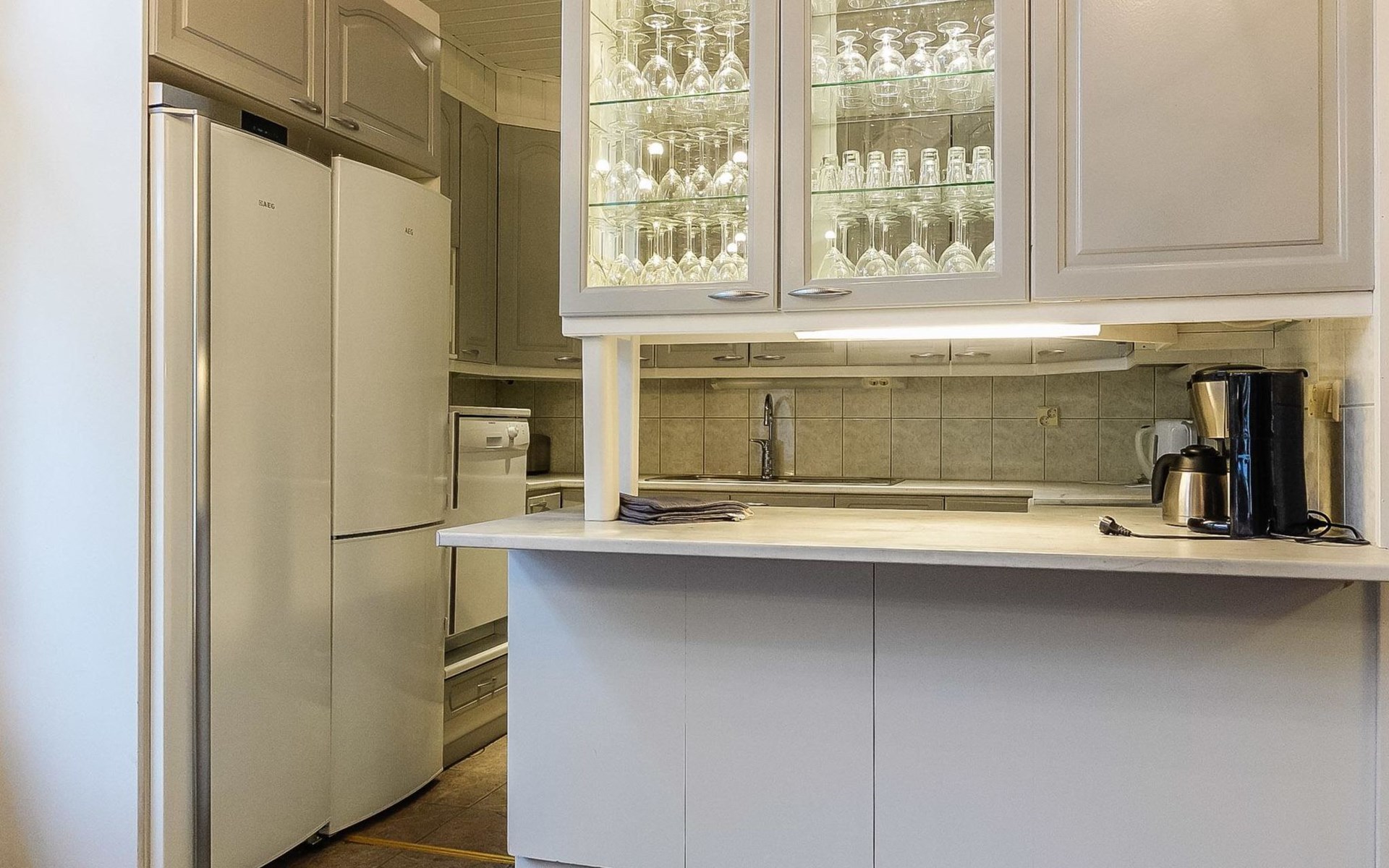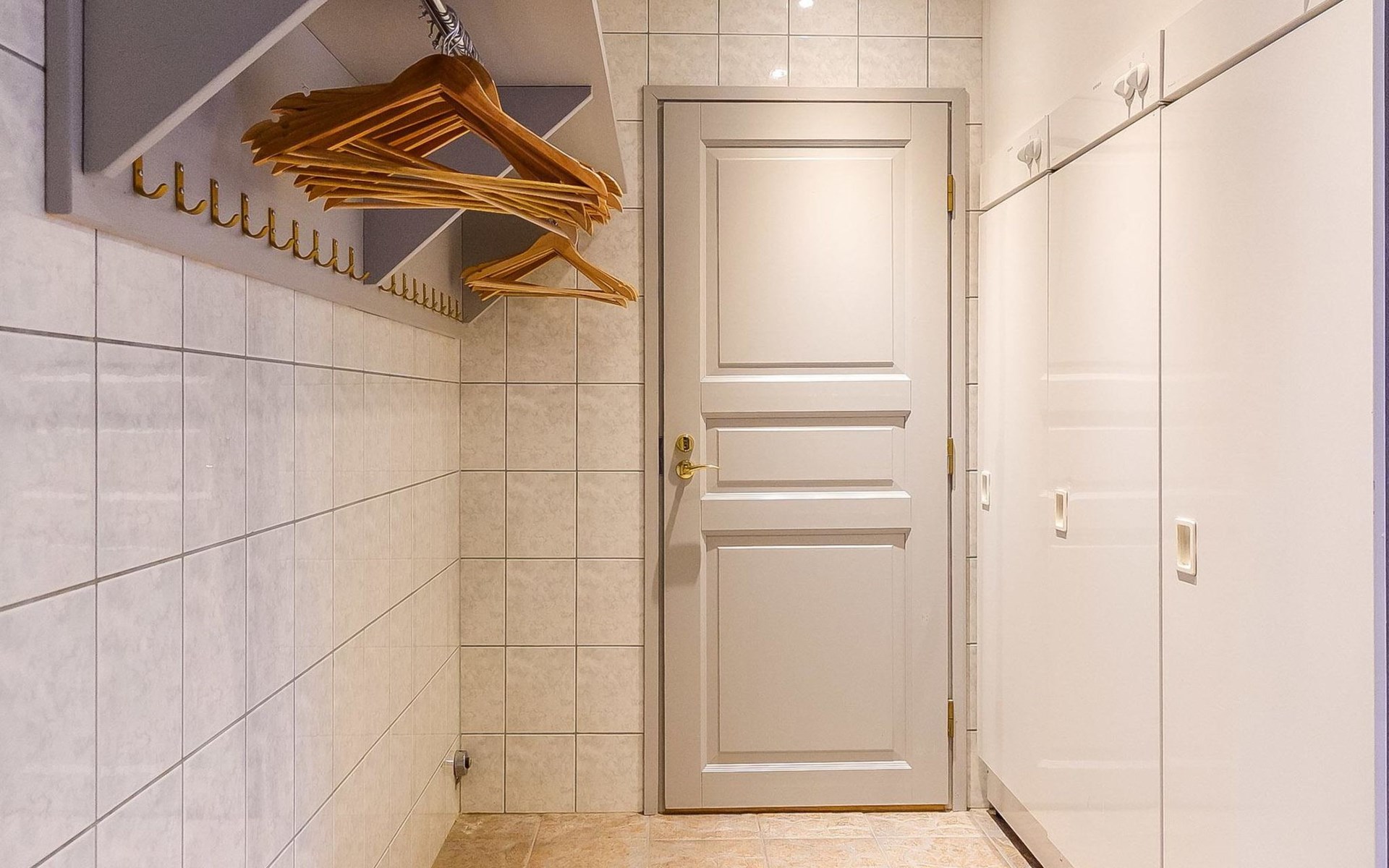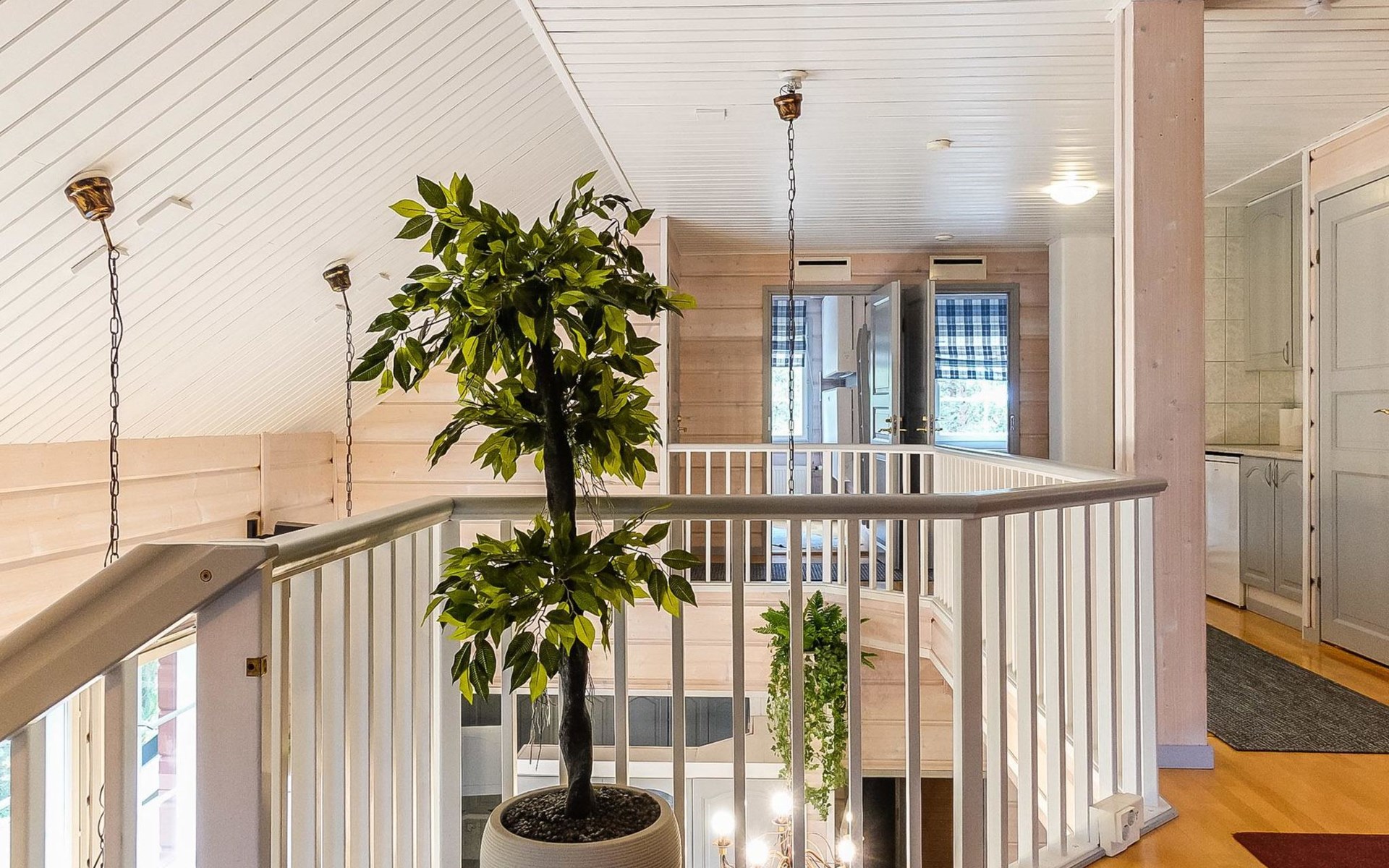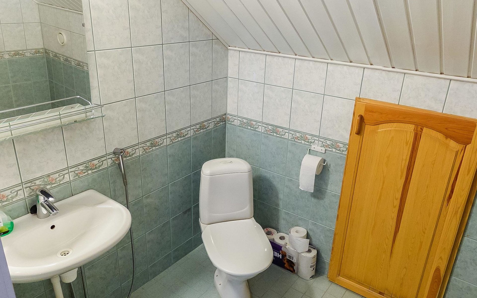 On the ground floor: large living area, open kitchen, 3 bedrooms, double bed in each, 2 foldable extra beds (from wall) in every bedroom. Two of bedrooms have common WC area with shower (access from both bedrooms). Large sauna, washroom (3 showers), dressing room and 2 toilets with shower.