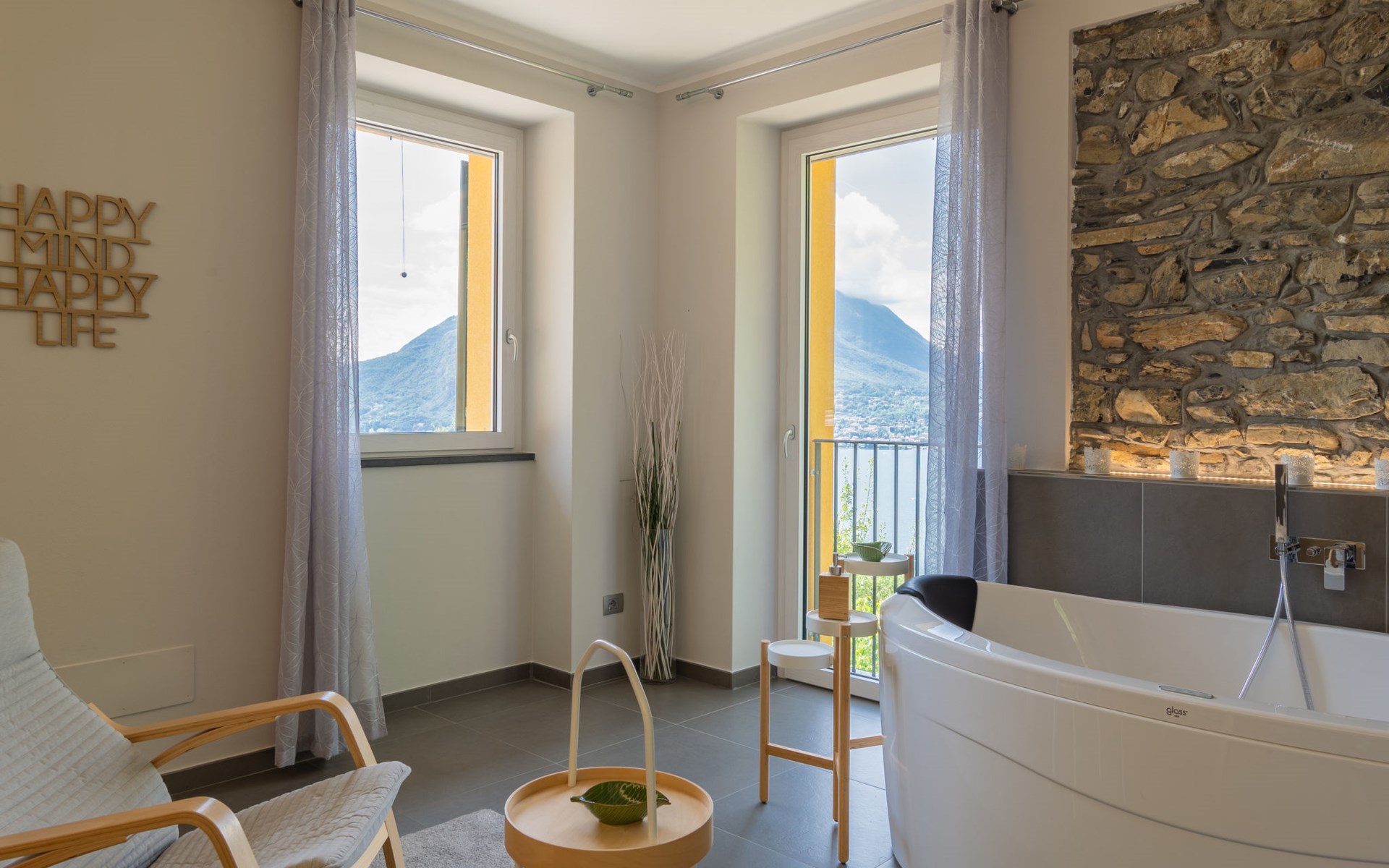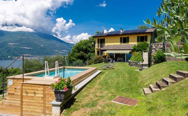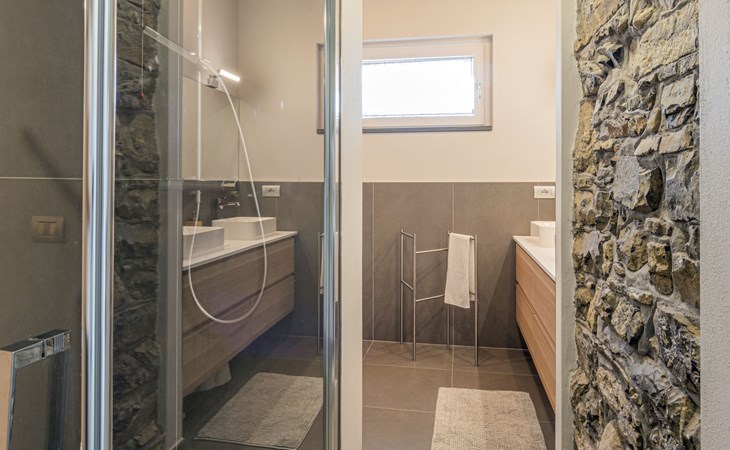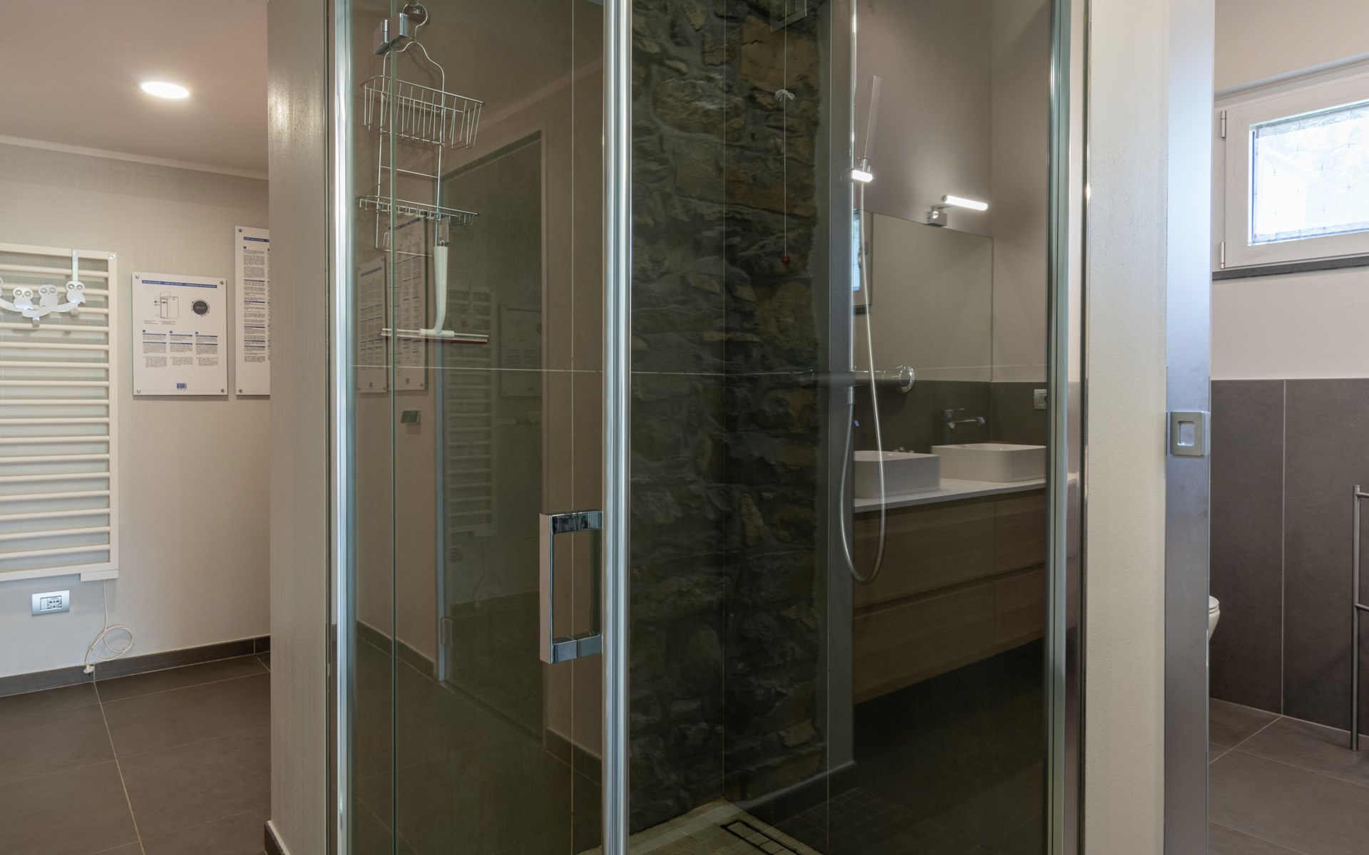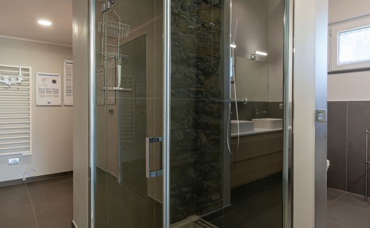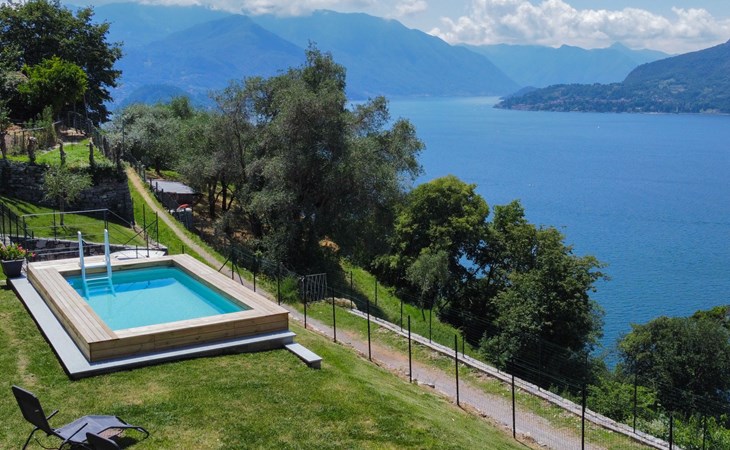Comfortabel huis "Lacum Lux Resort", 300 m boven zeeniveau, bouwjaar 2018. Boven Varenna, 3.4 km van het centrum van Varenna, 24 km van het centrum van Lecco, 55 km van het centrum van Como, geïsoleerde, verhoogde ligging tegen een helling, direct aan de bosrand, 1 km van het meer, te midden van groen. Voor alleengebruik: terrein 300 m2, tuin op verschillende niveaus (omheind), weide, openluchtzwembad hoekig (6 x 3 m, seizoensgebonden beschikbaarheid: 01.Mei. - 01.Okt.). Patio, tuinmeubelen. In het huis: sauna, stoombad. 1.5 km lange rommelige, smalle toegangsweg (150 m onverharde weg). 150 m voetpad naar het huis. Openbare parkeerplaatsen 150 m in de straat. Winkel 3.4 km, supermarkt 3 km, bushalte 2.8 km, kiezelstrand "Riva Gittana" 1 km, stenenstrand "Bau Bau Beach" 4.5 km. Jachthaven 3.4 km. Eerste verdieping is afgesloten en niet bewoond.