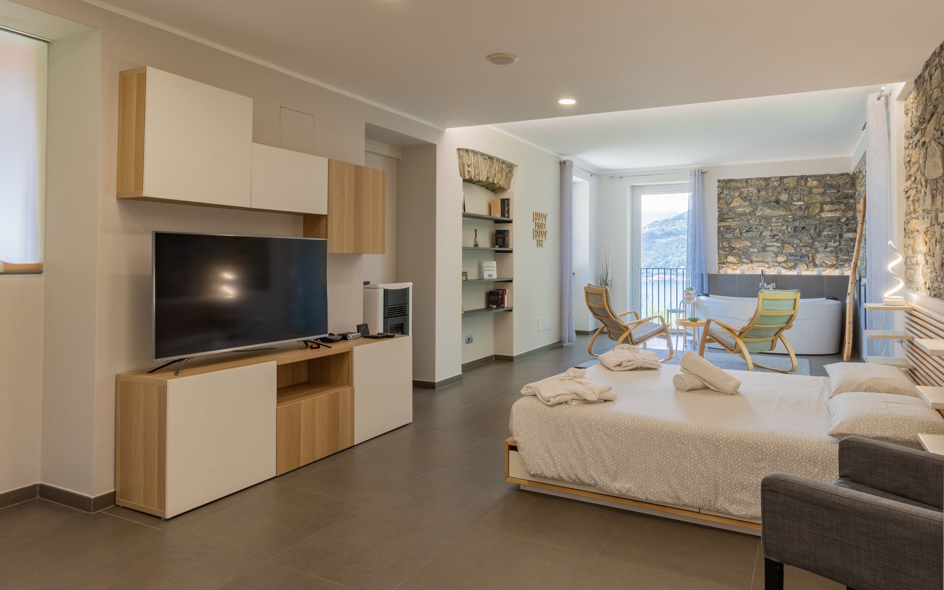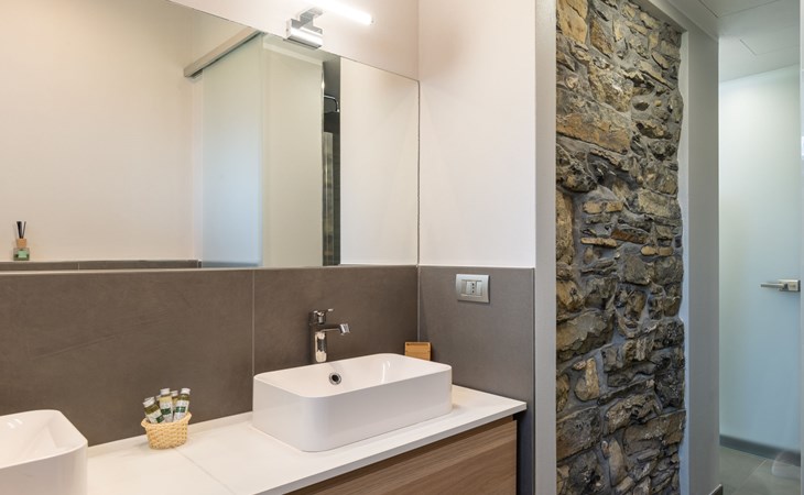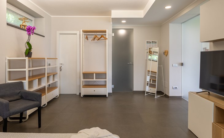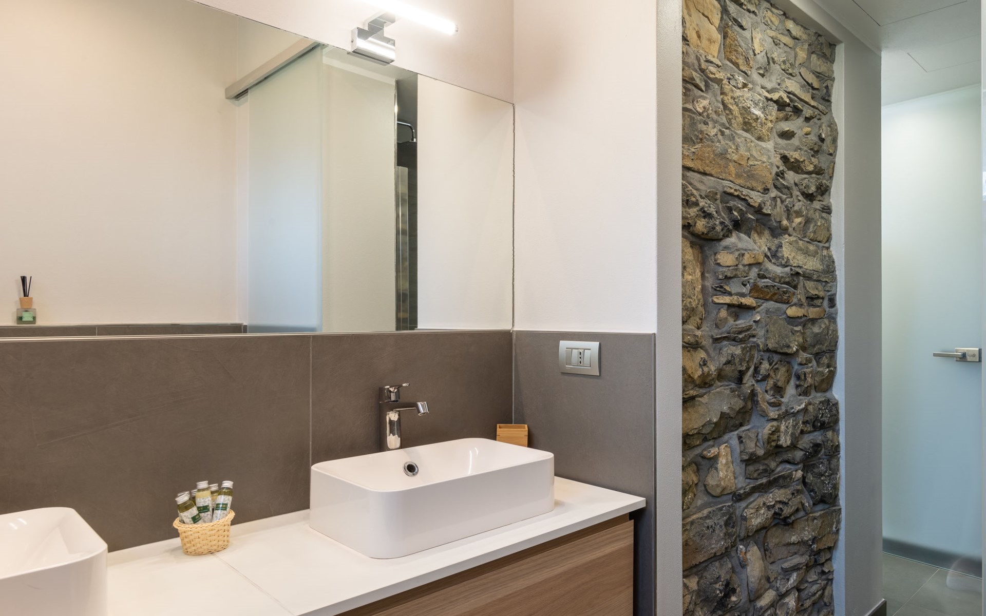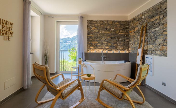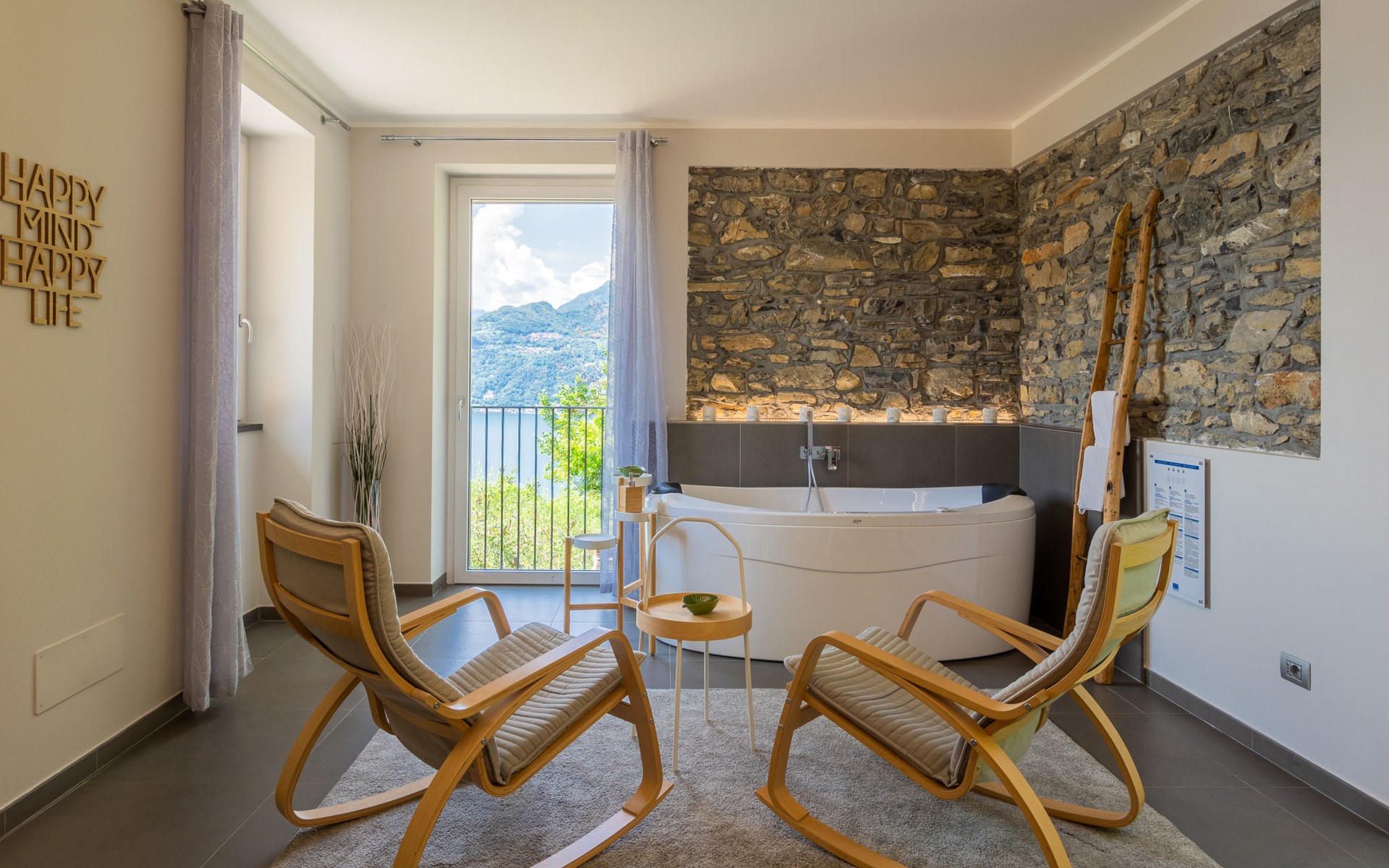 Comfortabel huis "Lacum Lux Resort", 300 m boven zeeniveau, bouwjaar 2018. Boven Varenna, 3.4 km van het centrum van Varenna, 24 km van het centrum van Lecco, 55 km van het centrum van Como, geïsoleerde, verhoogde ligging tegen een helling, direct aan de bosrand, 1 km van het meer, te midden van groen. Voor alleengebruik: terrein 300 m2, tuin op verschillende niveaus (omheind), weide, openluchtzwembad hoekig (6 x 3 m, seizoensgebonden beschikbaarheid: 01.Mei. - 01.Okt.). Patio, tuinmeubelen. In het huis: sauna, stoombad. 1.5 km lange rommelige, smalle toegangsweg (150 m onverharde weg). 150 m voetpad naar het huis. Openbare parkeerplaatsen 150 m in de straat. Winkel 3.4 km, supermarkt 3 km, bushalte 2.8 km, kiezelstrand "Riva Gittana" 1 km, stenenstrand "Bau Bau Beach" 4.5 km. Jachthaven 3.4 km. Eerste verdieping is afgesloten en niet bewoond.