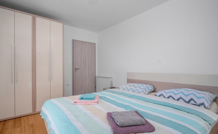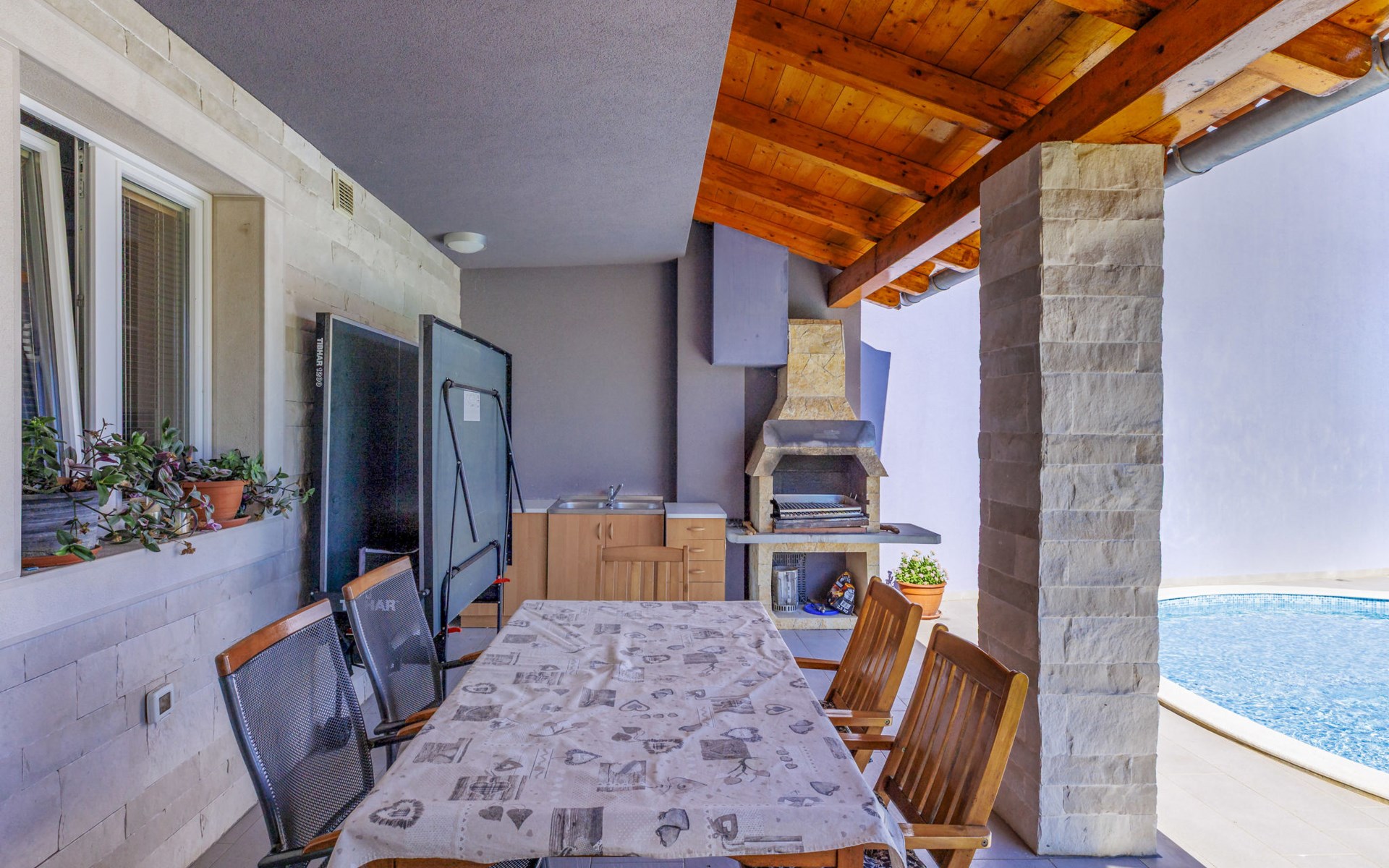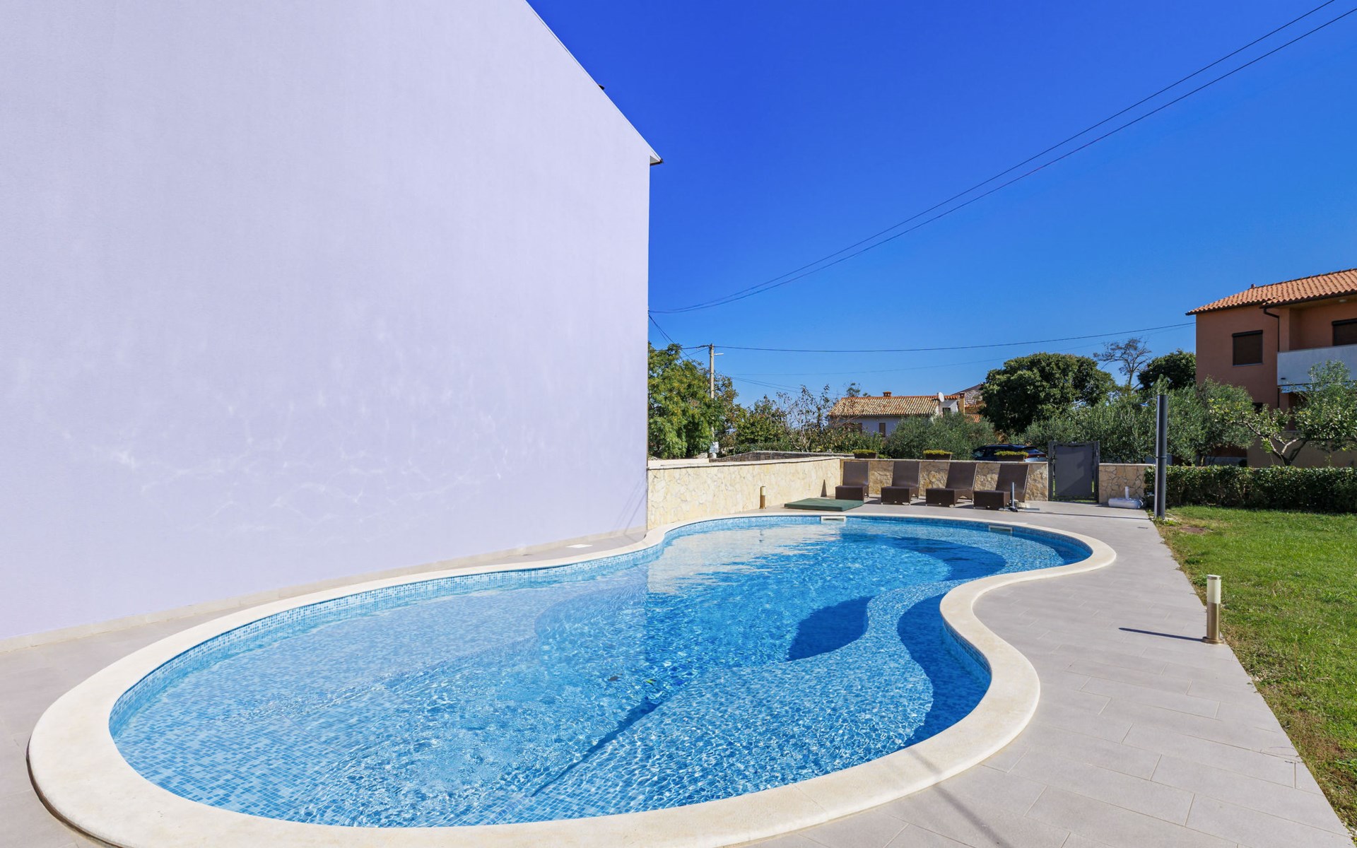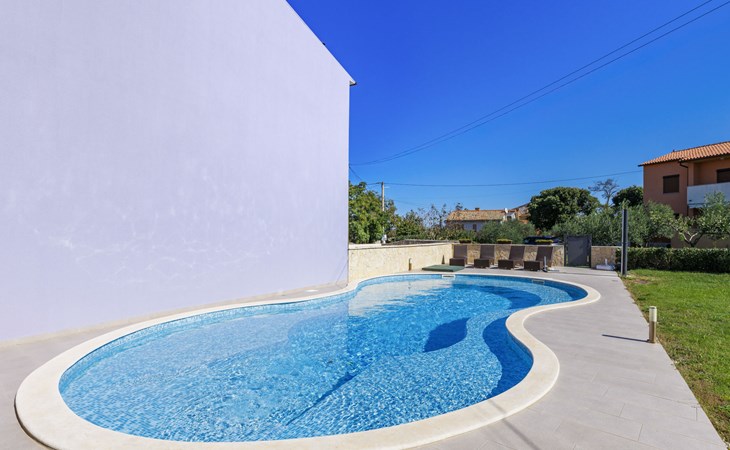 Krnica 22 km van Pula: Mooi rijtjeshuis "Mario 2", van 2 verdiepingen. In het gehucht Bratulići, 5 km van het centrum van Krnica, rustige, zonnige ligging, 7 km van zee. Voor alleengebruik: terrein 200 m2 (omheind), openluchtzwembad (50 m2, 140 cm diepte, seizoensgebonden beschikbaarheid: 02.Mei. - 26.Sep.) met trap. Onregelmatig zwembad. Tuinmeubelen, barbecue. In het huis: internetaansluiting, centrale verwarming, wasmachine. Overdekte parkeerplaats (voor 2 auto's) bij het huis op het terrein. Winkel 2 km, restaurant 100 m, bushalte 1.3 km, kiezelstrand 10 km, rotsstrand 7 km. Tennis 10 km, manege 3 km.