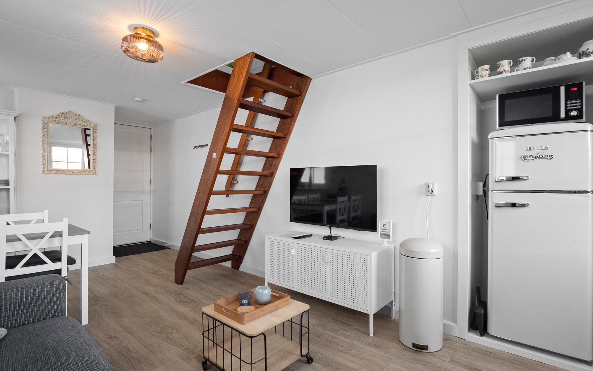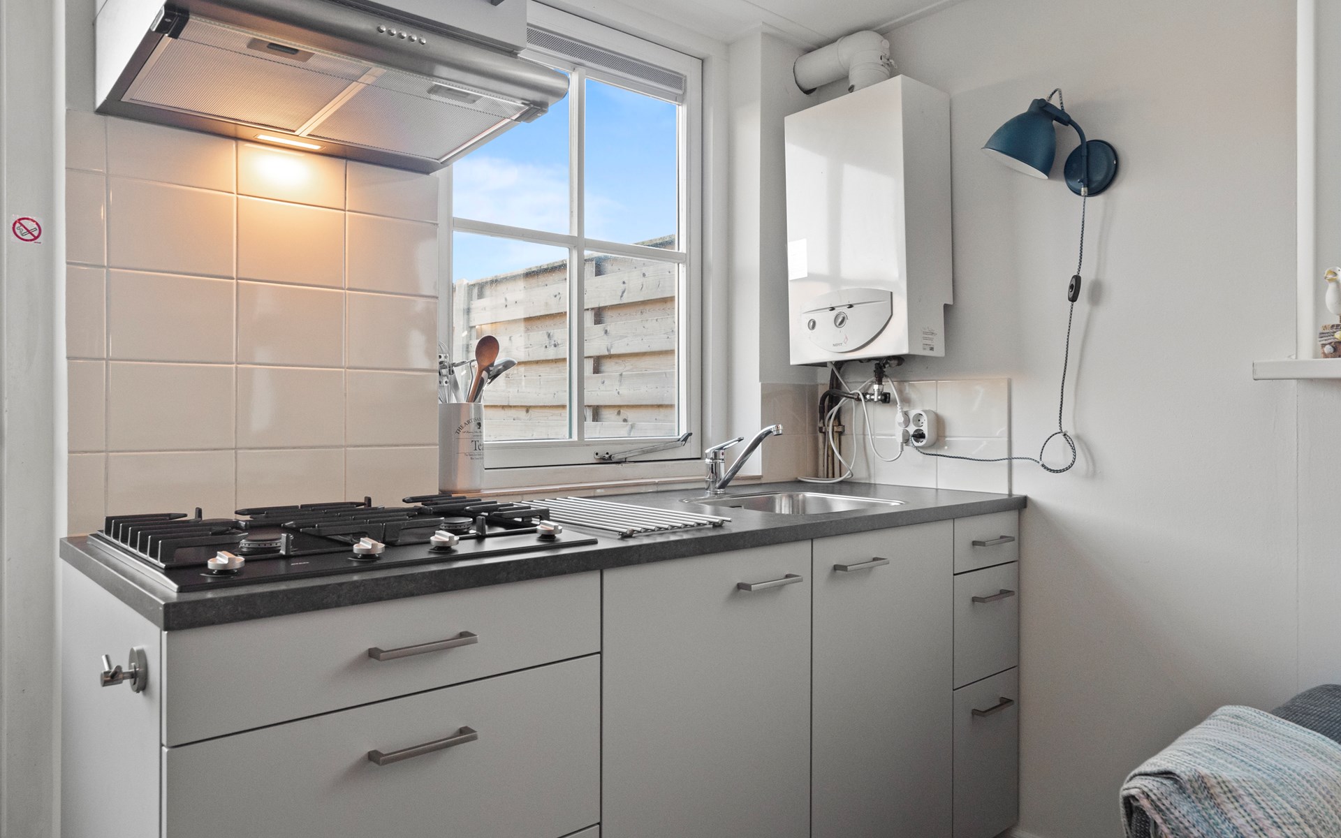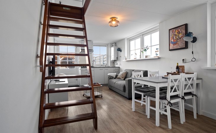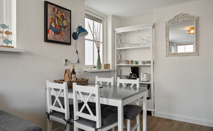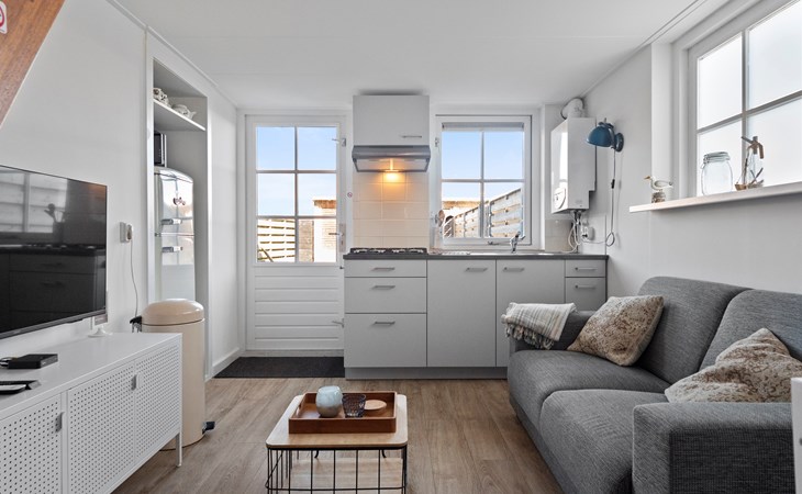 Het vakantiehuis beschikt over een frisse en huiselijke woonkamer met open keuken. Hier kunt u ontspannen na een dag aan zee of samen koken met uitzicht op de duinen.