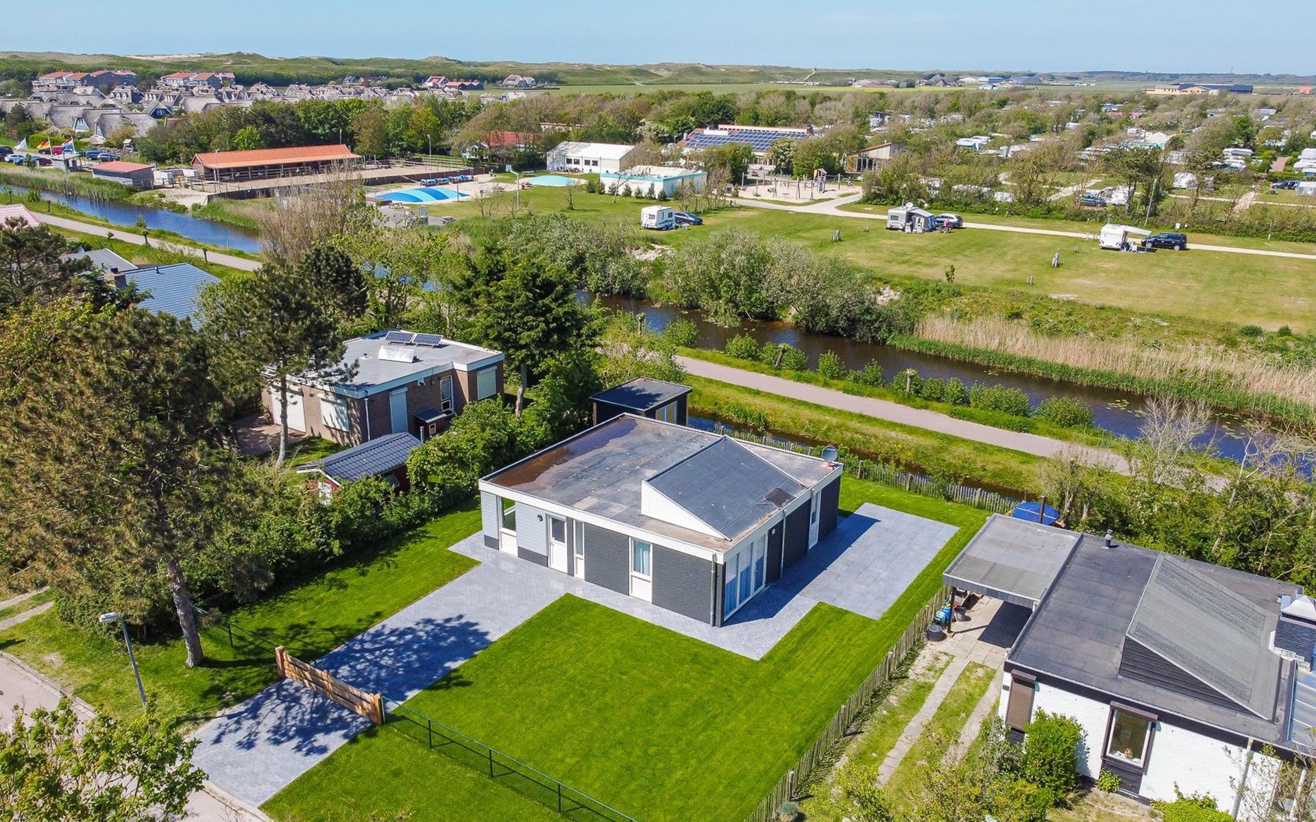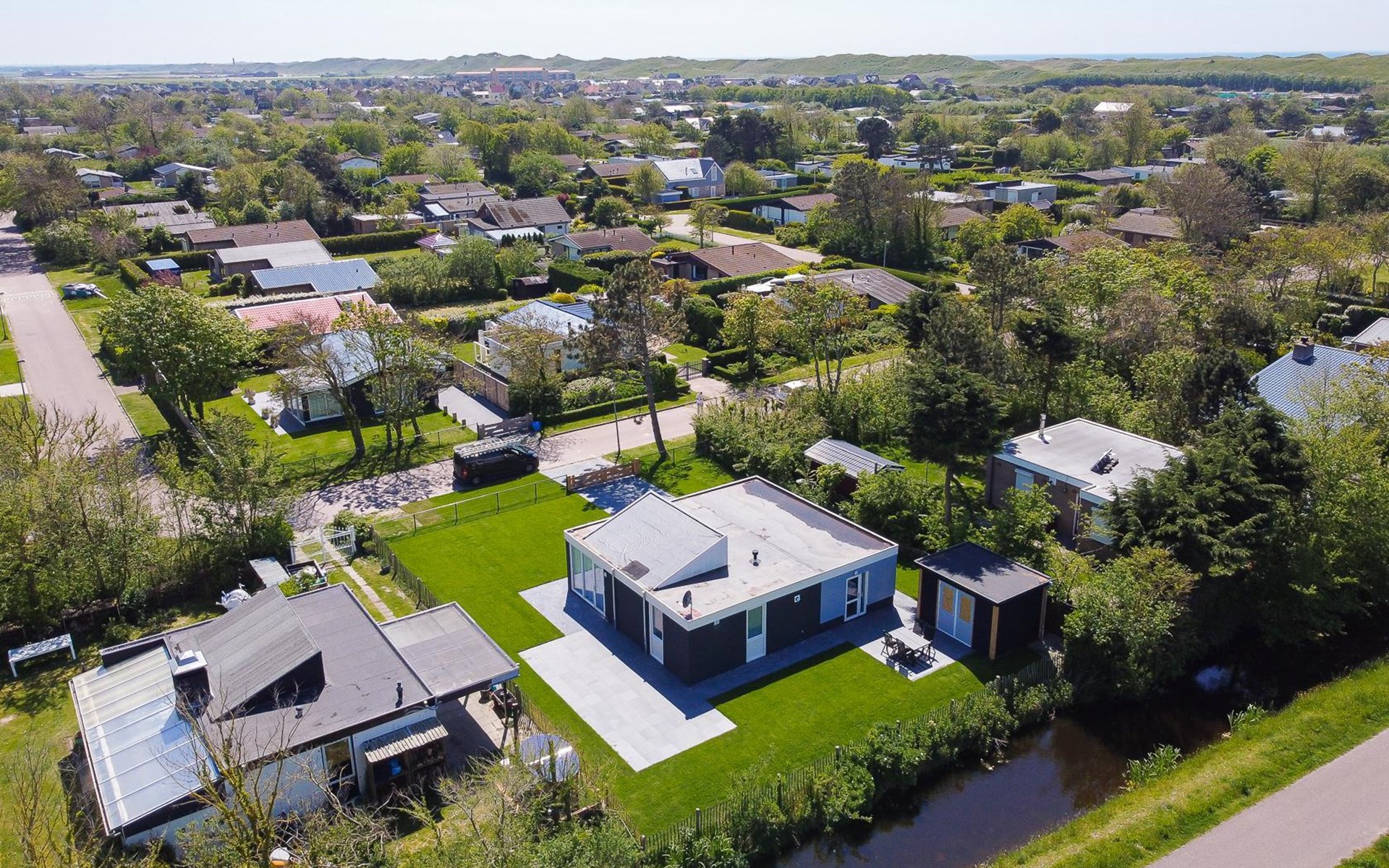 Het vakantiehuis ligt in een rustige en groene omgeving, op loopafstand van het strand. Op het park vindt u sport- en speelvelden voor kinderen, en in de directe omgeving zijn gezellige strandpaviljoens die het hele jaar geopend zijn. Met de duinen en bloemenvelden binnen handbereik is dit de ideale plek voor een rustige vakantiewoning aan zee Noord-Holland.