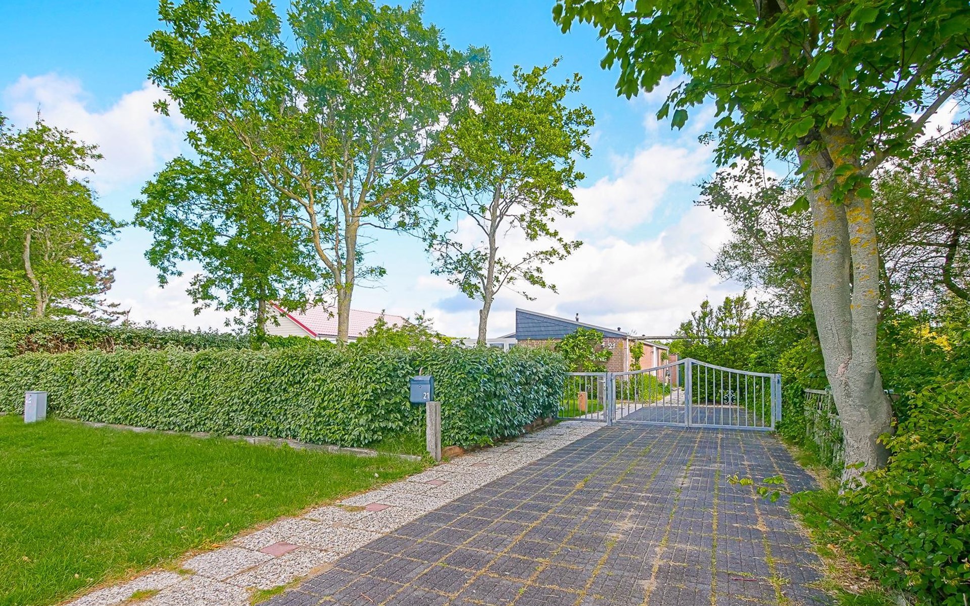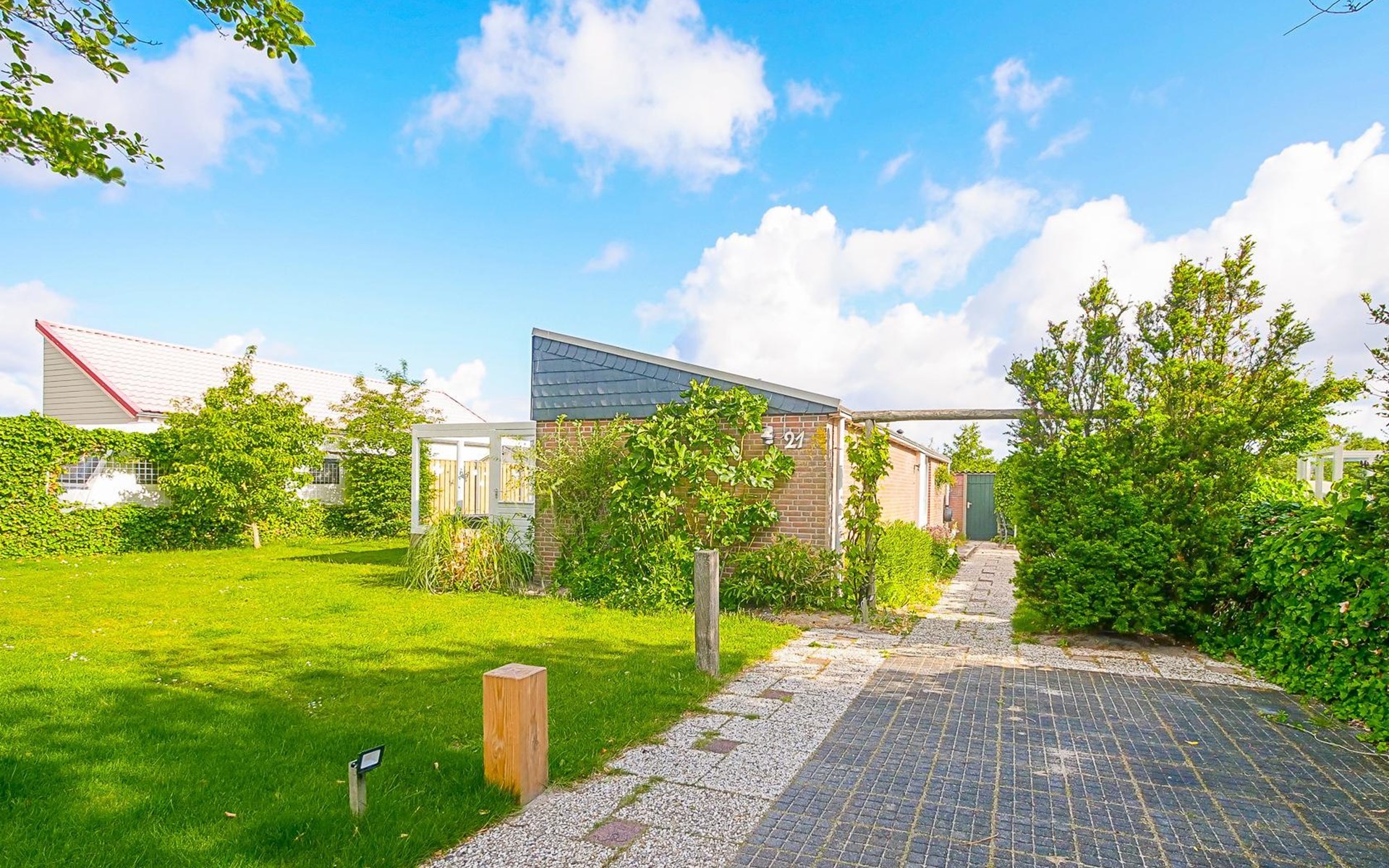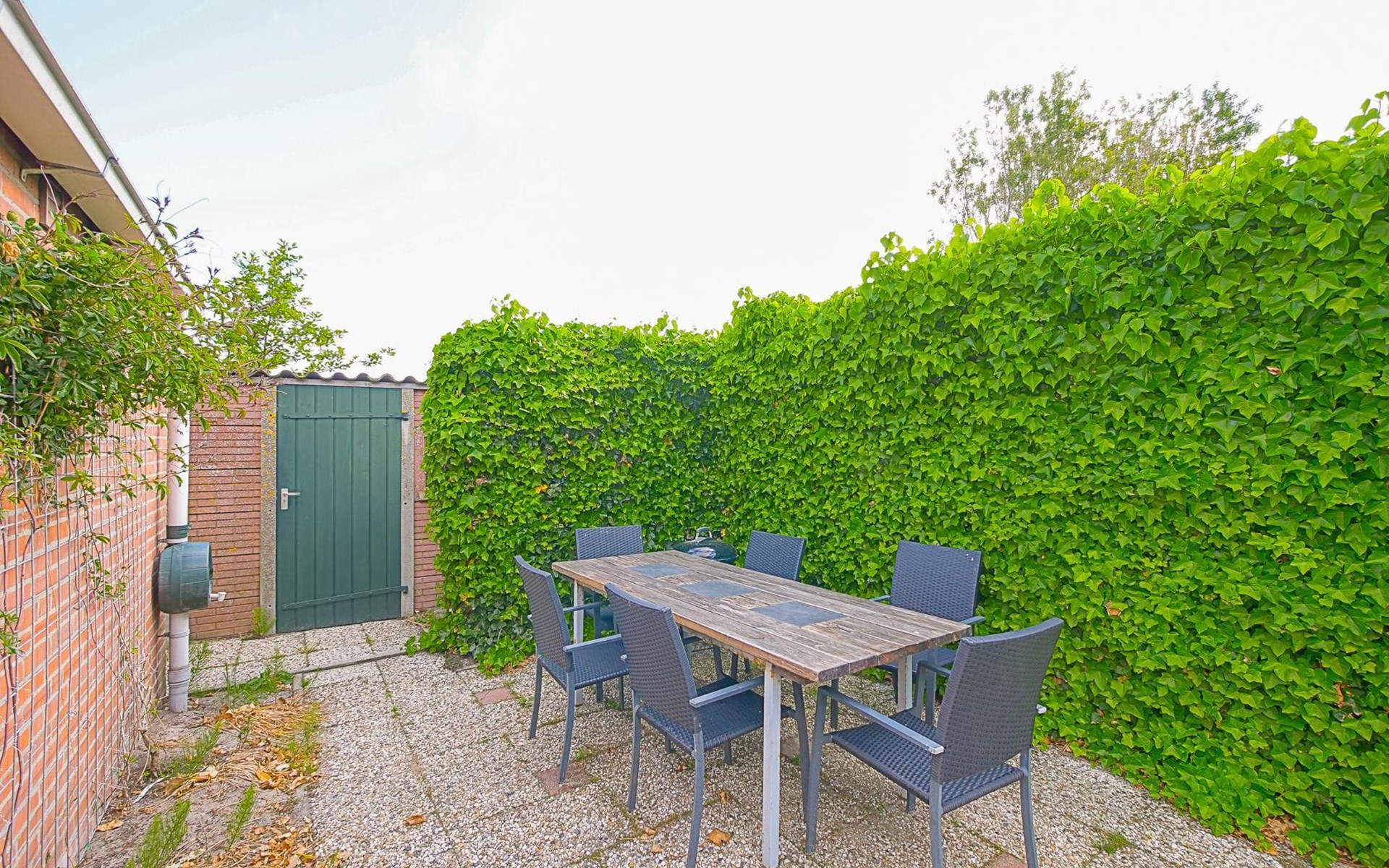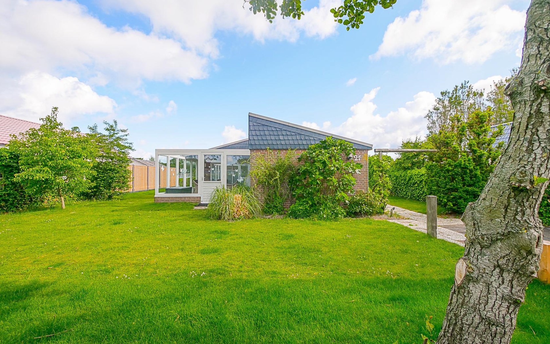 Het vakantiehuis ligt aan de rand van het park en biedt daardoor veel rust en privacy. De volledig omheinde tuin met begroeiing loopt rondom het huis, zodat u op elk moment van de dag van de zon kunt genieten. Binnen enkele minuten wandelen bereikt u de duinen en het brede strand.