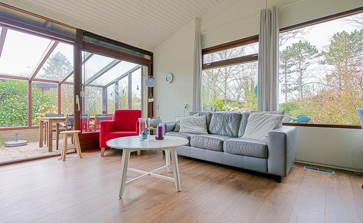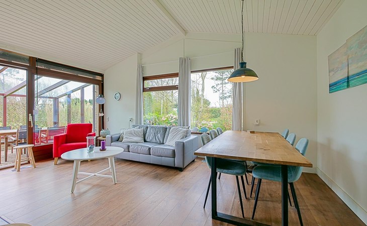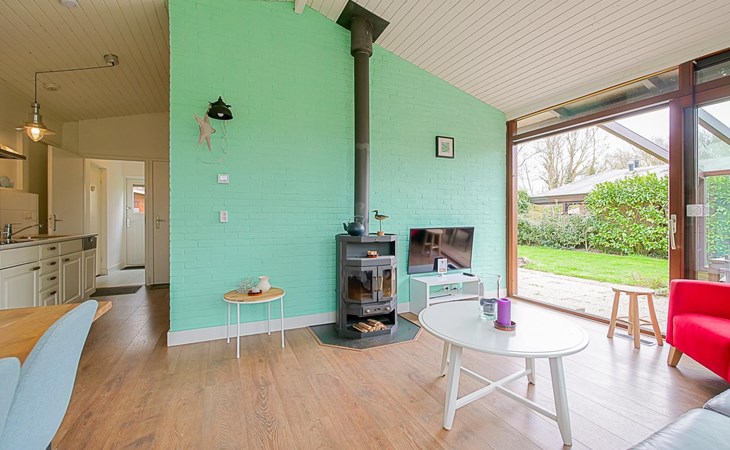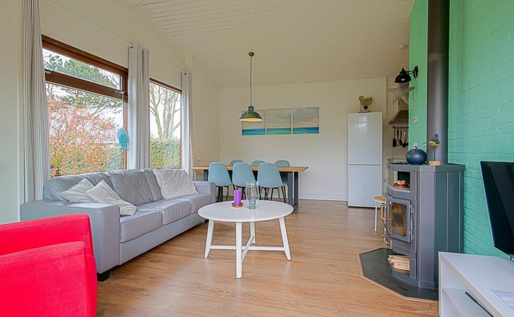 Vakantiehuis Zilt is volledig gelijkvloers ingericht en biedt plek aan maximaal 6 personen. De lichte woonkamer is sfeervol ingericht met een gezellige zithoek, houtkachel en openslaande deuren naar het overdekte terras. Hier kunt u het hele jaar door genieten van het buitenleven, of u nu in de zomer dineert in de avondzon of in de winter ontspant bij de kachel.