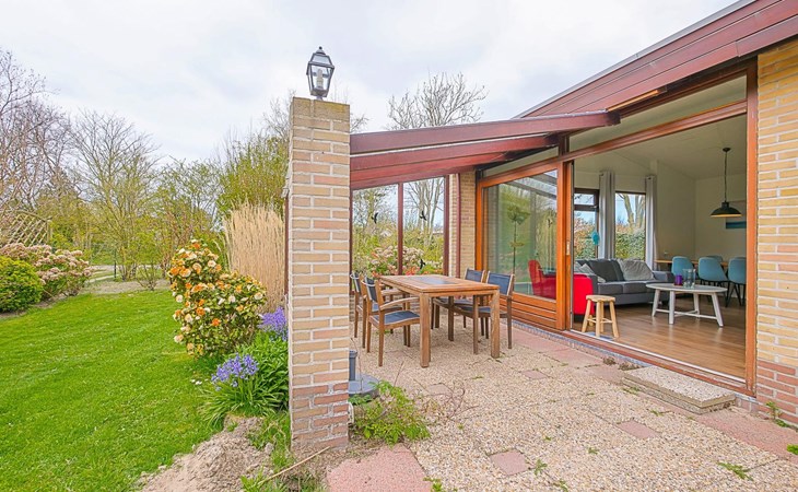 De grote tuin rondom Vakantiehuis Zilt biedt volop ruimte en privacy. Dankzij de omheining kunnen kinderen en honden veilig spelen, terwijl u zelf ontspant met een boek of geniet van een goed glas wijn. Op het overdekte terras zit u heerlijk beschut, zodat u ook bij minder weer buiten kunt genieten.