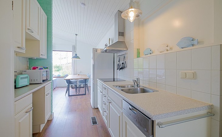 De open keuken is volledig uitgerust met moderne apparatuur en biedt alles wat u nodig heeft om een heerlijke maaltijd te bereiden. Aan de ruime eettafel is plek voor het hele gezelschap – ideaal voor lange, gezellige avonden.