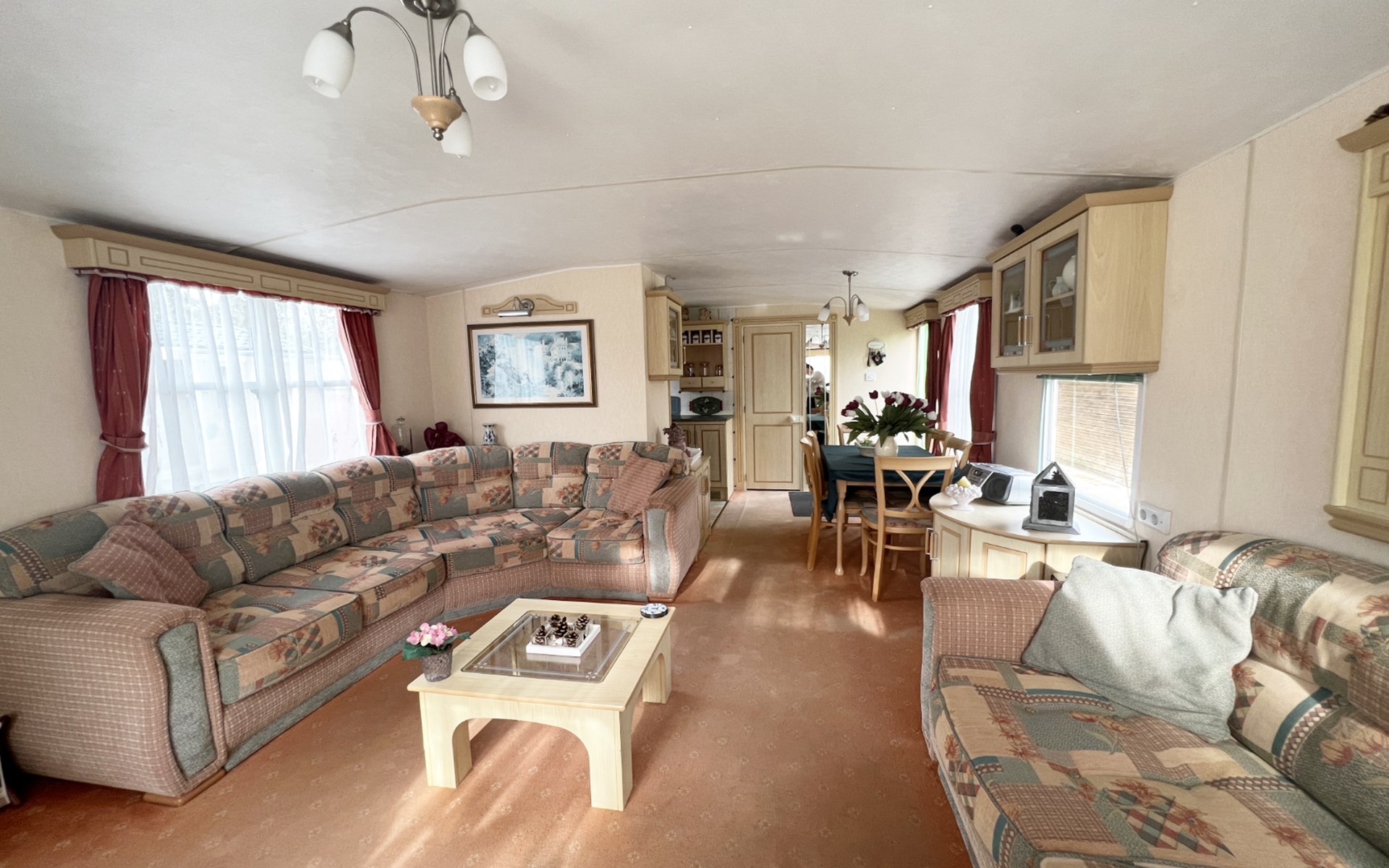 De ruime woonkamer straalt warmte uit en is ingericht met comfortabele banken en een flatscreen-tv. Hier kunt u heerlijk ontspannen na een dagje strand of een lange wandeling in de duinen.