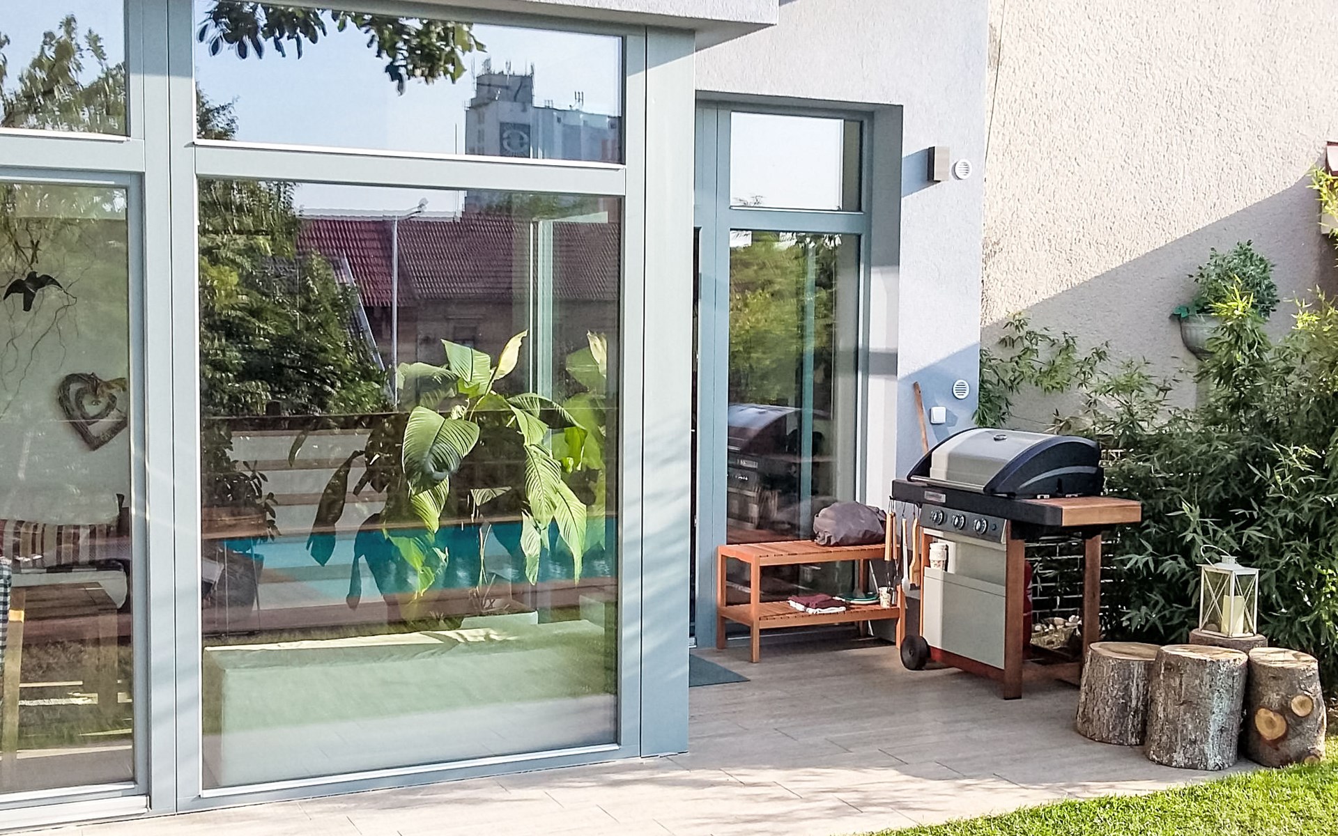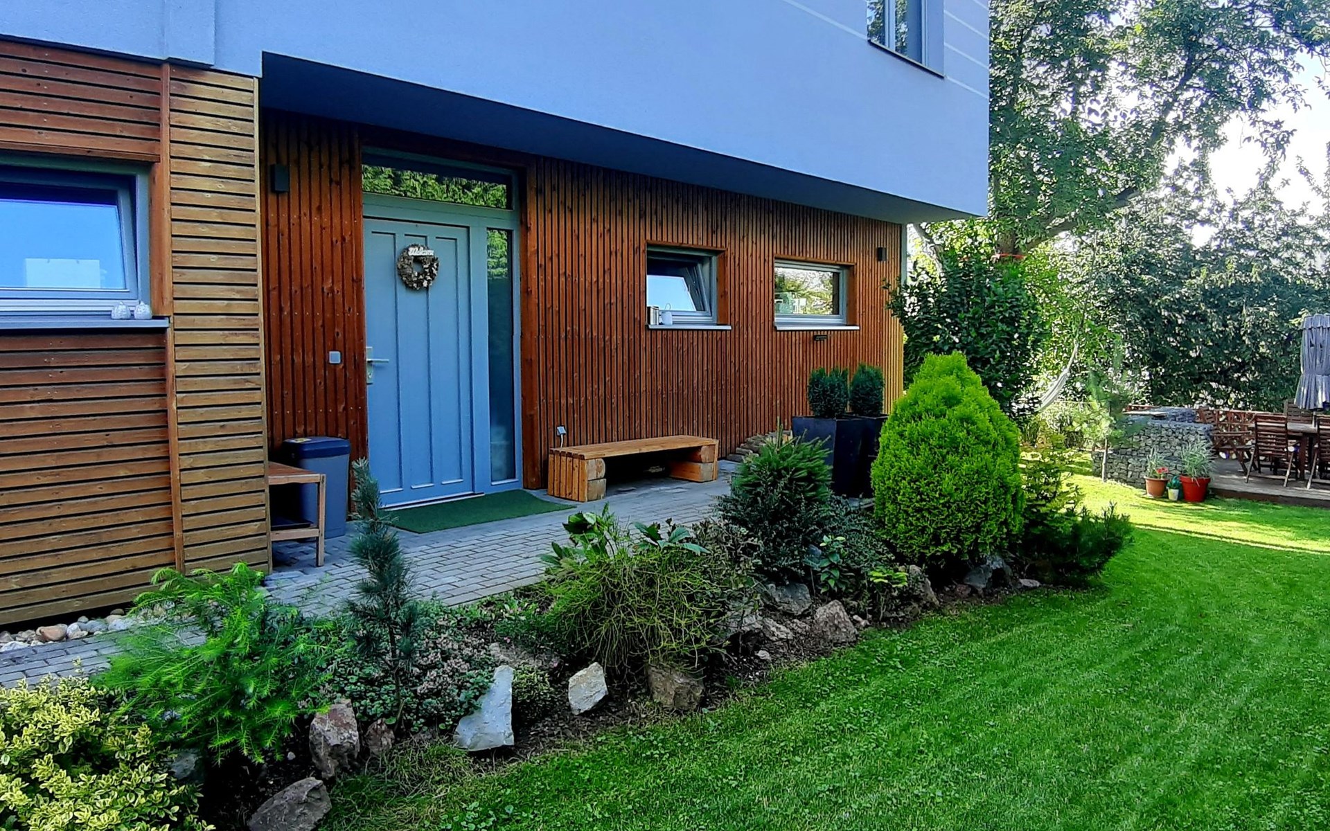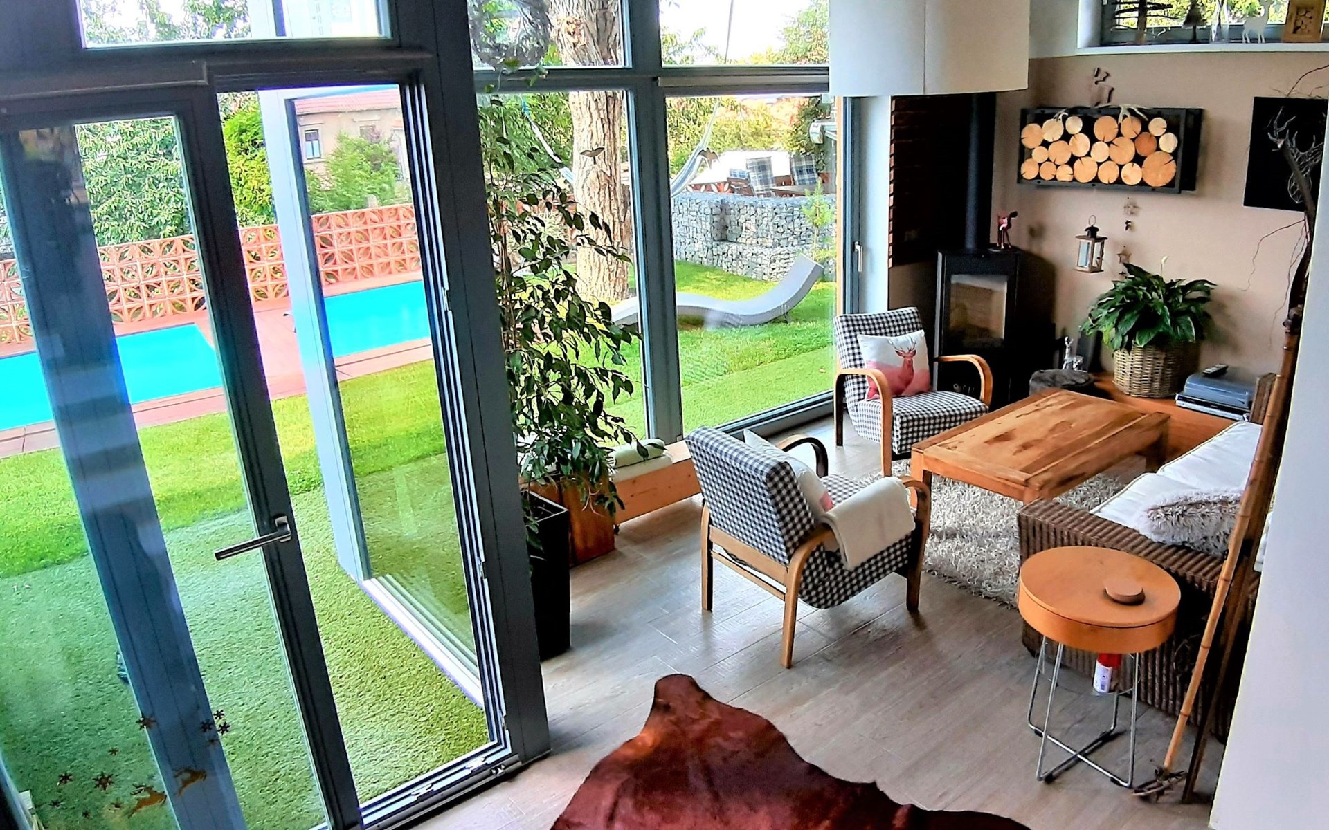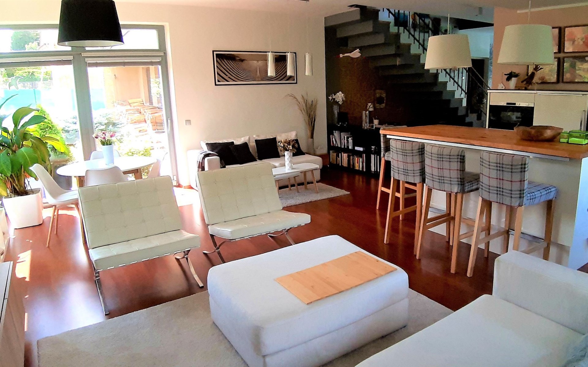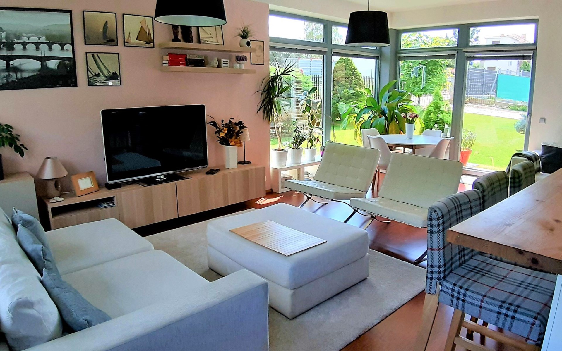 Groot, moderne, luxueuze eengezinswoning "Řeporyje", van 2 verdiepingen, bouwjaar 2015, omgeven door bomen. 13 km van het centrum van Praha, rustige, zonnige ligging. Voor alleengebruik: terrein 1.200 m2 (omheind), gazon, openluchtzwembad (7 x 3 m, 110 cm diepte, seizoensgebonden beschikbaarheid: 30.Jun. - 01.Sep.). Kinderzwembad, buitendouche, barbecue, onderhoud zwembad door de eigenaar/tuinman. In het huis: centrale verwarming, wasmachine. Parkeerplaats (voor 3 auto's) bij het huis. Oplaadstation. Levensmiddelenwinkel 100 m, supermarkt 1 km, winkelcentrum 2.5 km, restaurant 500 m, bushalte "Nádraží Řeporyje" 200 m, station "Nádraží Řeporyje" 200 m, overdekt zwembad 5 km. Golfterrein (18 holes) 6 km, tennis 500 m, kinderspeelplaats 100 m. Attracties in de buurt: Pražský hrad, Vyšehrad, Václavské náměstí, Staroměstské náměstí, Karlův most 12 km. Wandelgebied Dalejské údolí 500 m, Prokopské údolí 6 km.