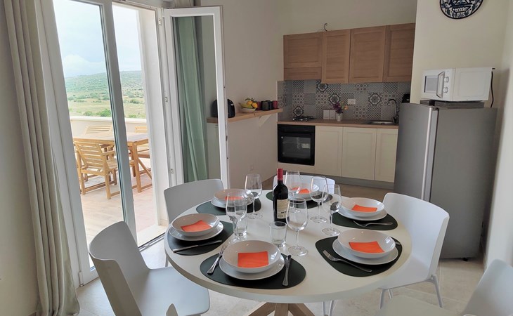 Appartementencomplex, bouwjaar 2023. In het gehucht San Corrado, 6 km van het centrum van Noto, 37 km van het centrum van Siracusa, rustige, zonnige ligging, 15 km van zee. Voor medegebruik: terrein 2.000 m2 (omheind). Verwarming ter plaatse te betalen (01.Apr. - 14.Nov.), verwarming alleen beschikbaar van 15.Nov. - 31.Mrt.. Kok op verzoek (extra). Ontbijt op aanvraag (extra). Trappenweg (18 treden) naar het huis. Parkeerplaats op het terrein. Supermarkt 2 km, restaurant 2 km, bar 2 km, bushalte 6.5 km, treinstation "Noto" 8.5 km, zandstrand "Lido di Noto" 15 km. Attracties in de buurt: Parco Archeologico Noto Antica 8 km, Avola 14 km, Marzamemi 25 km, Isola delle Correnti Punto Sud Sicilia 32 km, Modica 37 km, Ragusa 50 km. Bekende meren kunnen gemakkelijk worden bereikt: Laghetto del Cassibile 13 km. Wandelgebied Riserva Oasi Faunistica Vendicari 18 km. Auto noodzakelijk. Gesloten residentie met een elektrische deur. De eigenaar woont in hetzelfde huis. De eigenaar heeft een hond.