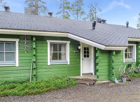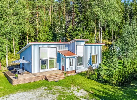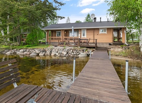 Log cabin 1995, living room/kitchen with 1 extra bed, bedroom with 2 beds. Upstairs: 2 beds, sleeping loft with 1 extra bed, washroom, dressing room, sauna (electric sauna stove), toilet, glazed terrace.
