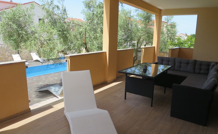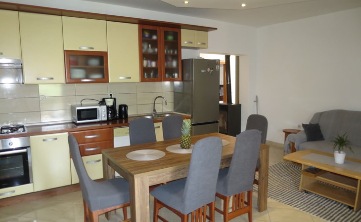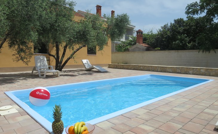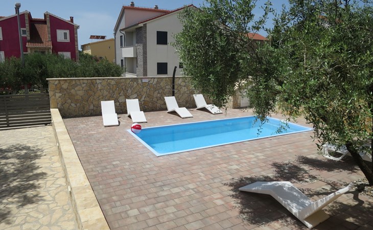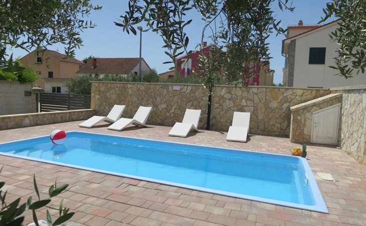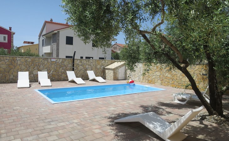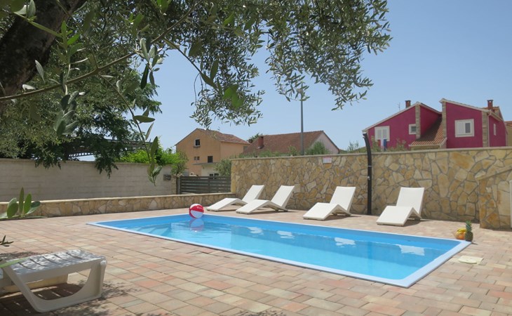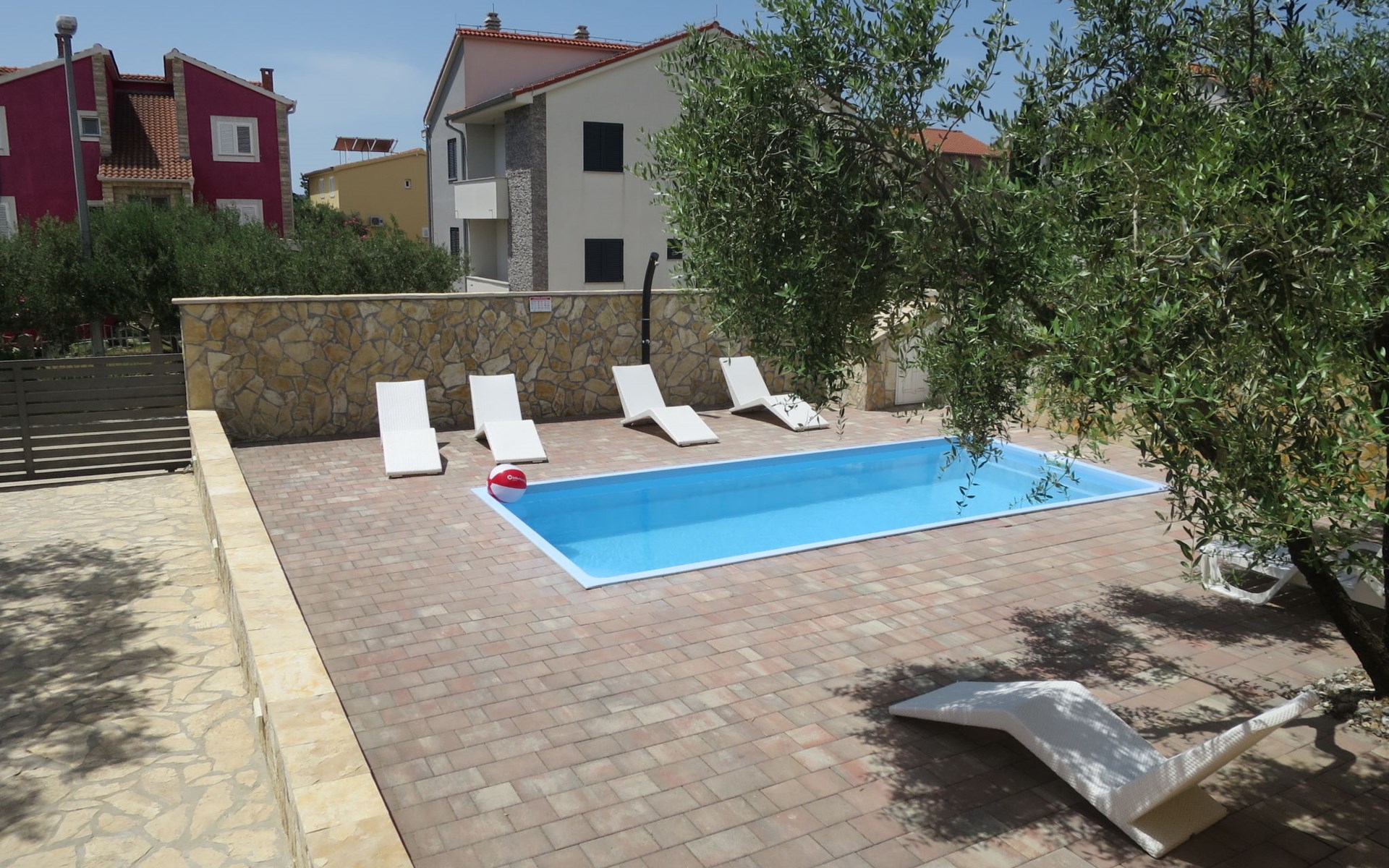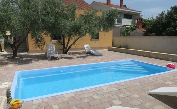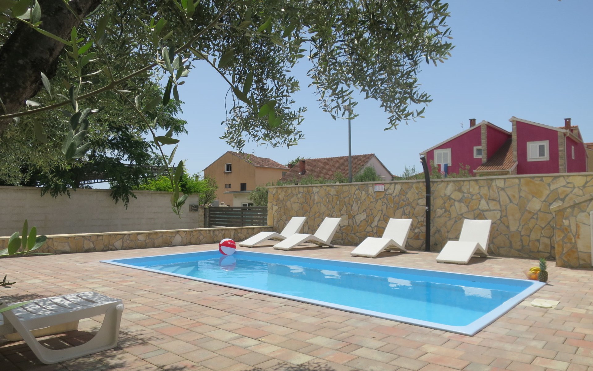 Eengezinswoning "Tina". In de wijk Meterize, 1 km van het centrum van Biograd na Moru, 27 km van het centrum van Zadar, 1.6 km van zee, 1.6 km van het strand. Voor alleengebruik: terrein 410 m2 (omheind), tuin, openluchtzwembad hoekig (6 x 3 m, 150 cm diepte, seizoensgebonden beschikbaarheid: 27.Mei. - 01.Okt.) met trap. Buitendouche, prieel, terras, barbecue. In het huis: internetaansluiting, wasmachine. Parkeerplaats (voor 2 auto's) bij het huis op het terrein. Supermarkt 450 m, restaurant 2 km, bushalte 1.4 km, kiezelstrand 1.6 km. Attracties in de buurt: adventure park 850 m.