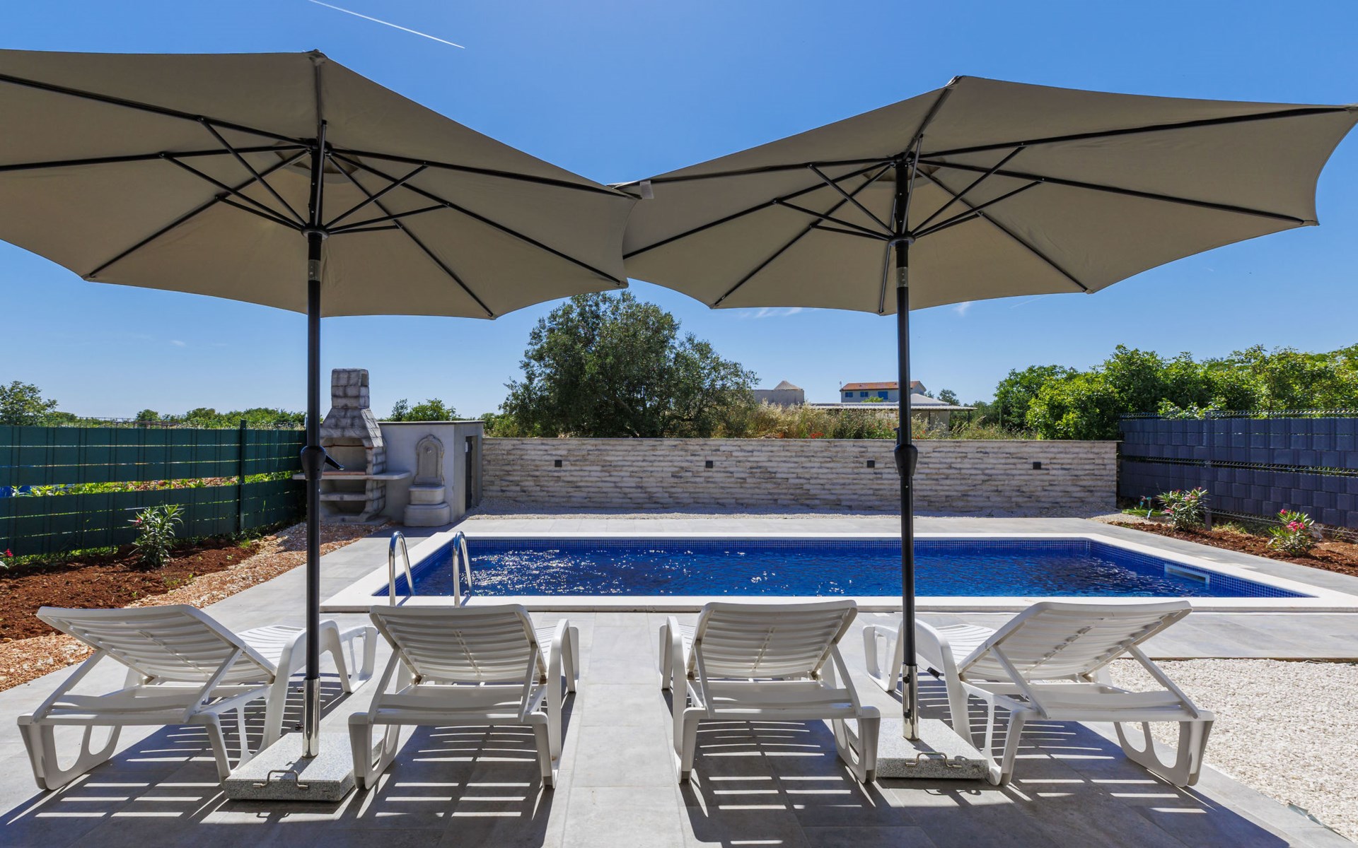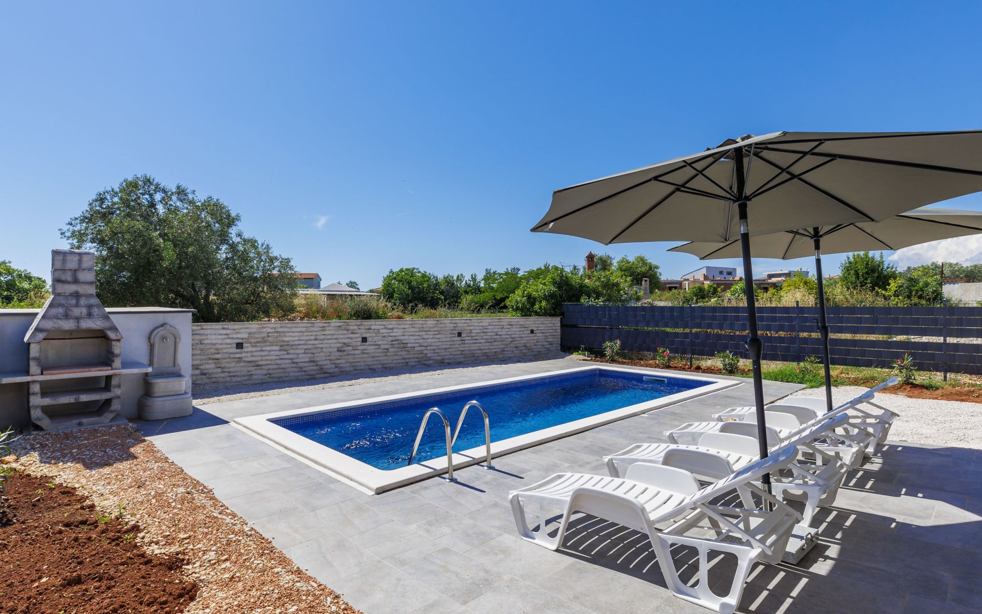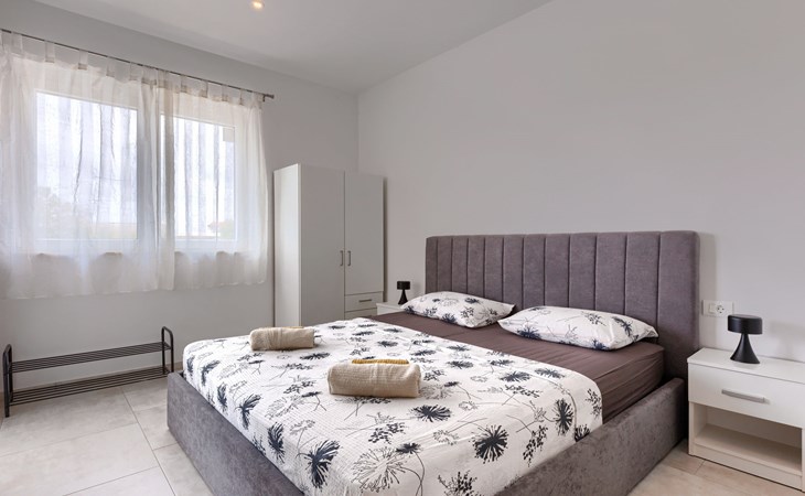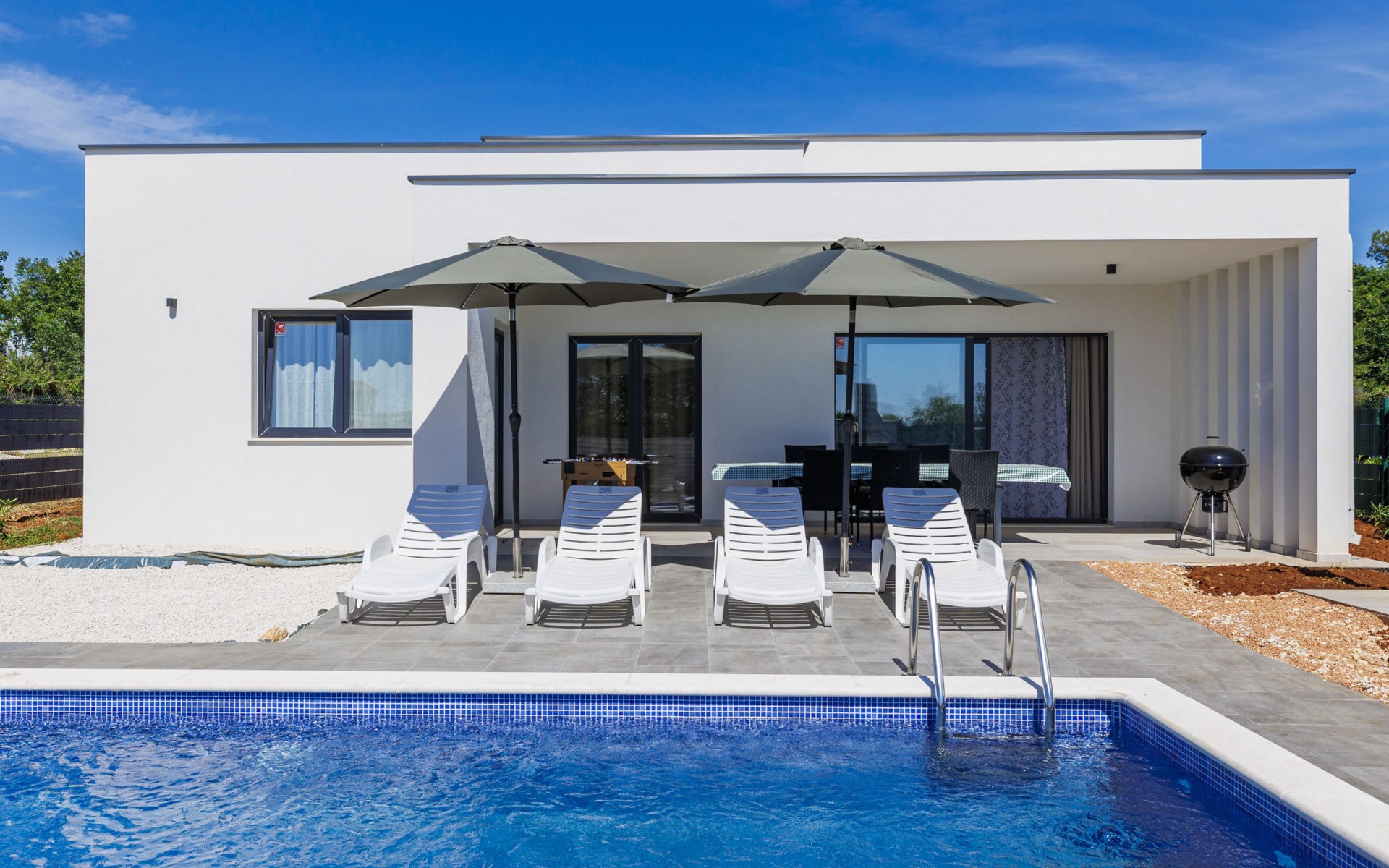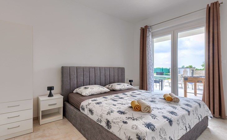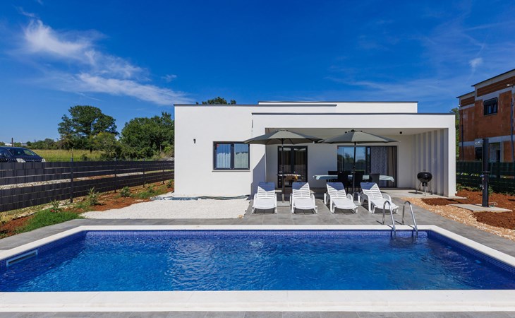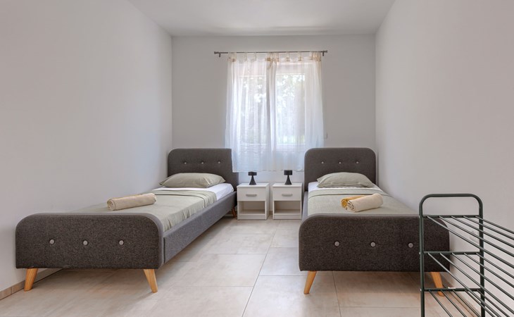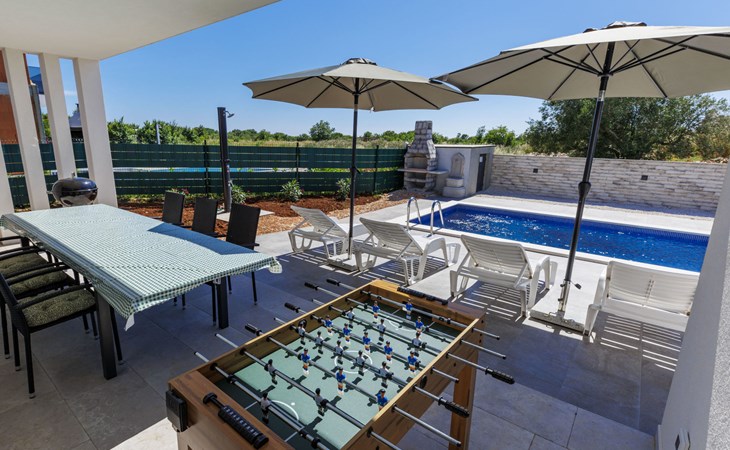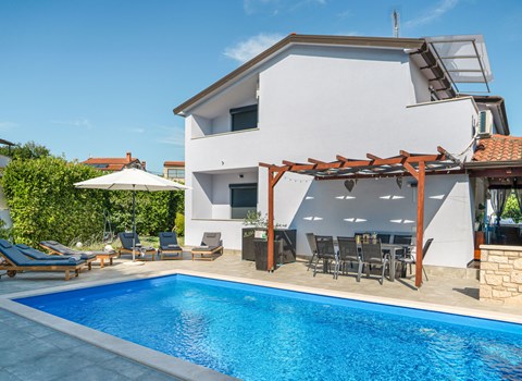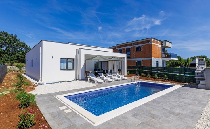 Vodnjan 7 km van Pula: Villa "Romeo". 1 km van het centrum van Vodnjan, 10 km van het centrum van Pula, zonnige ligging, 6 km van zee. Voor alleengebruik: terrein 510 m2 (omheind), tuin, openluchtzwembad hoekig (8 x 3 m, 140 cm diepte, seizoensgebonden beschikbaarheid: 01.Mei. - 01.Okt.) met zout-elektrolyse. Buitendouche, onderhoud zwembad door de eigenaar/tuinman. In het huis: internetaansluiting, air-conditioning, wasmachine. Parkeerplaats (voor 3 auto's) bij het huis op het terrein. Oplaadstation. Supermarkt 400 m, restaurant 600 m, bushalte 750 m, kiezelstrand 6 km. Voor grote groepen met jongeren is een dubbele borg gevraagd bij aankomst. .