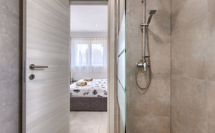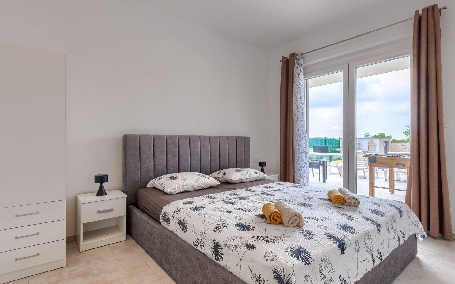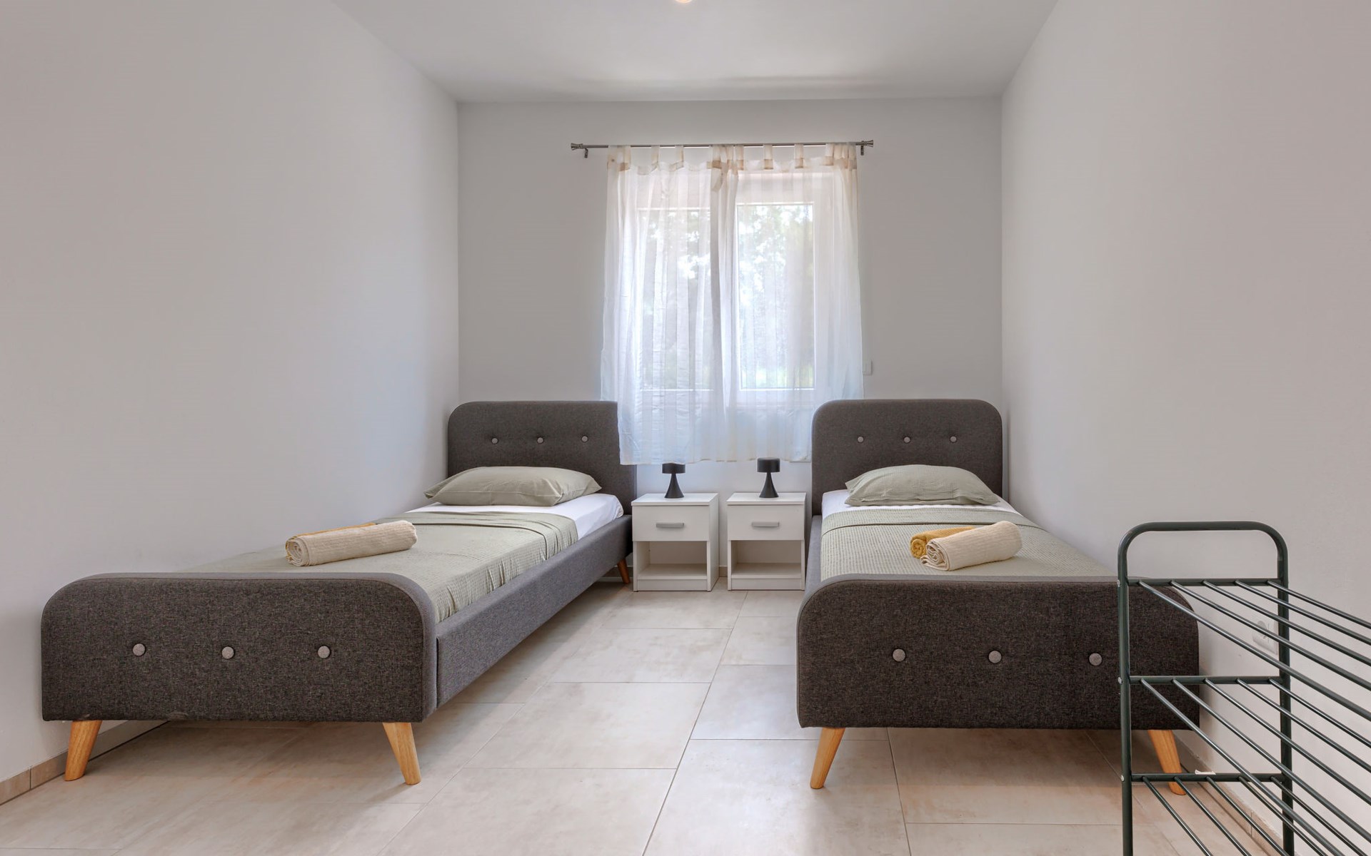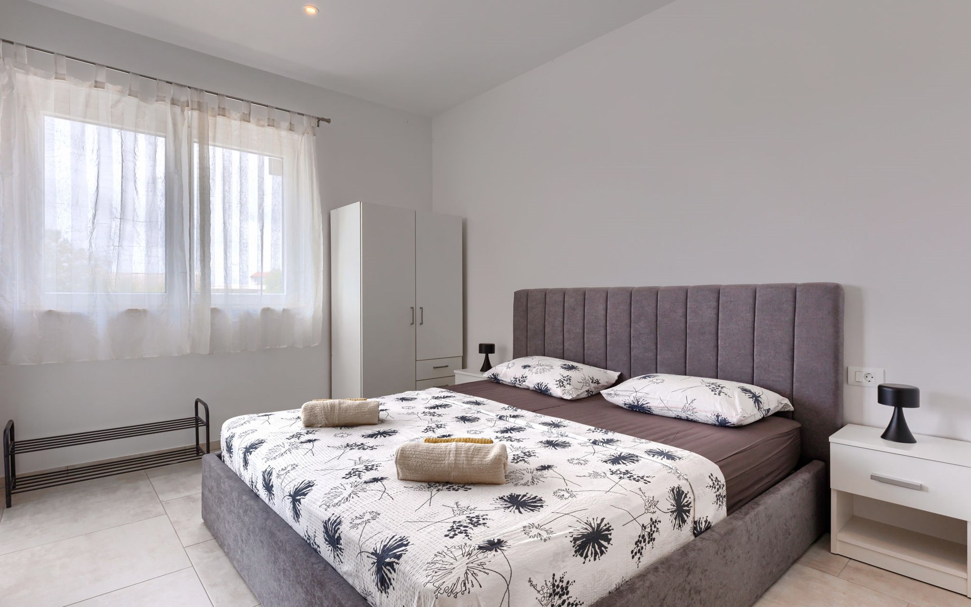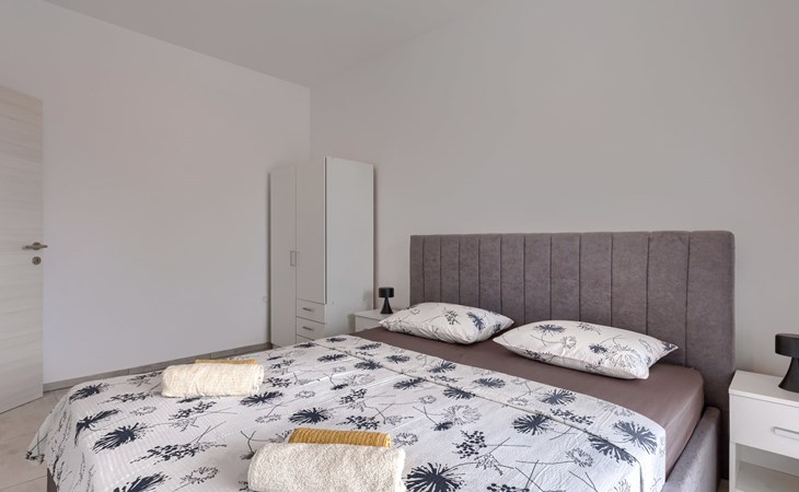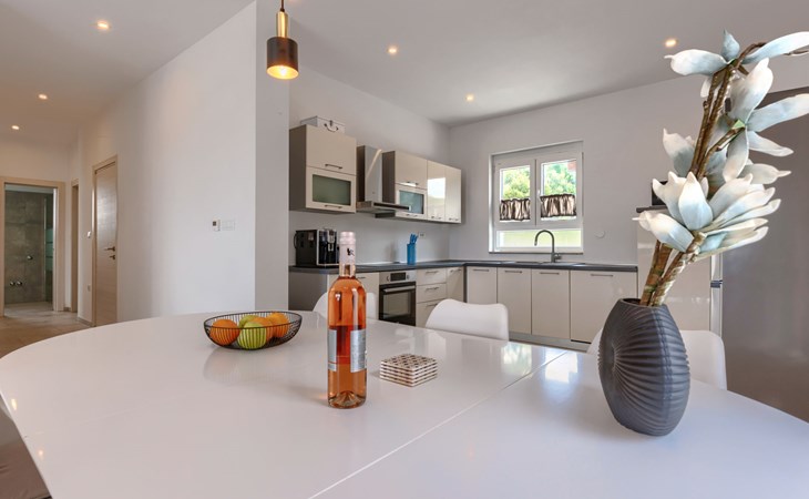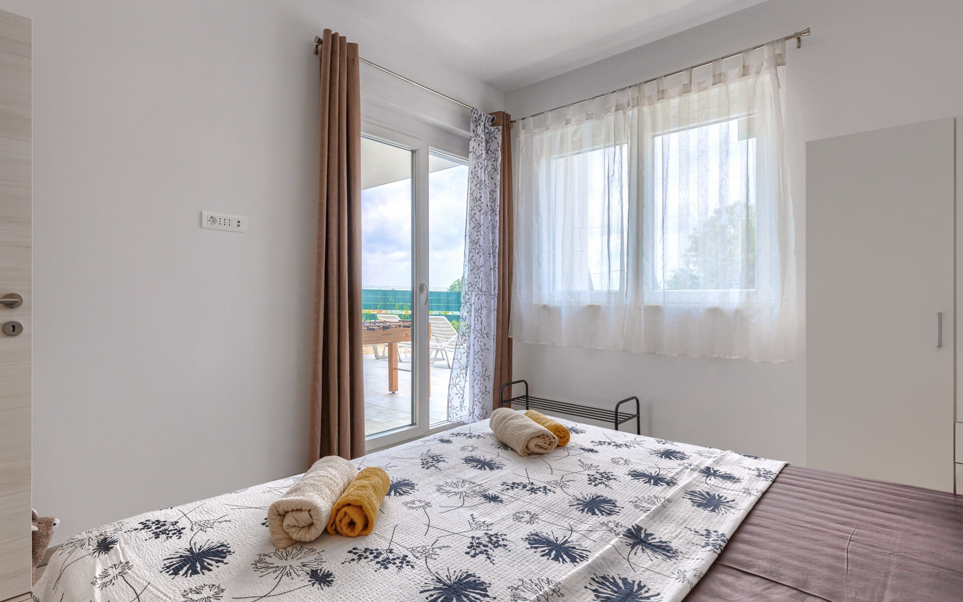 Vodnjan 7 km van Pula: Villa "Romeo". 1 km van het centrum van Vodnjan, 10 km van het centrum van Pula, zonnige ligging, 6 km van zee. Voor alleengebruik: terrein 510 m2 (omheind), tuin, openluchtzwembad hoekig (8 x 3 m, 140 cm diepte, seizoensgebonden beschikbaarheid: 01.Mei. - 01.Okt.) met zout-elektrolyse. Buitendouche, onderhoud zwembad door de eigenaar/tuinman. In het huis: internetaansluiting, air-conditioning, wasmachine. Parkeerplaats (voor 3 auto's) bij het huis op het terrein. Oplaadstation. Supermarkt 400 m, restaurant 600 m, bushalte 750 m, kiezelstrand 6 km. Voor grote groepen met jongeren is een dubbele borg gevraagd bij aankomst. .