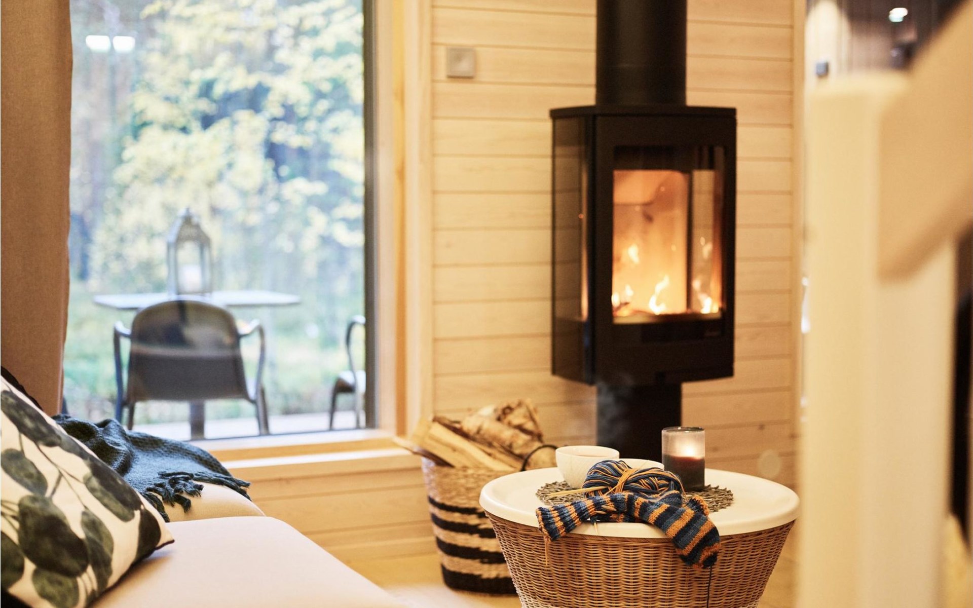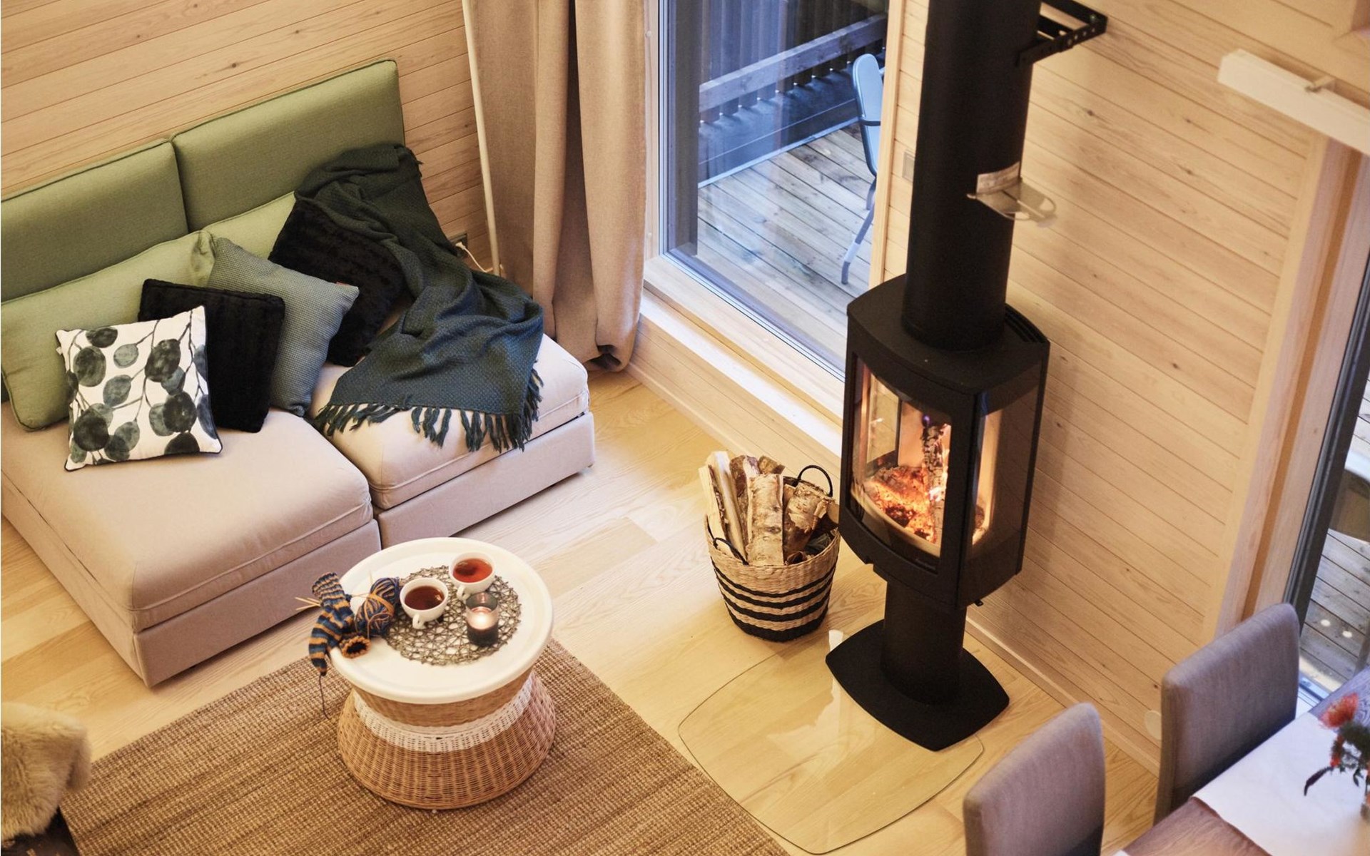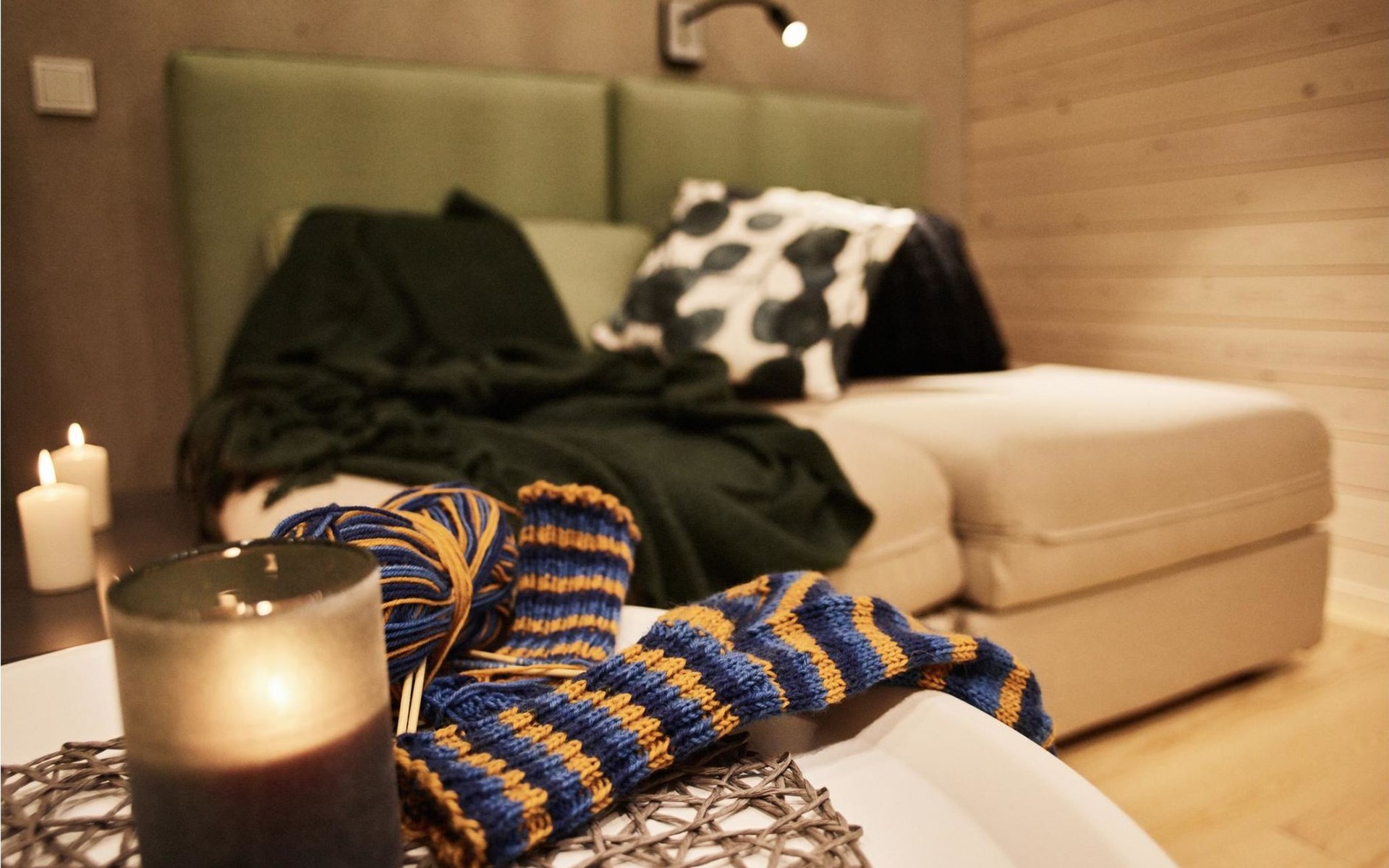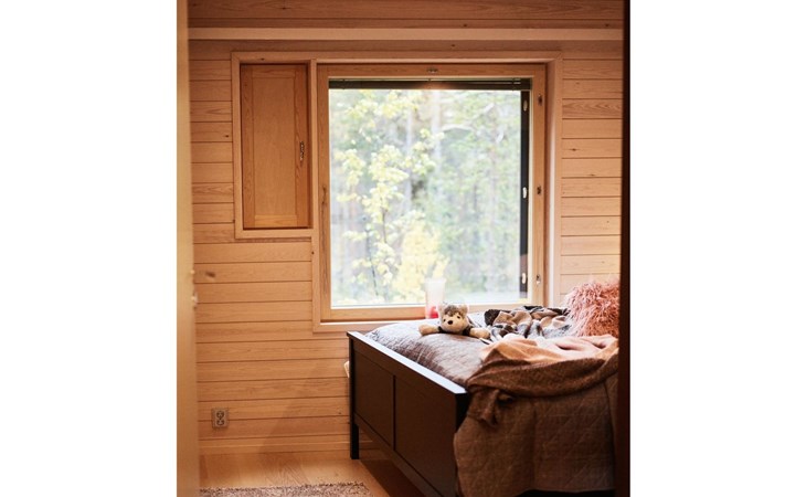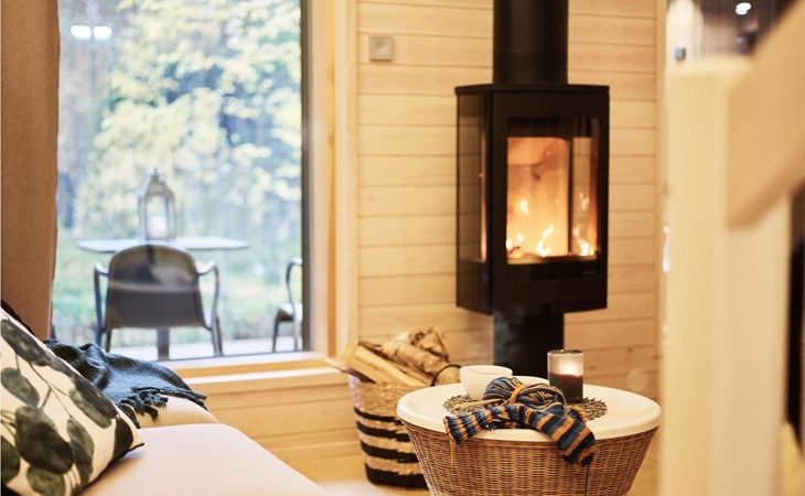 Apartment in a semi-detached house, built in 2017. Living room/kitchen with sofa bed, bedroom with double bed, sauna, washroom/WC, and covered terrace.