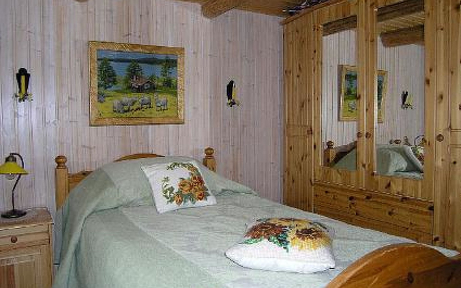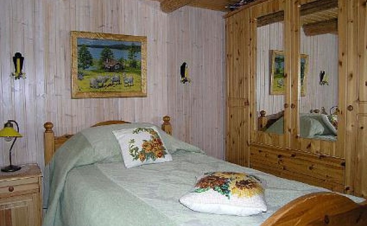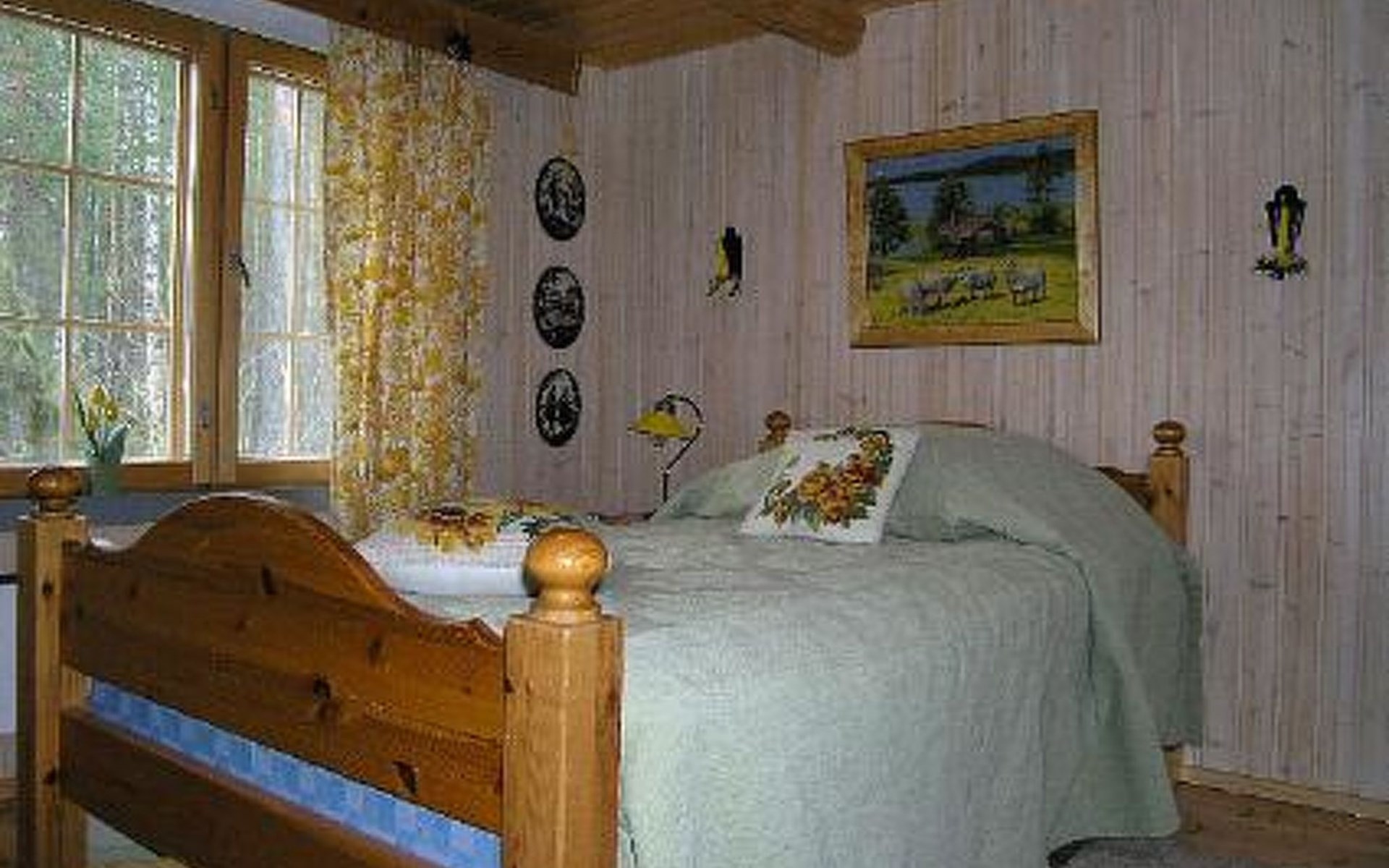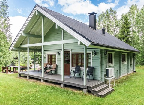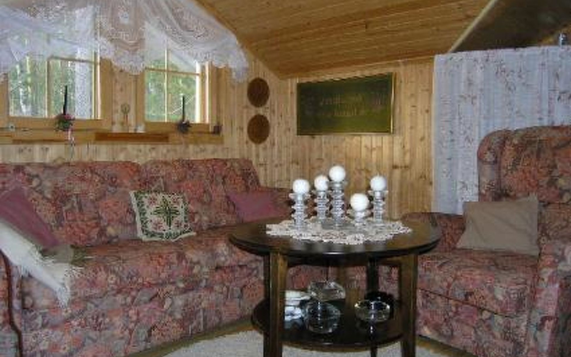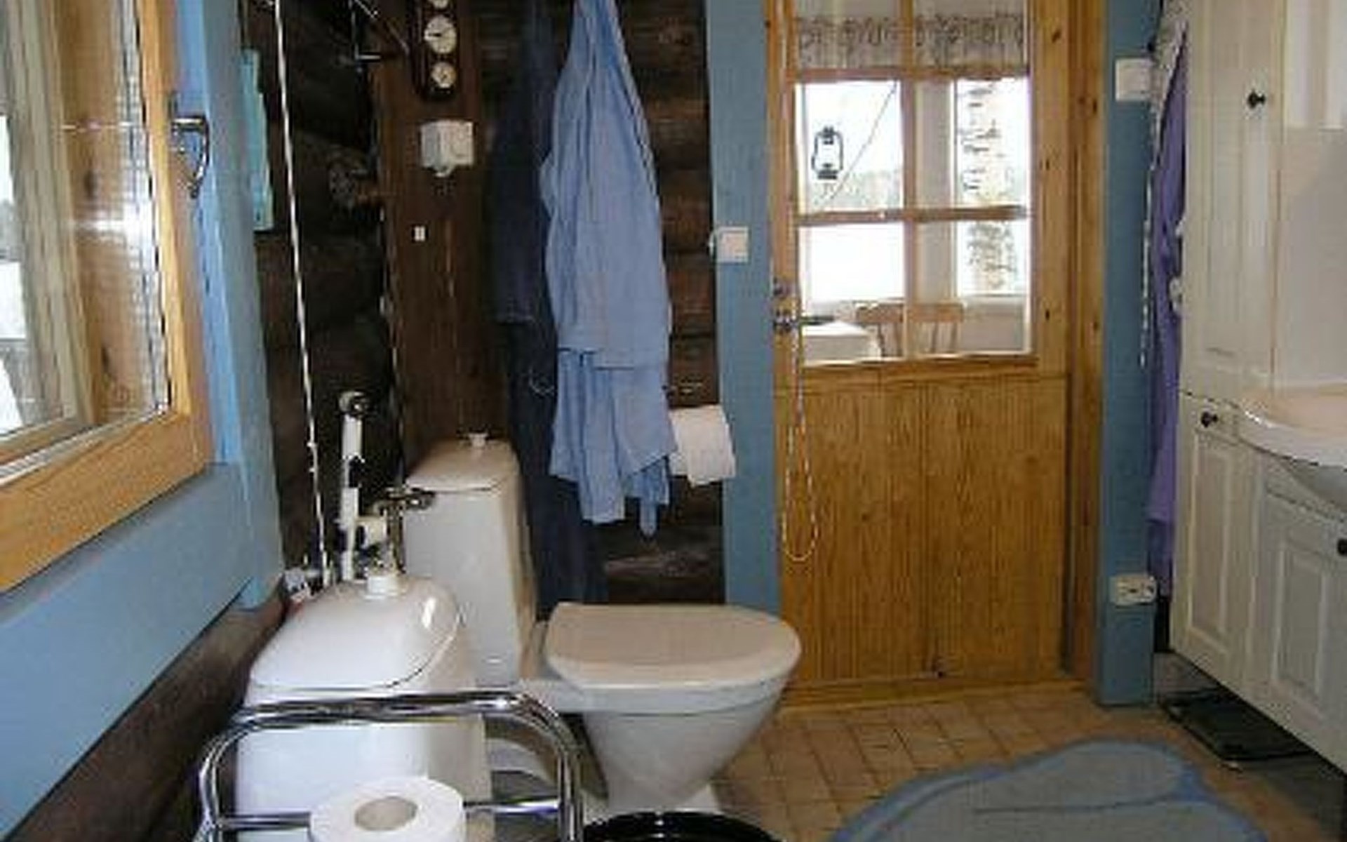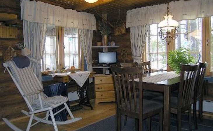 Two-storey log cottage 2006, on the ground floor entrance hall, spacious kitchen, bedroom with double bed, utility room and shower room, walk-in shower, toilet, glass veranda (15 m²) where dining table for 10 people, terrace.