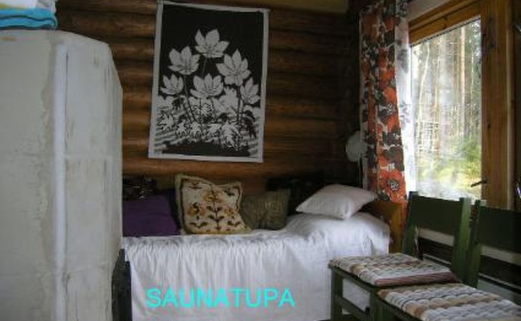 Separate lakeside sauna, where fireplace room with sofa bed. To the sauna comes only cold water.