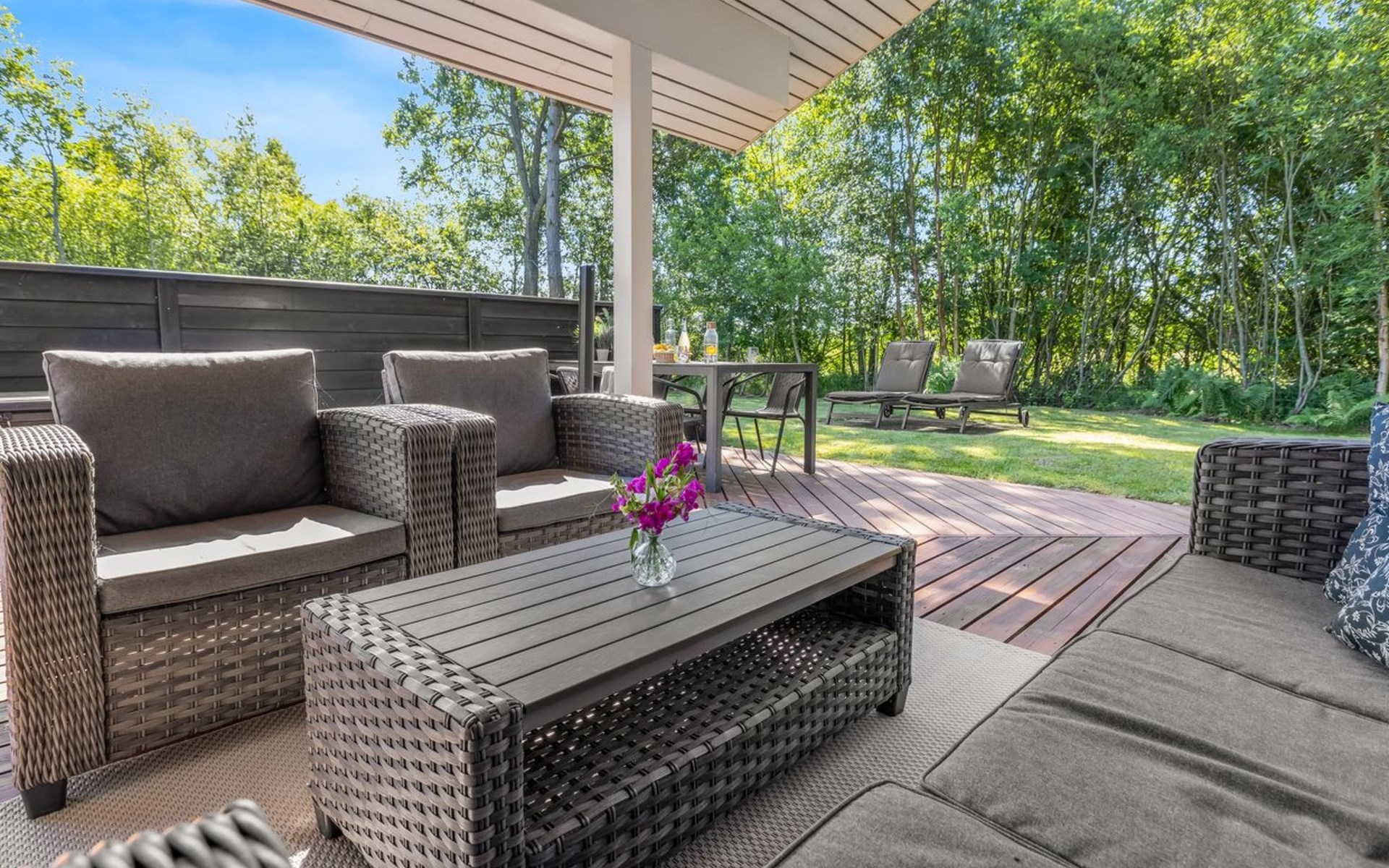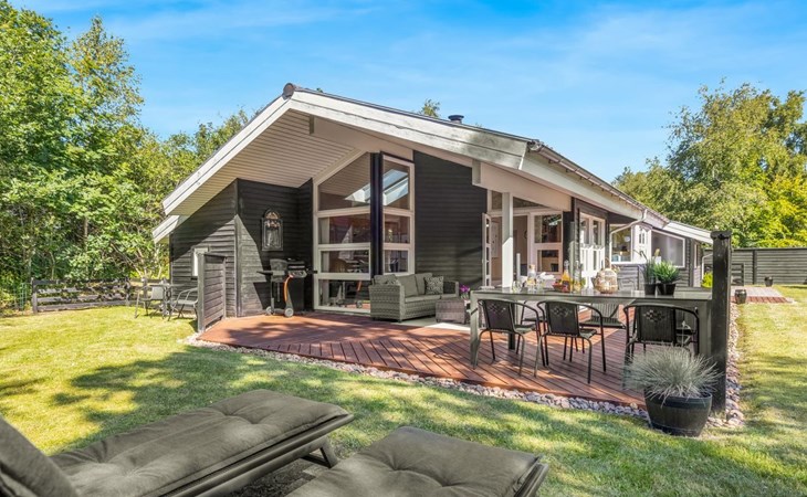 Eengezinswoning, bouwjaar 2005. 1.5 km van zee. Voor medegebruik: tuin. Voor alleengebruik: wild terrein 1.025 m2, tuin (omheind). Barbecue, kinderspeelplaats (glijbaan, schommel). In het huis: sauna, wasmachine, droger. Parkeerplaats bij het huis. Levensmiddelenwinkel 2 km. De eigenaar accepteert geen jeugdgroepen.