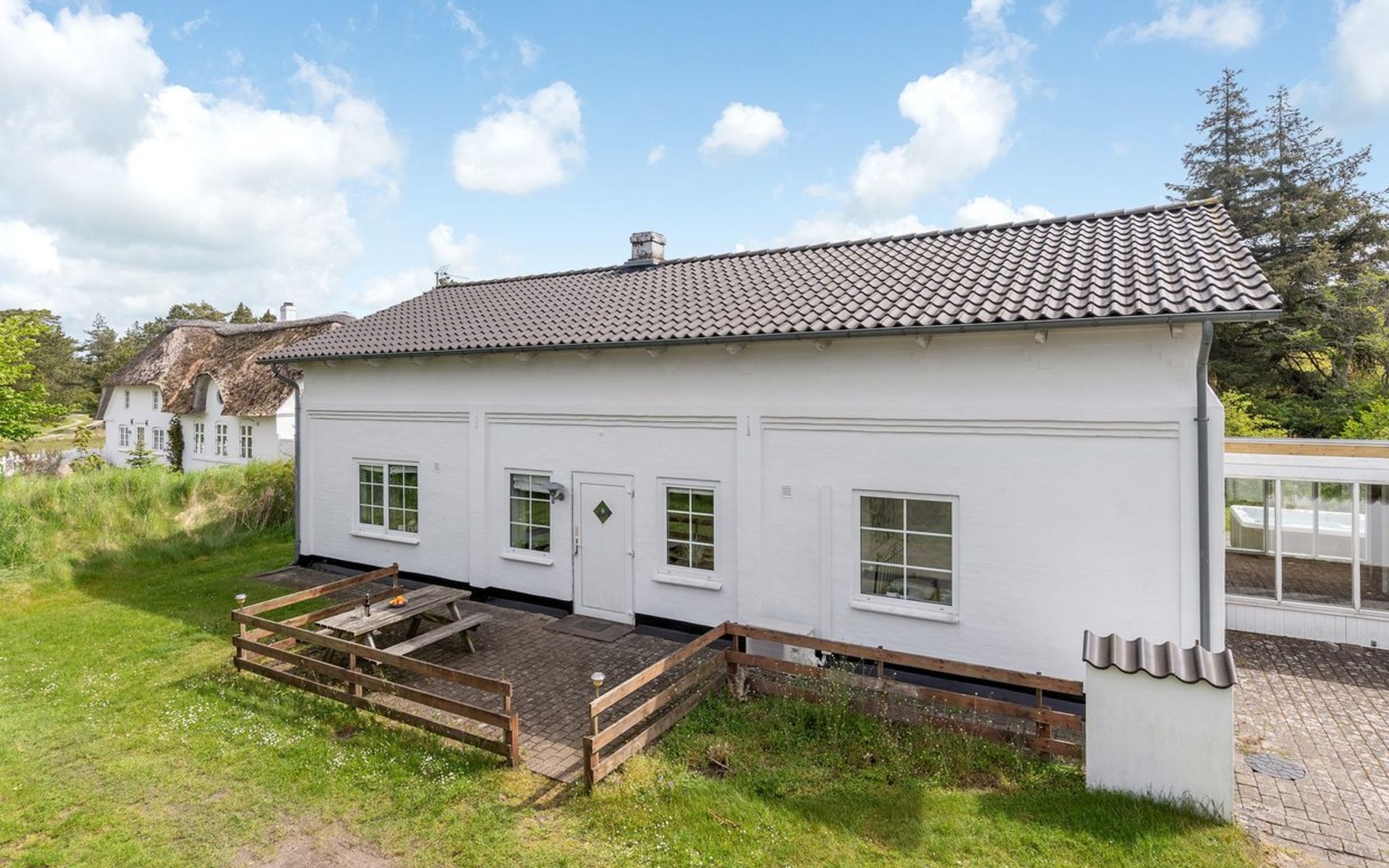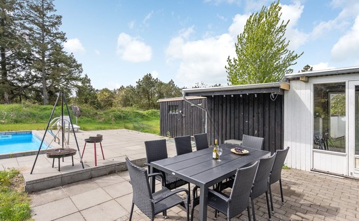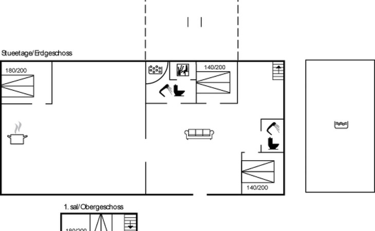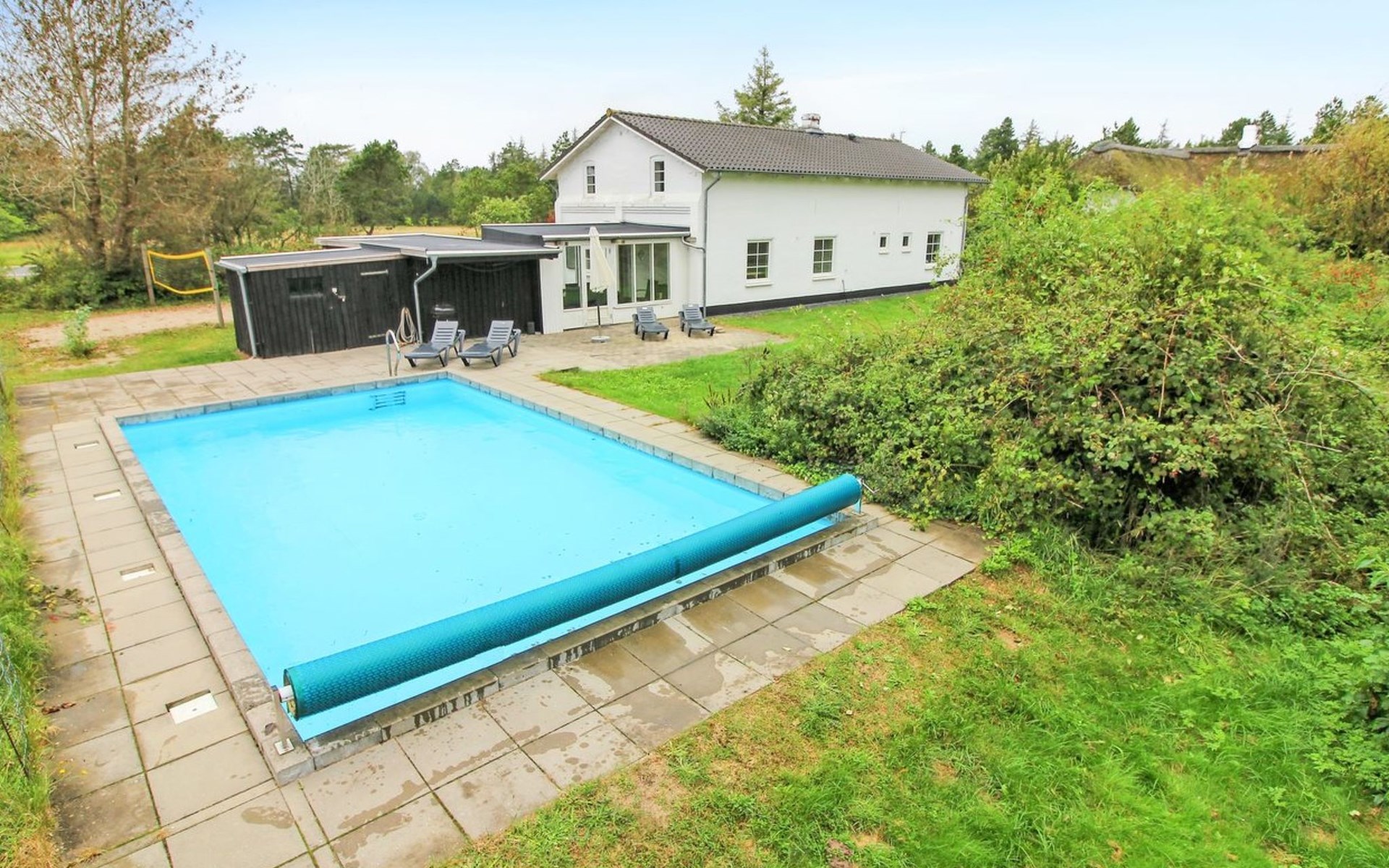 Eengezinswoning, bouwjaar 1850. 5 km van zee. Voor alleengebruik: terrein 1.394 m2, verzorgde tuin, openluchtzwembad (5 x 8 m, 40 m2, 120 - 120 cm diepte, seizoensgebonden beschikbaarheid: 01.Mei. - 30.Sep.). Terras (25 m2), kinderspeelplaats (schommel). In het huis: sauna, wasmachine, droger. Carport. Levensmiddelenwinkel 100 m.