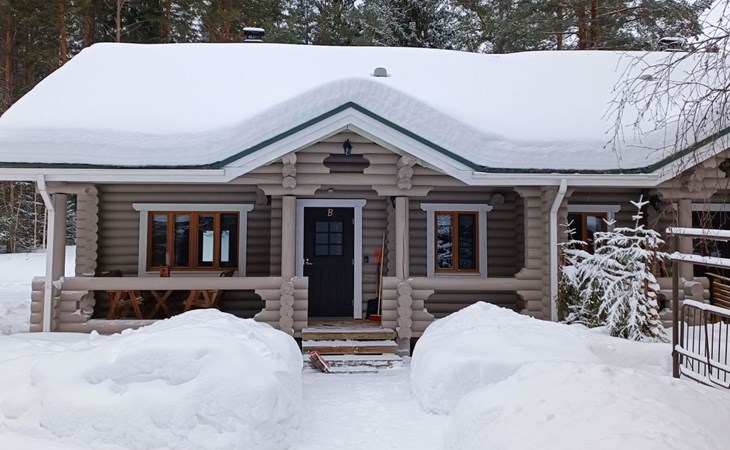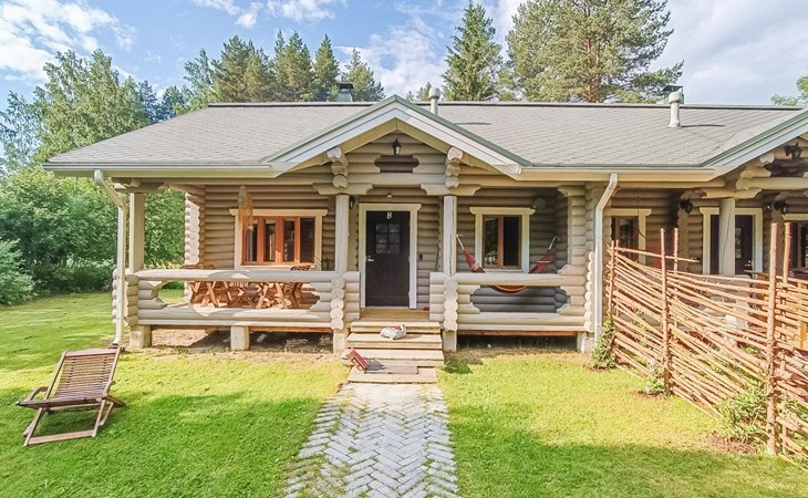 72 km to the north from Joensuu, lake Pielinen 250 m (871.2 km²), shallow public beach of the Purnuniemi holiday cabin area, which is full of boats. On the beach, there is a shared boat with the Purnutar A apartment. Apartment in a log-built semi-detached house 2000, living room-kitchen, bedroom with double bed, small bed room with 2 beds, spacious loft with 4 beds, washroom, electric sauna, terrace. Available for rent to a maximum of 6 people.