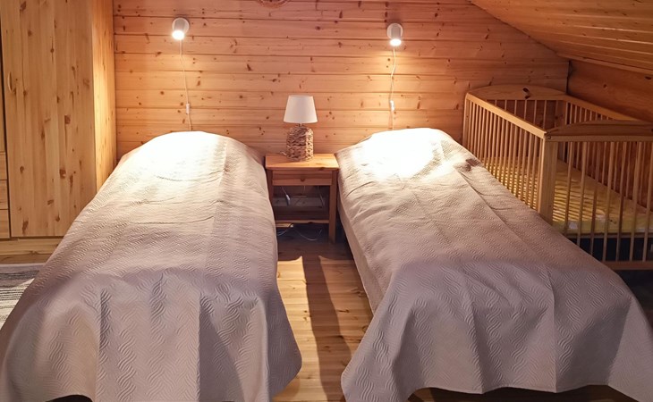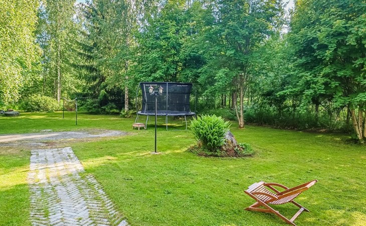 Well-equipped apartment in semi-detached house located in the Purnuniemi holiday cabin area by the lake Pielinen. Child safety gate in the loft (at the top of the stairs). In addition, there is a crib, a baby bath, a potty and two children's cutlery (cutlery, plates, mugs). Internet 4 G Wi-Fi. On the terrace, furniture for 4 people and hammock. Trampoline (with safety net) shared with the apartment B. Yard games.