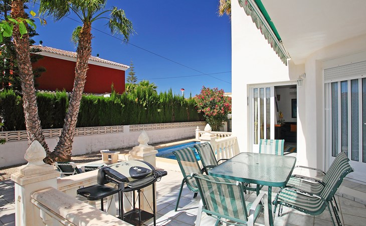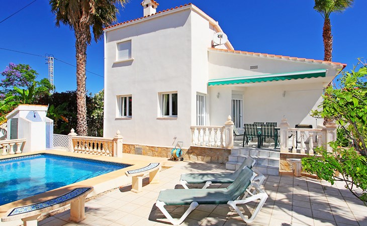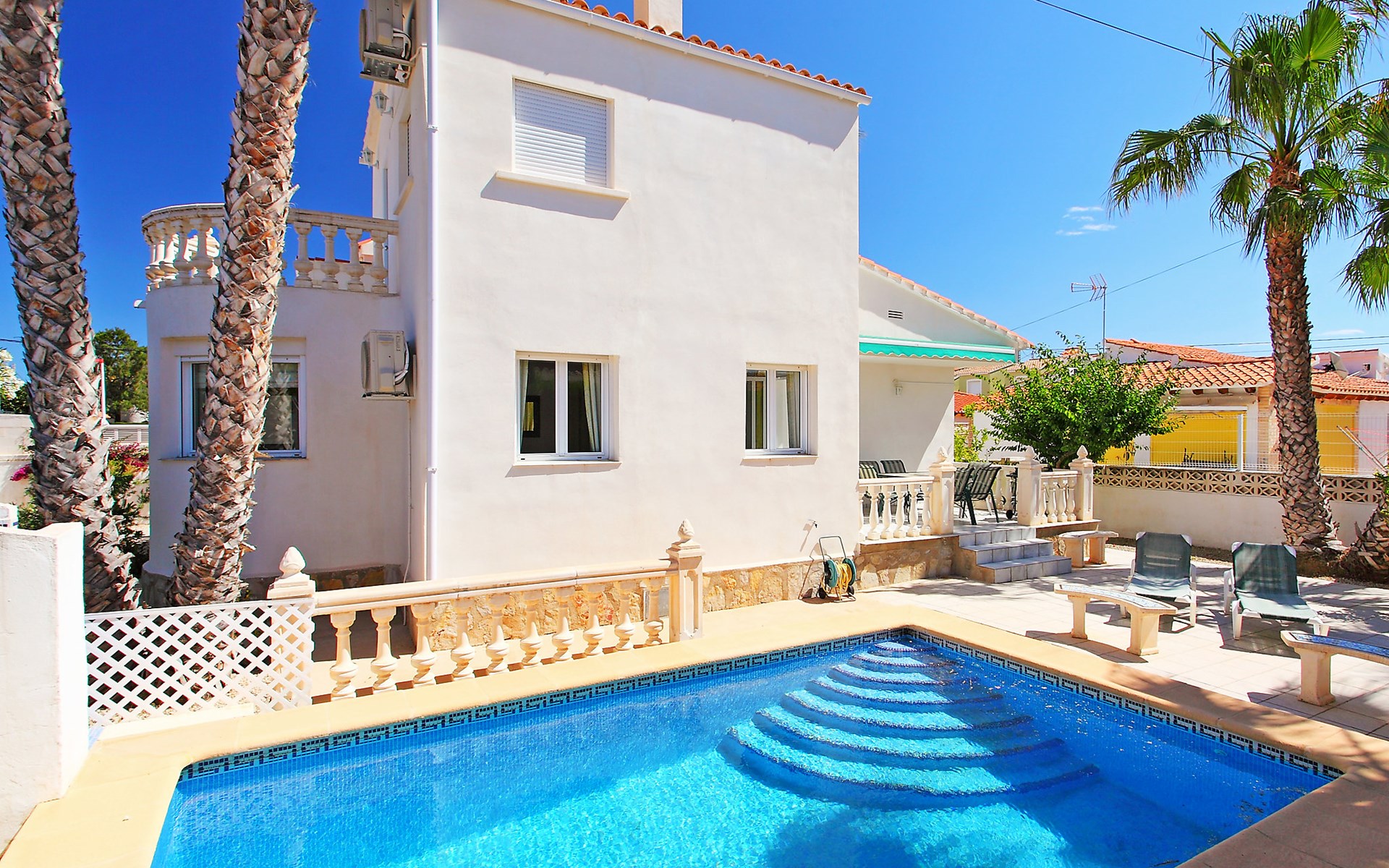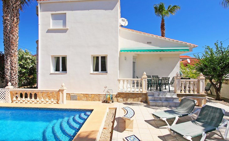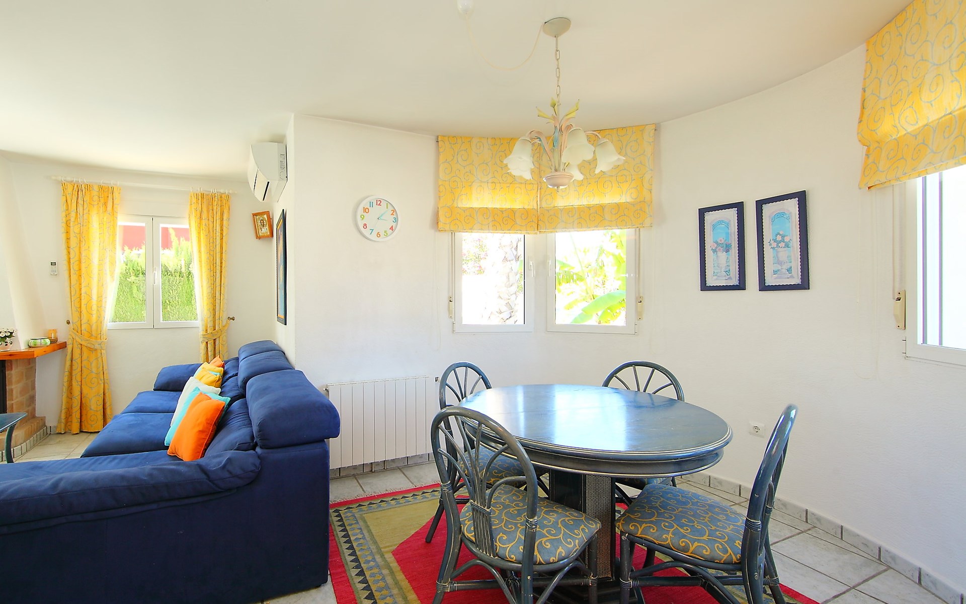 Gezellig, comfortabel huis "De la mar", van 2 verdiepingen. In de wijk Sorts de la mar, Playa Almadrava, 2.5 km van het centrum van Els Poblets, 10 km van het centrum van Dénia, 150 m van zee, van het strand. Voor alleengebruik: terrein (omheind) met planten en bomen, openluchtzwembad hoekig (4 x 6 m, 150 - 220 cm diepte, seizoensgebonden beschikbaarheid: 01.Jan. - 31.Dec.). Buitendouche. In het huis: centrale verwarming. Trappenweg (5 treden) naar het huis. Parkeerplaats bij het huis op het terrein. Supermarkt 200 m, restaurant, bar 300 m, bushalte 200 m, zandstrand 800 m, stenenstrand 150 m. Jachthaven 12 km, golfterrein (18 holes) 12 km, sportcentrum 5 km. De eigenaar accepteert geen jeugdgroepen. Eerste verdieping is afgesloten en niet bewoond.