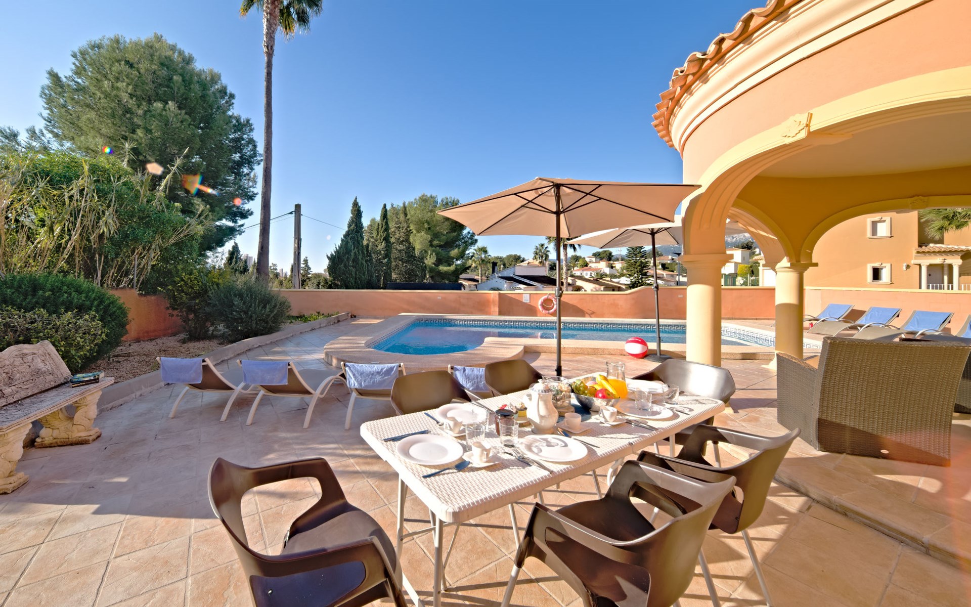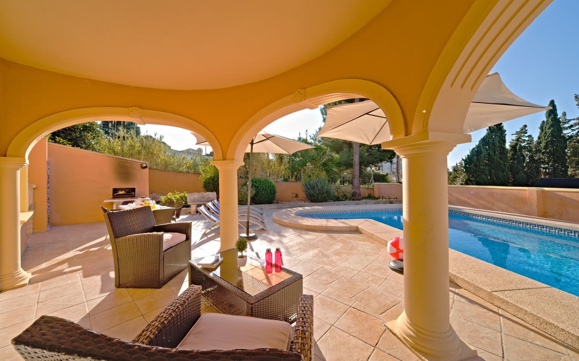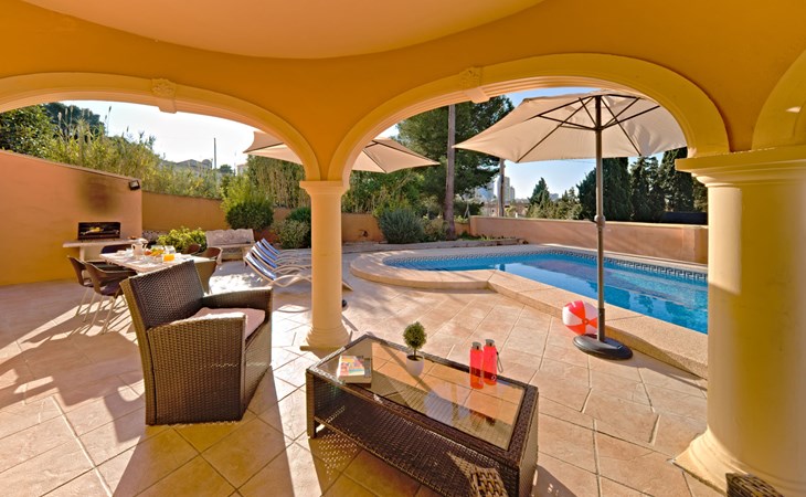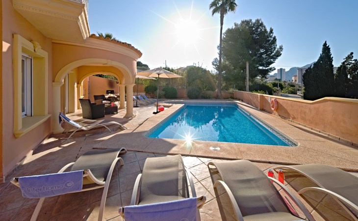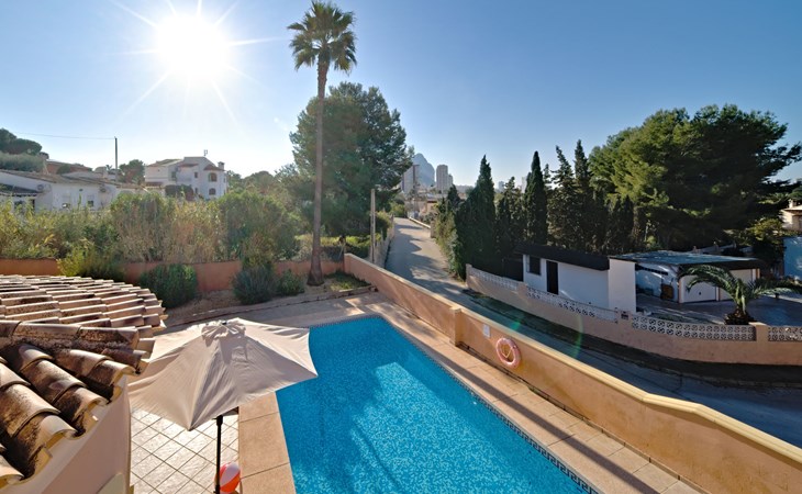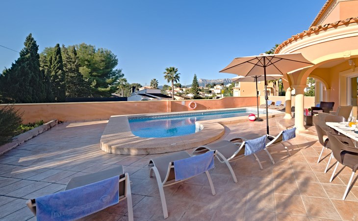 Villa "Gardenia". 3.5 km van het centrum van Calpe, 25 km van het centrum van Benidorm, 60 km van het centrum van Alicante, 900 m van zee, 1.5 km van het strand. Voor alleengebruik: terrein 773 m2 (omheind), tuin (omheind), openluchtzwembad hoekig (8 x 4 m, 125 - 175 cm diepte, seizoensgebonden beschikbaarheid: 01.Jan. - 31.Dec.). Buitendouche, tuinmeubelen, barbecue, parkeerplaats op het terrein. Supermarkt 750 m, restaurant 600 m, bushalte 850 m, zandstrand "La Fossa" 1.5 km. Attracties in de buurt: Aqualandia 25 km, Terra Mitica 35 km, Aeropuerto El Altet Alicante-Elche 75 km. Wandelgebied PeƱon de Ifach 2.5 km. De eigenaar accepteert geen jeugdgroepen.