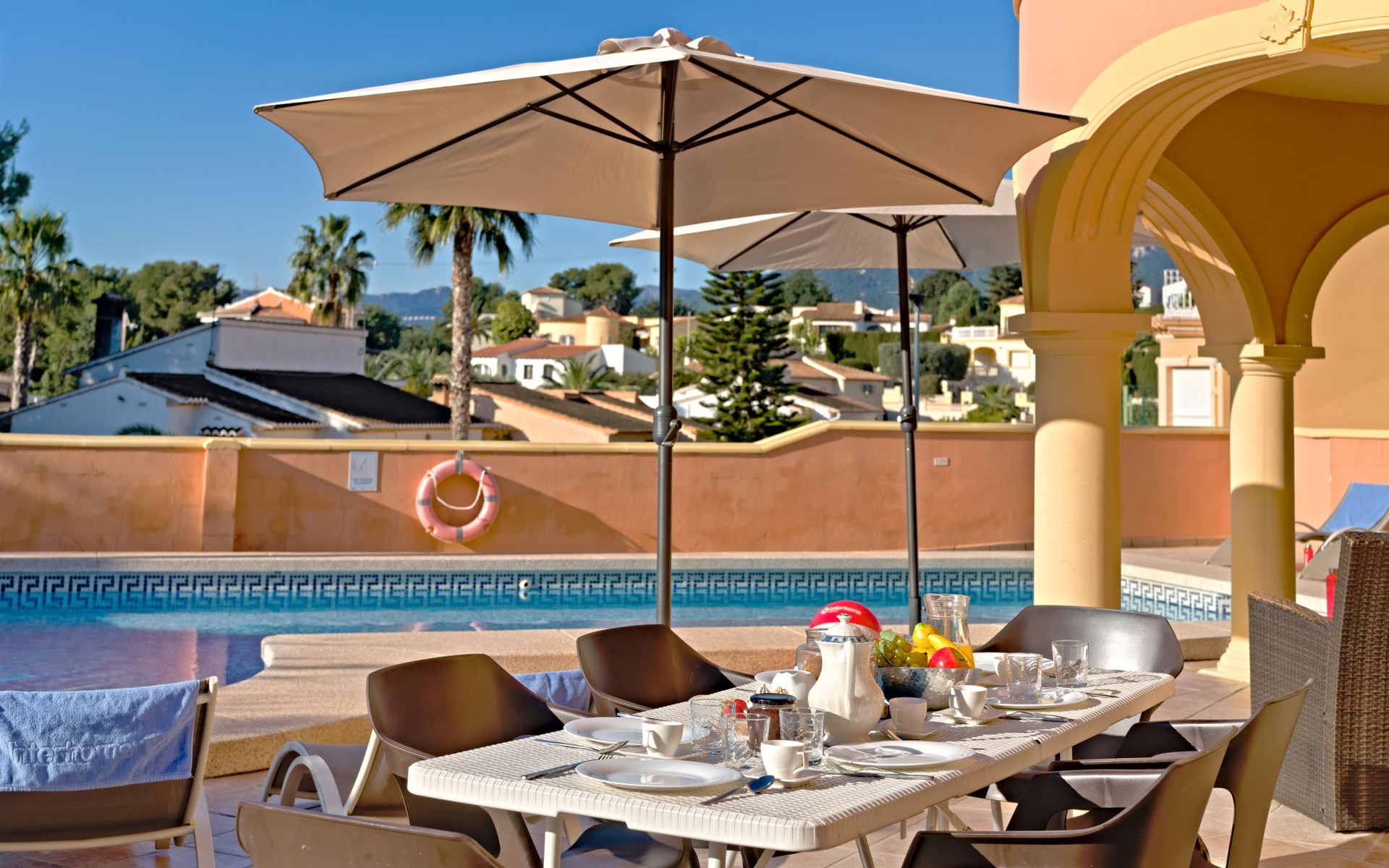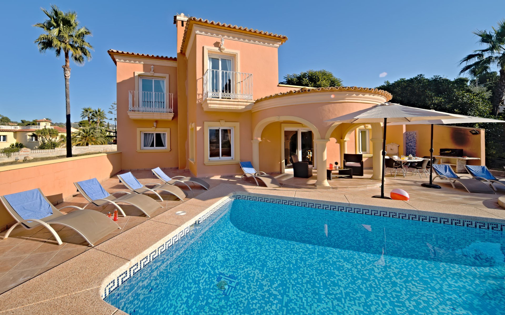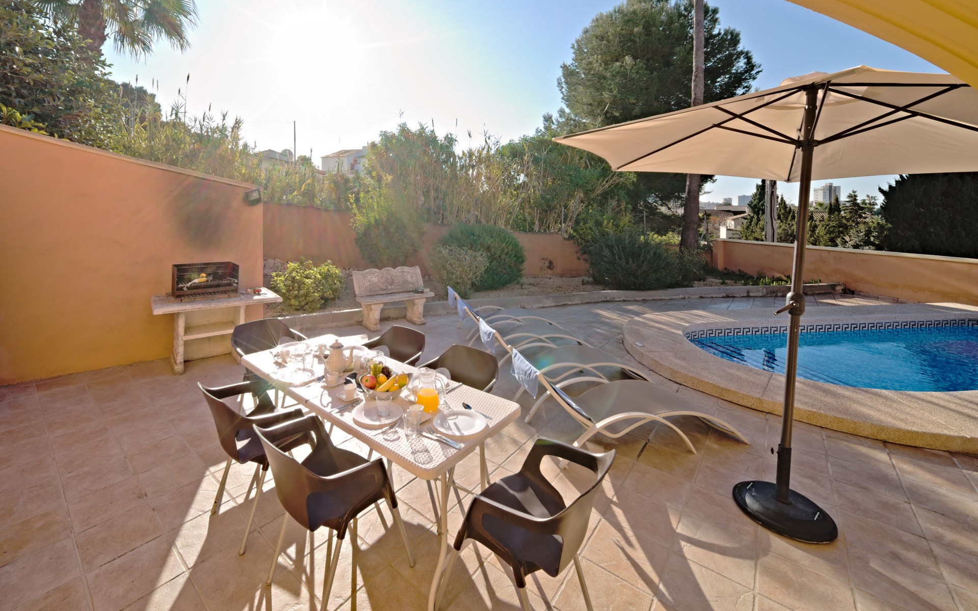 Villa "Gardenia". 3.5 km van het centrum van Calpe, 25 km van het centrum van Benidorm, 60 km van het centrum van Alicante, 900 m van zee, 1.5 km van het strand. Voor alleengebruik: terrein 773 m2 (omheind), tuin (omheind), openluchtzwembad hoekig (8 x 4 m, 125 - 175 cm diepte, seizoensgebonden beschikbaarheid: 01.Jan. - 31.Dec.). Buitendouche, tuinmeubelen, barbecue, parkeerplaats op het terrein. Supermarkt 750 m, restaurant 600 m, bushalte 850 m, zandstrand "La Fossa" 1.5 km. Attracties in de buurt: Aqualandia 25 km, Terra Mitica 35 km, Aeropuerto El Altet Alicante-Elche 75 km. Wandelgebied PeƱon de Ifach 2.5 km. De eigenaar accepteert geen jeugdgroepen.