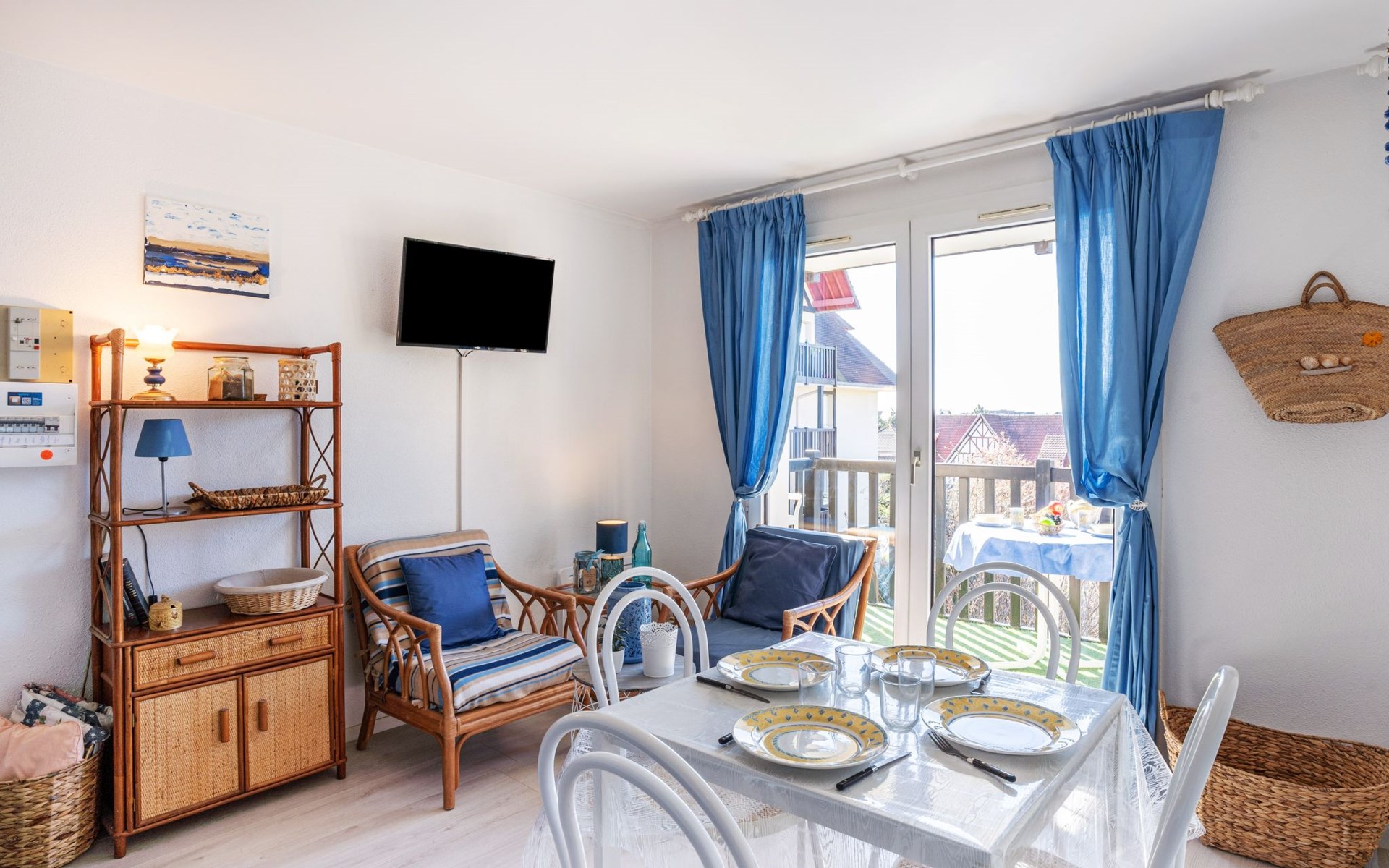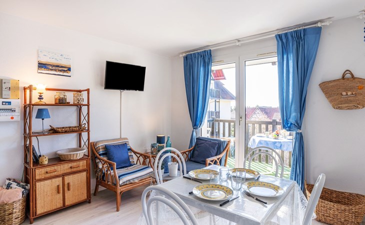 Residentie "Le Clos Mathilde", van 3 verdiepingen. In de plaats, 900 m van het centrum van Cabourg, van zee, 500 m van het strand. In het complex: openbare parkeerplaatsen in de straat. Winkel 900 m, supermarkt 1.2 km, restaurant 900 m, bushalte "Plage" 400 m, thermaalbad "Thalazur" 270 m. Golfterrein (9 holes) 1.5 km, sportcentrum 400 m. Attracties in de buurt: Casino 600 m, Deauville 25 km, Honfleur 48 km, Mémorial de Caen 35 km, Plages du débarquement 64 km. Geen lift. Vergelijkbare accommodaties kunnen worden geboekt.