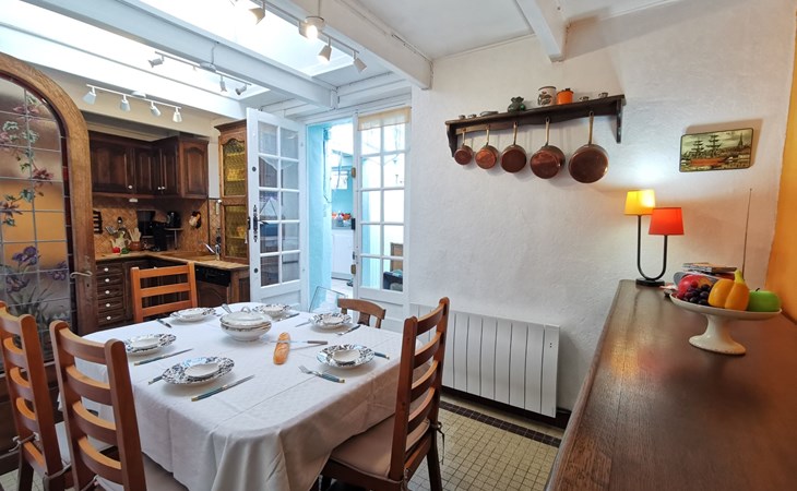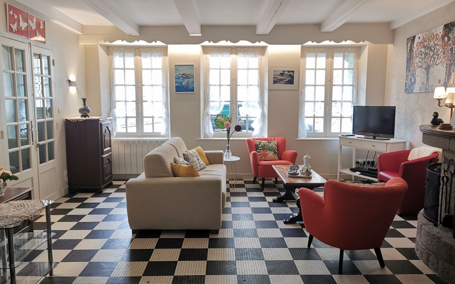 Oude, comfortabele eengezinswoning "La Congrière", van 2 verdiepingen. In de wijk Rimains, 1 km van het centrum van Cancale, rustige, zonnige ligging, 150 m van zee, aan een doodlopende weg. Winkel 1 km, supermarkt 1 km, restaurant 1 km, centrum te voet bereikbaar in 15 minuten, zandstrand "Port Mer" 4 km, rotsstrand "Port de la Houle" 2 km, thermaalbad "les Thermes marin" 15 km. Jachthaven 16 km, zeilschool 4 km, tennis 1.7 km, manege 3 km. Attracties in de buurt: Le Mont Saint Michel 53 km, Saint Malo intra-muros 15 km, Dinard 20 km, Dinan 33 km, Aquarium de Saint Malo 15 km, Dol de Bretagne 28 km. Auto noodzakelijk. Geschikt voor families, baby uitrusting (incl.). De sleuteloverdracht vindt plaats bij het agentschap Interhome in Cancale.